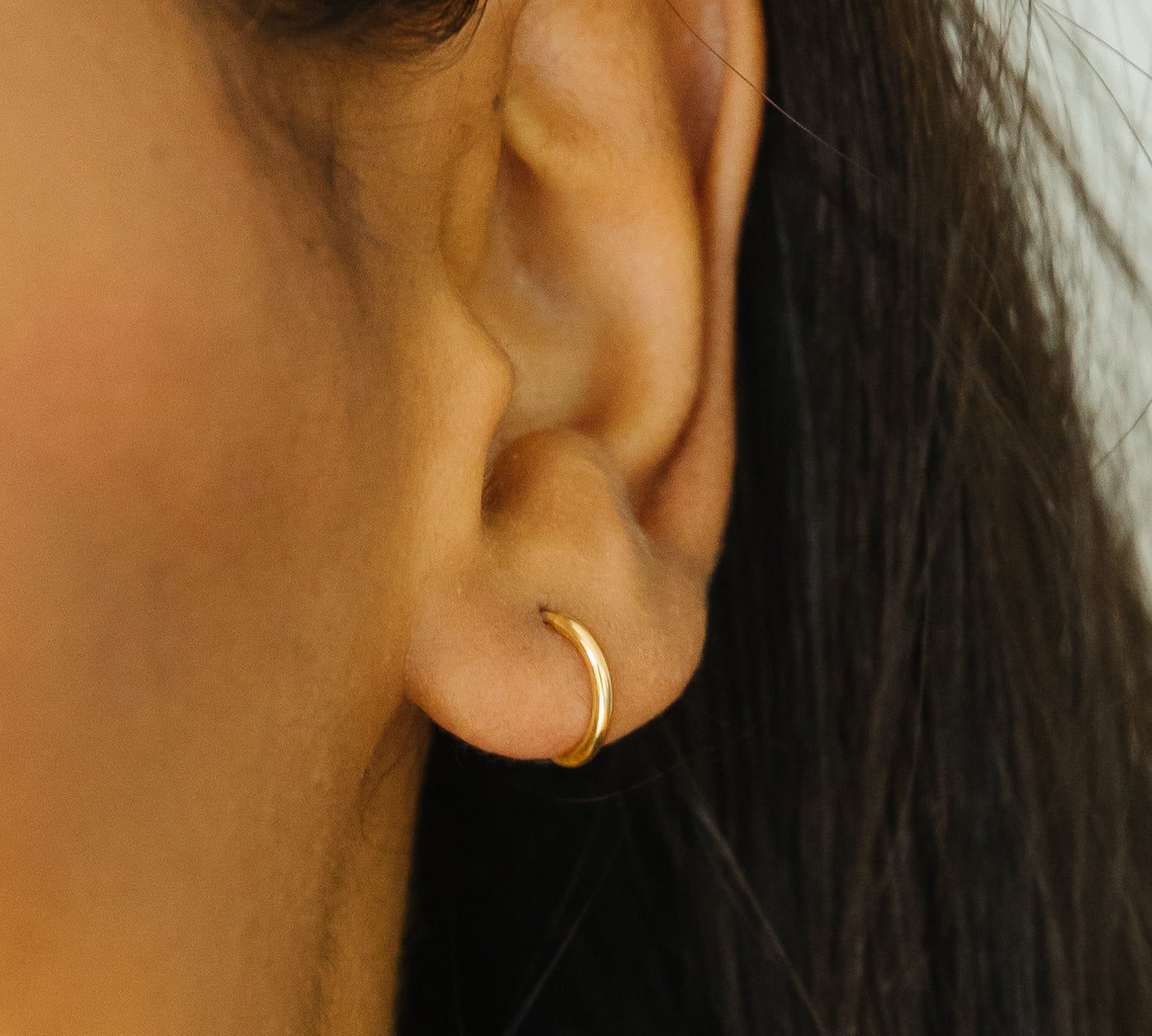 A hit from the beginning, huggies are hoops with a unique clasp that has no post when earrings are closed. Beyond stylish, they're extremely comfortable. So go ahead, sleep, shower, swim, and live life in these. We promise you'll look good and feel good doing it!