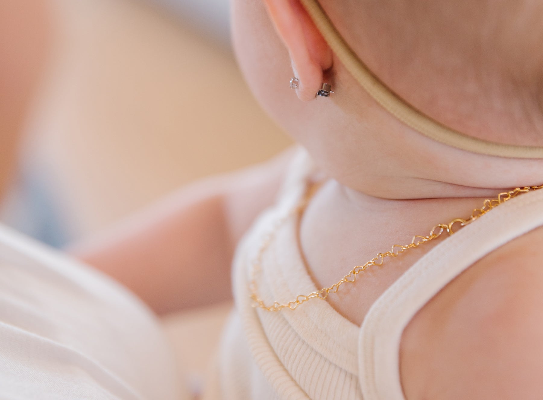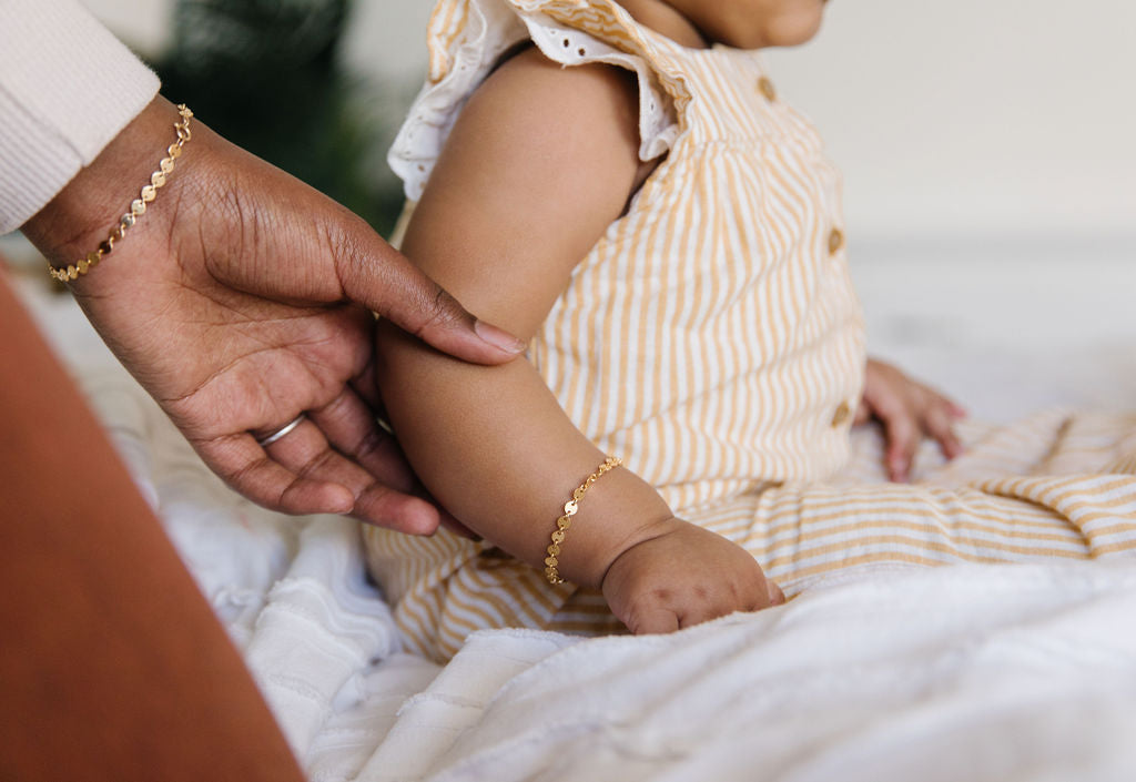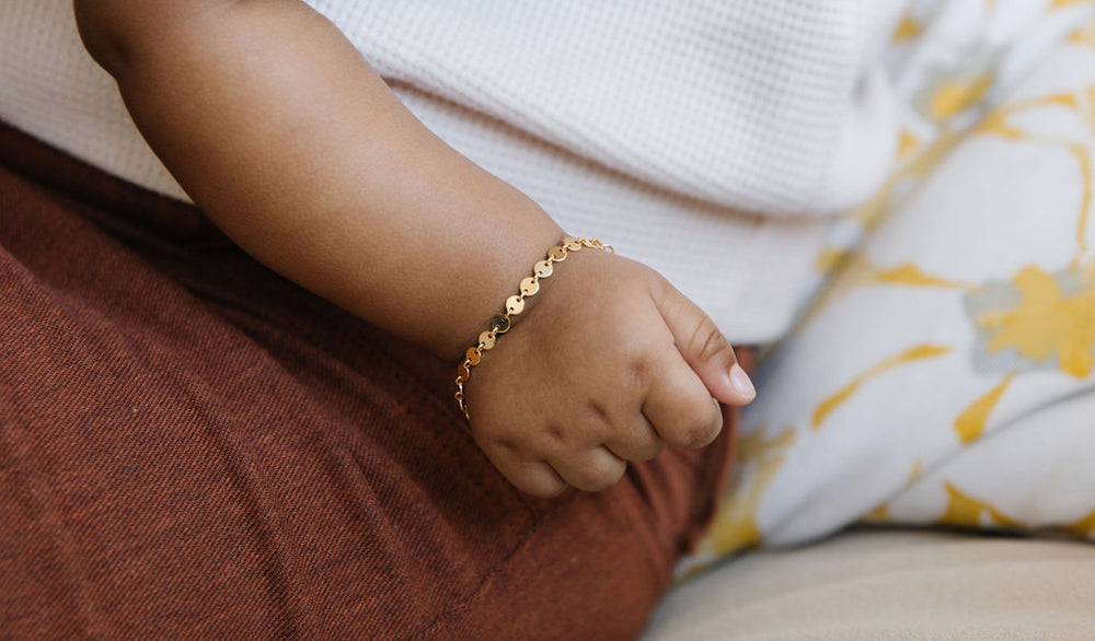 For durability, longevity, and affordability, we sell jewelry that is 14k gold-filled, vermeil, or sterling silver. Different than gold-plated, gold-filled jewelry is a layer of gold bonded through heat to a brass core. Vermeil is the same, but bonded to a a sterling silver core. These metals are durable, hypoallergenic, and tarnish resistant. Your pieces have the power to last a long time! When it comes to quality and durability, only solid gold can beat what we sell. Learn more.