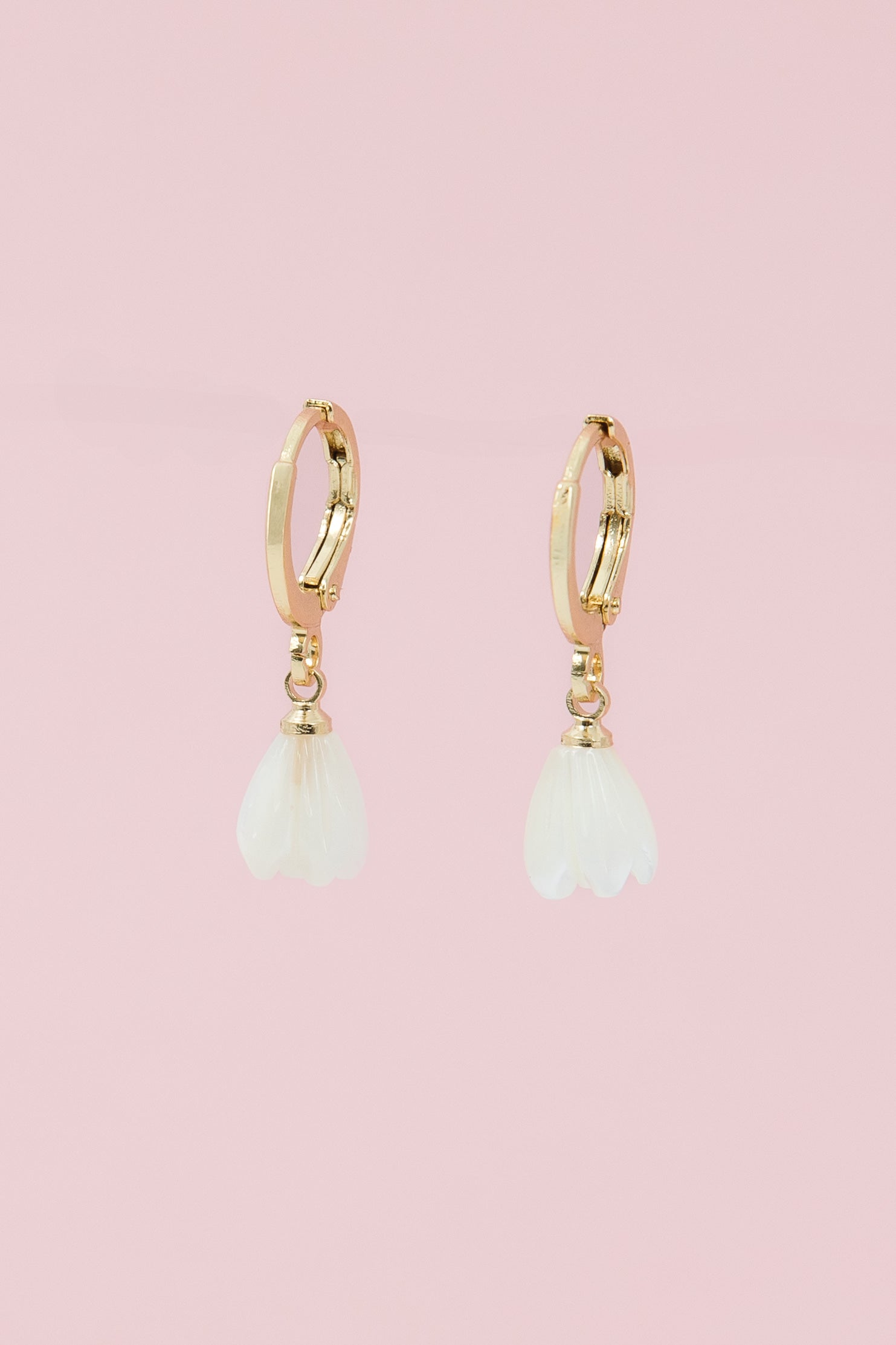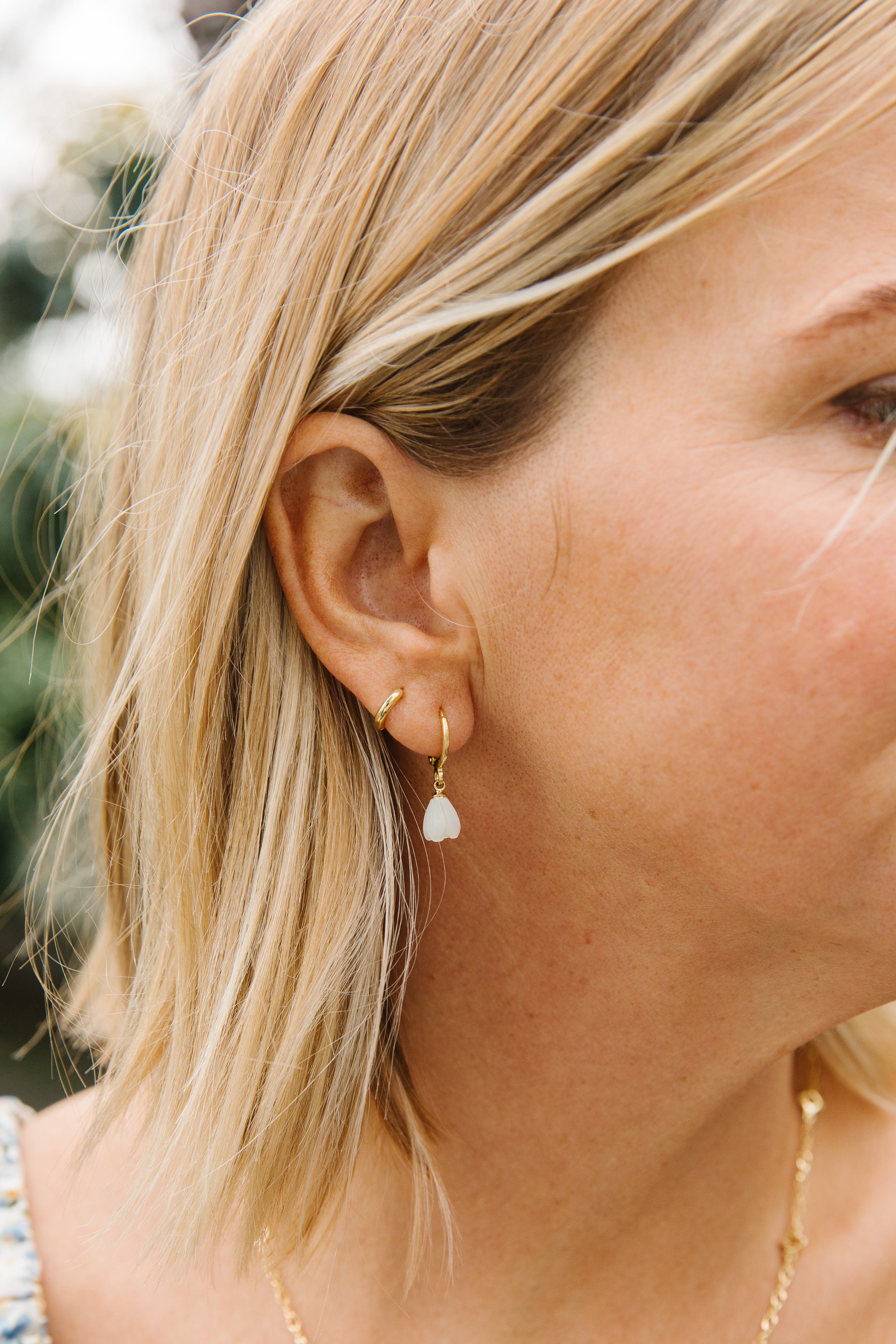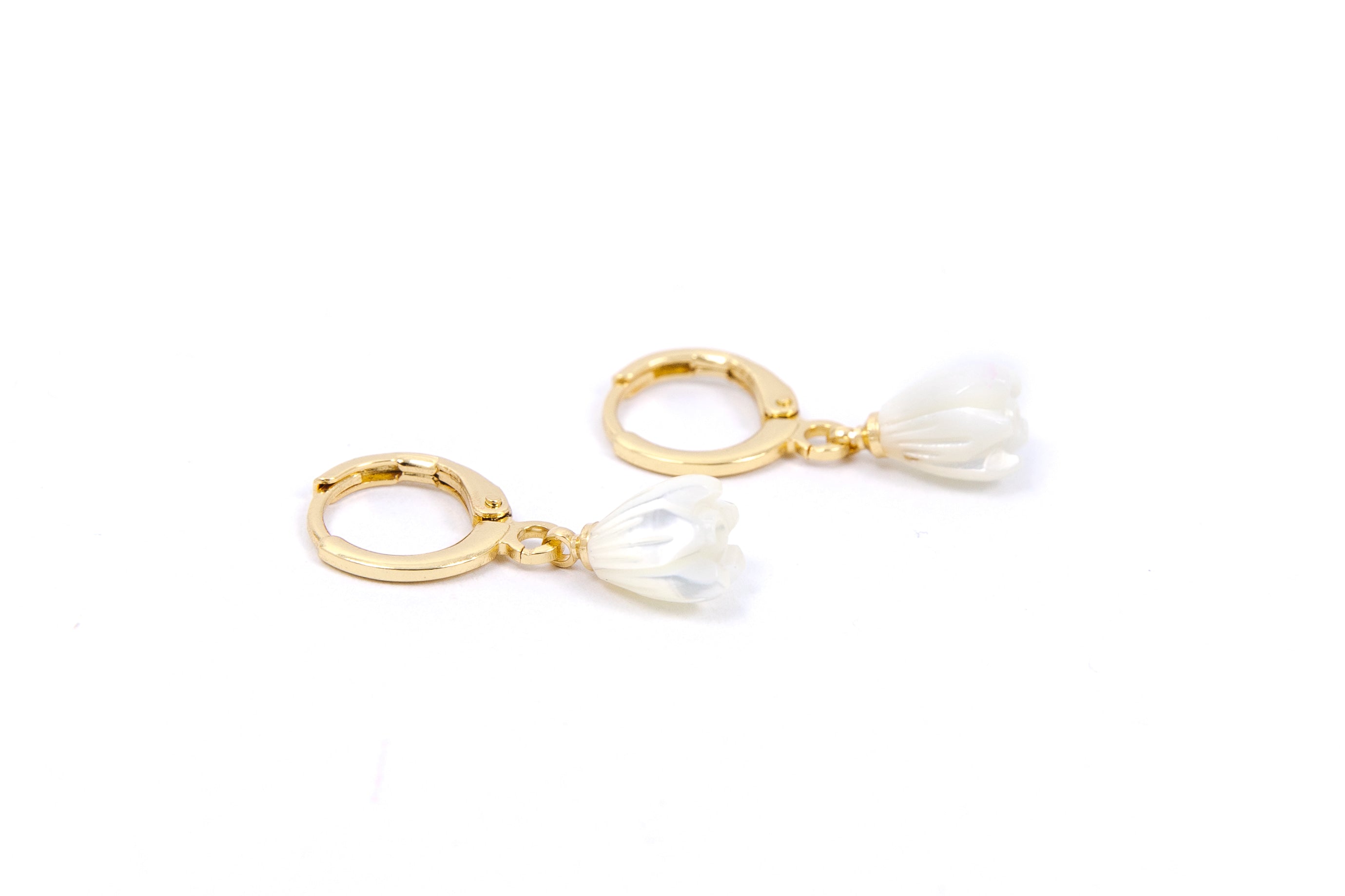 • 11 mm open huggie clasp, tulip is 9 x 7 mm