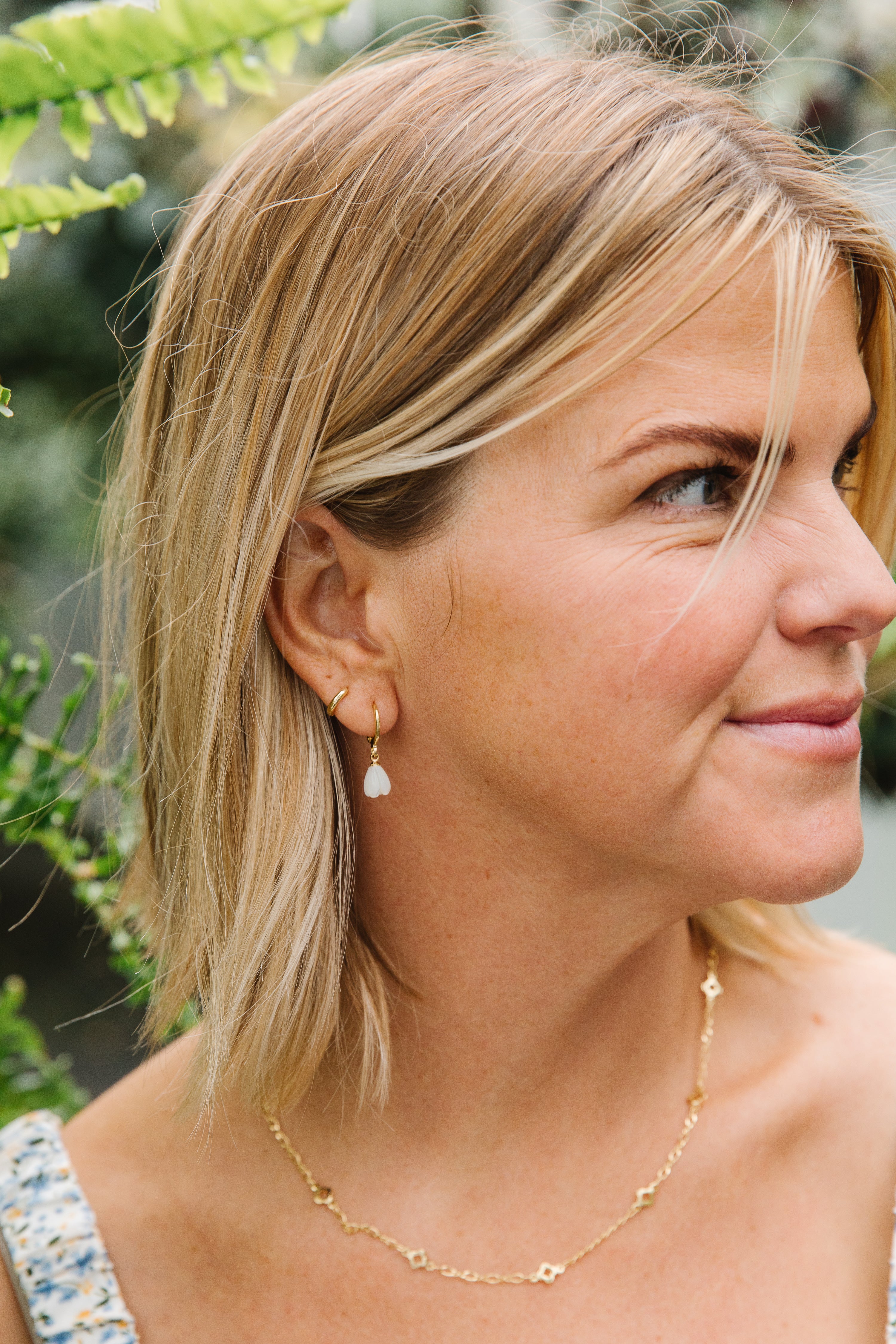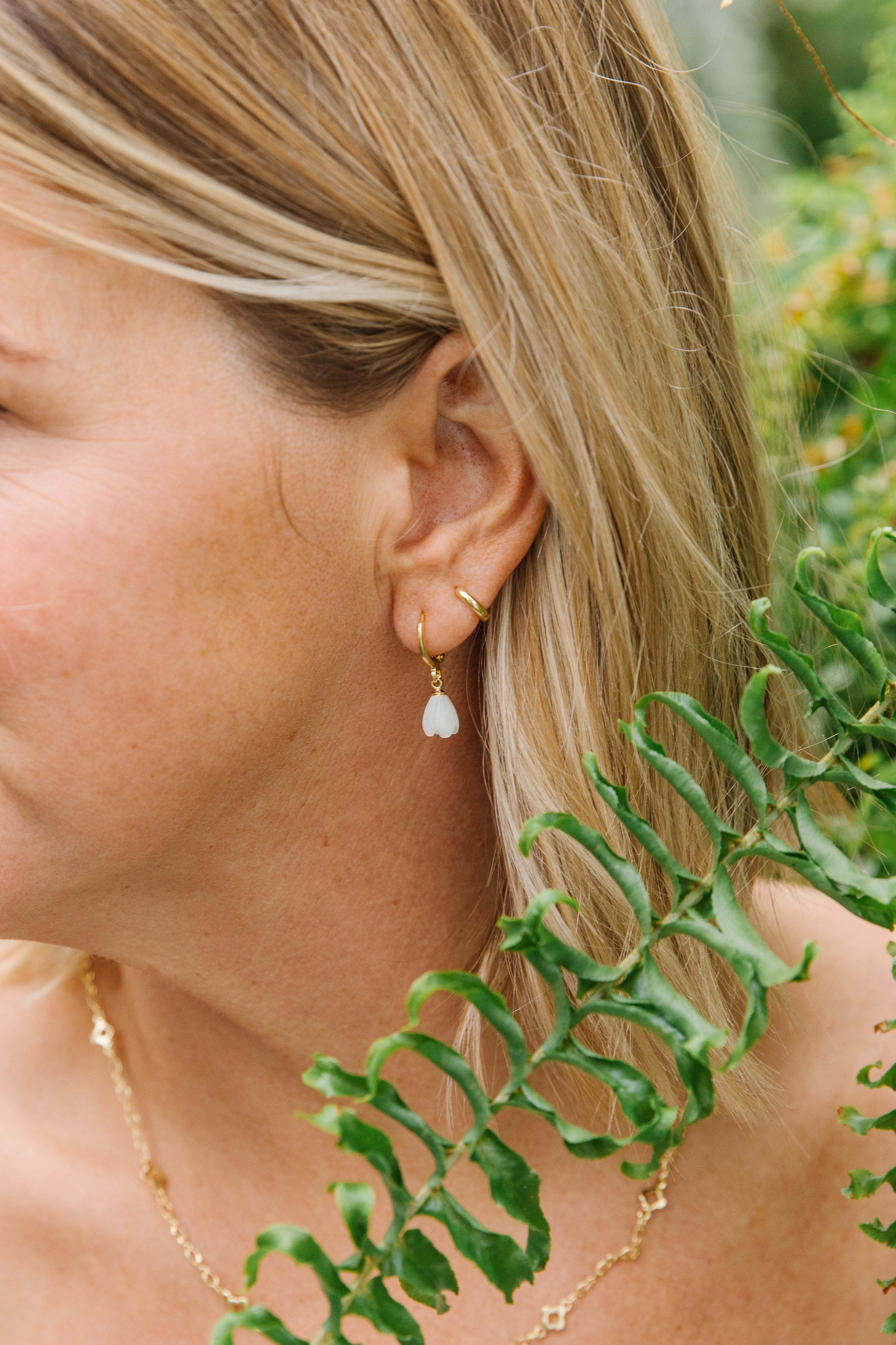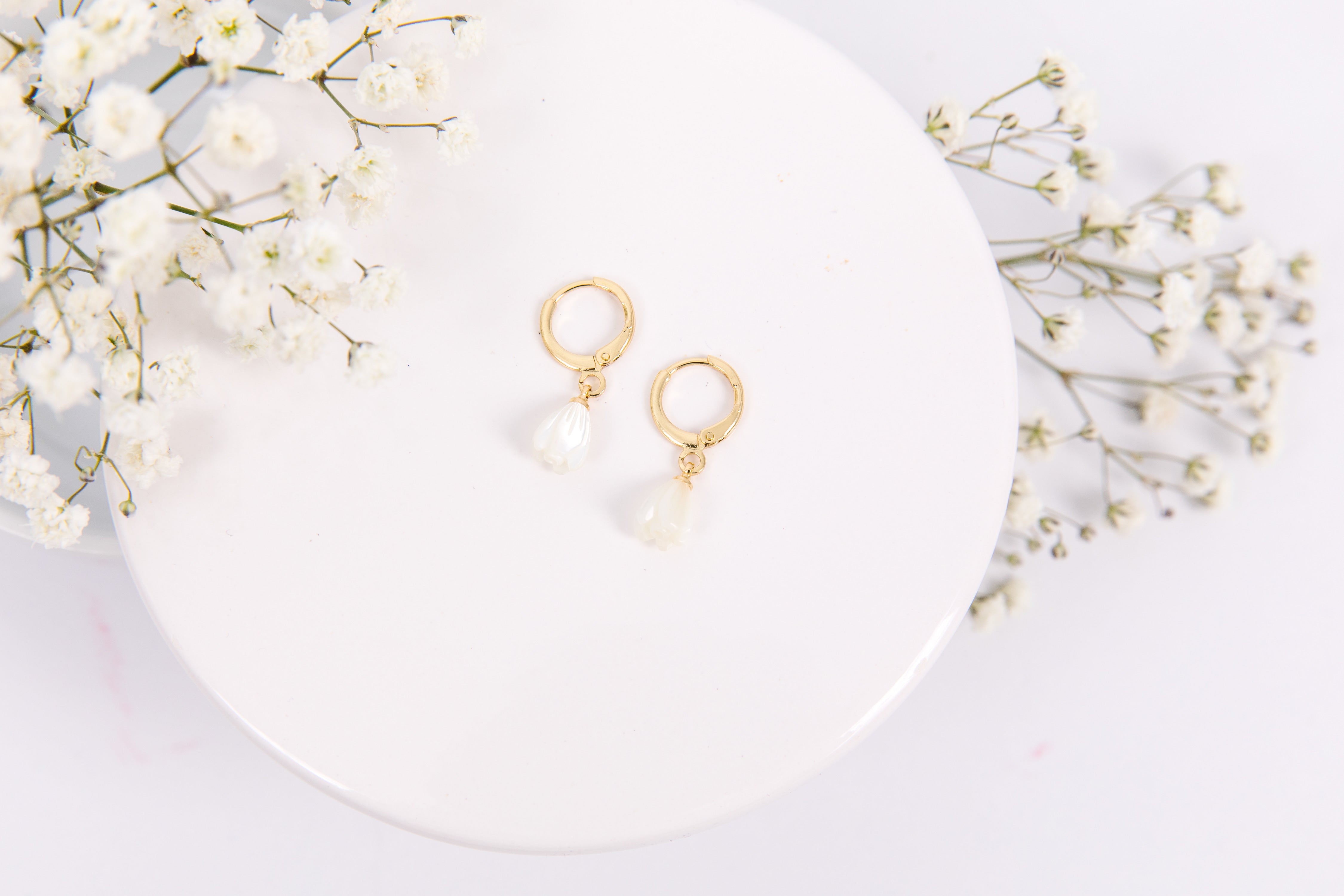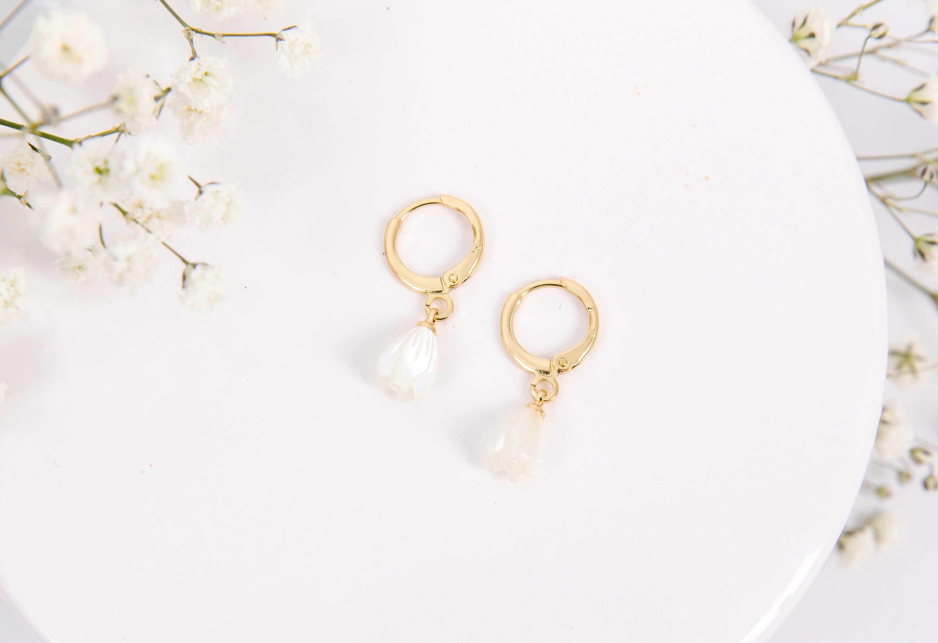 • 11 mm open huggie clasp, tulip is 9 x 7 mm