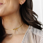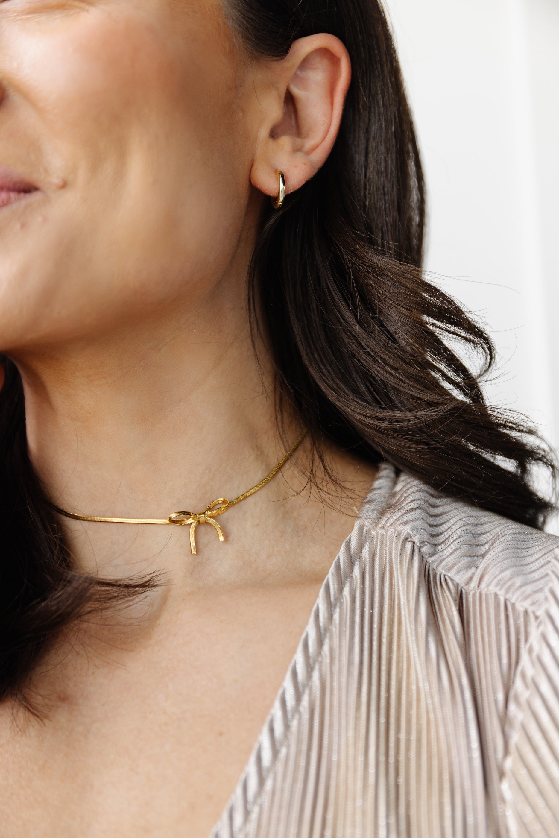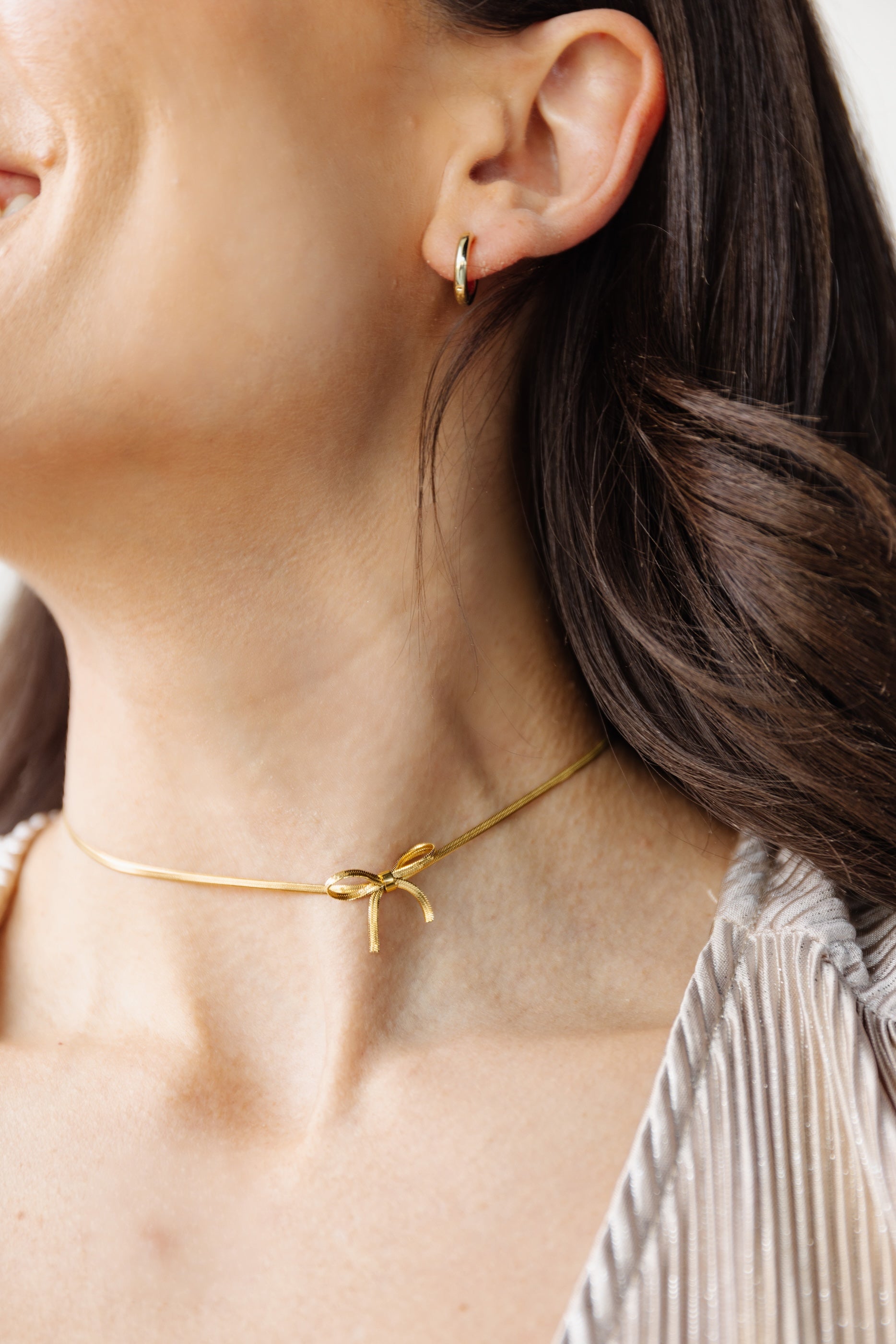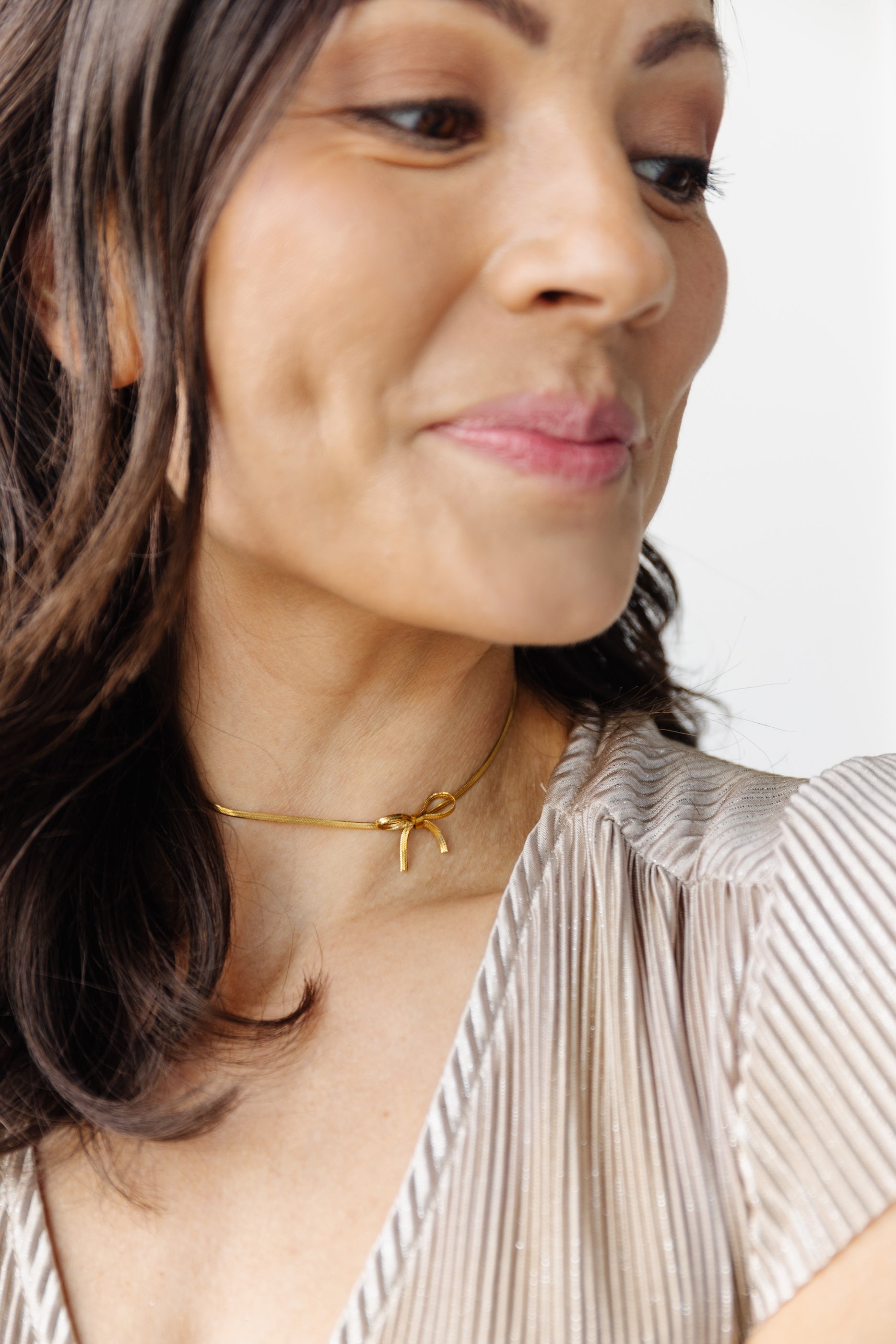 You guys have been absolutely wild for bows this year, so we hunted for the perfect necklace to match our All Done Up Bow studs! This choker is the perfect way to add bow glam to your holiday festivities!