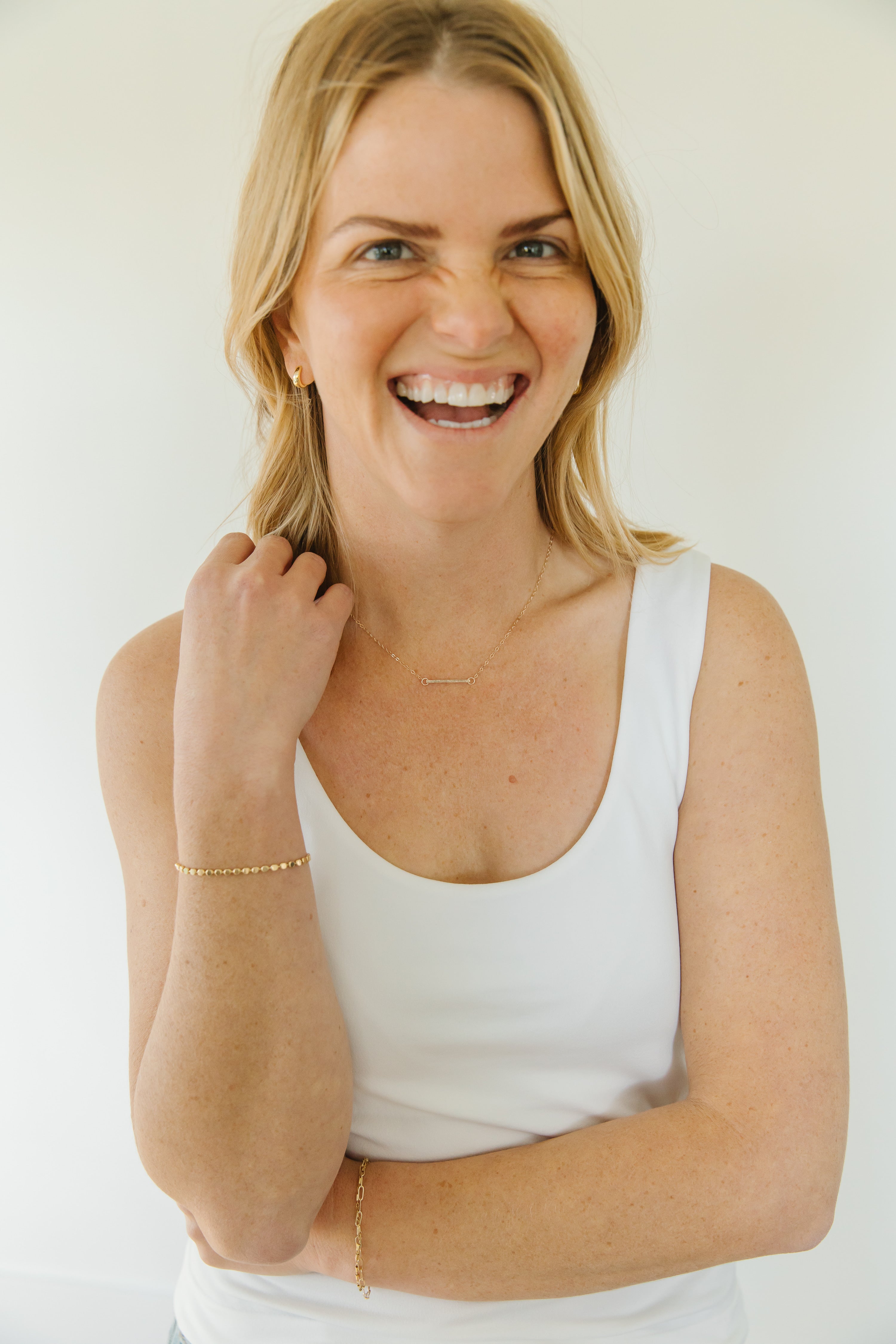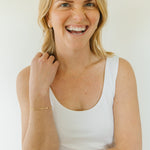 For durability, longevity, and affordability, we sell jewelry that is 14k gold-filled, vermeil, or sterling silver. Different than gold-plated, gold-filled jewelry is a layer of gold bonded through heat to a brass core. Vermeil is the same, but bonded to a a sterling silver core. These metals are durable, hypoallergenic, and tarnish resistant. Your pieces have the power to last a long time! When it comes to quality and durability, only solid gold can beat what we sell. Learn more.