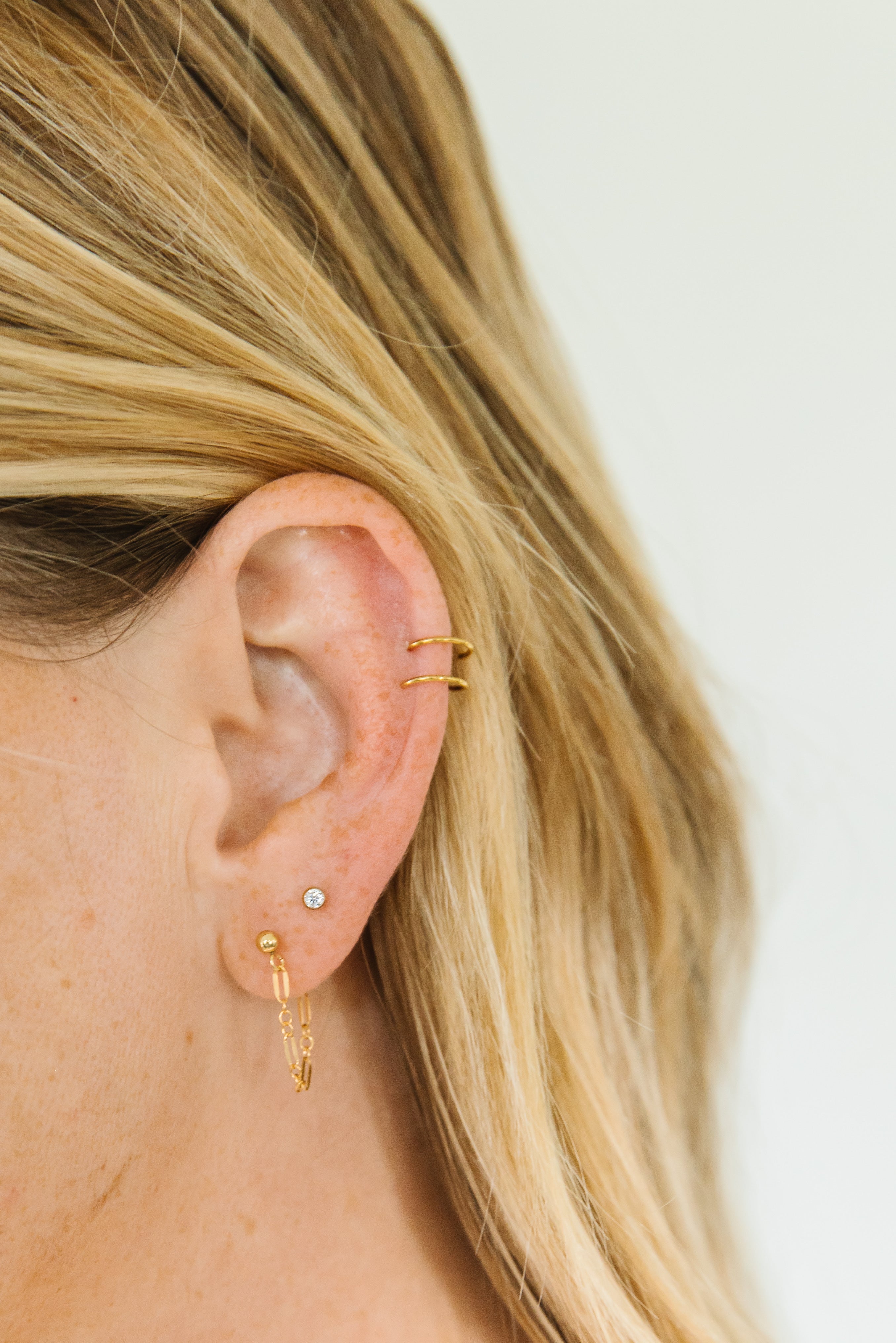 Get ready to have your mind blown by this ultra thin spiral-y hoop. Slide through your piercing and up your ear for that sly two hoop look.  We can't get enough of this sneaky little vixen!  Girl, you know we got you!