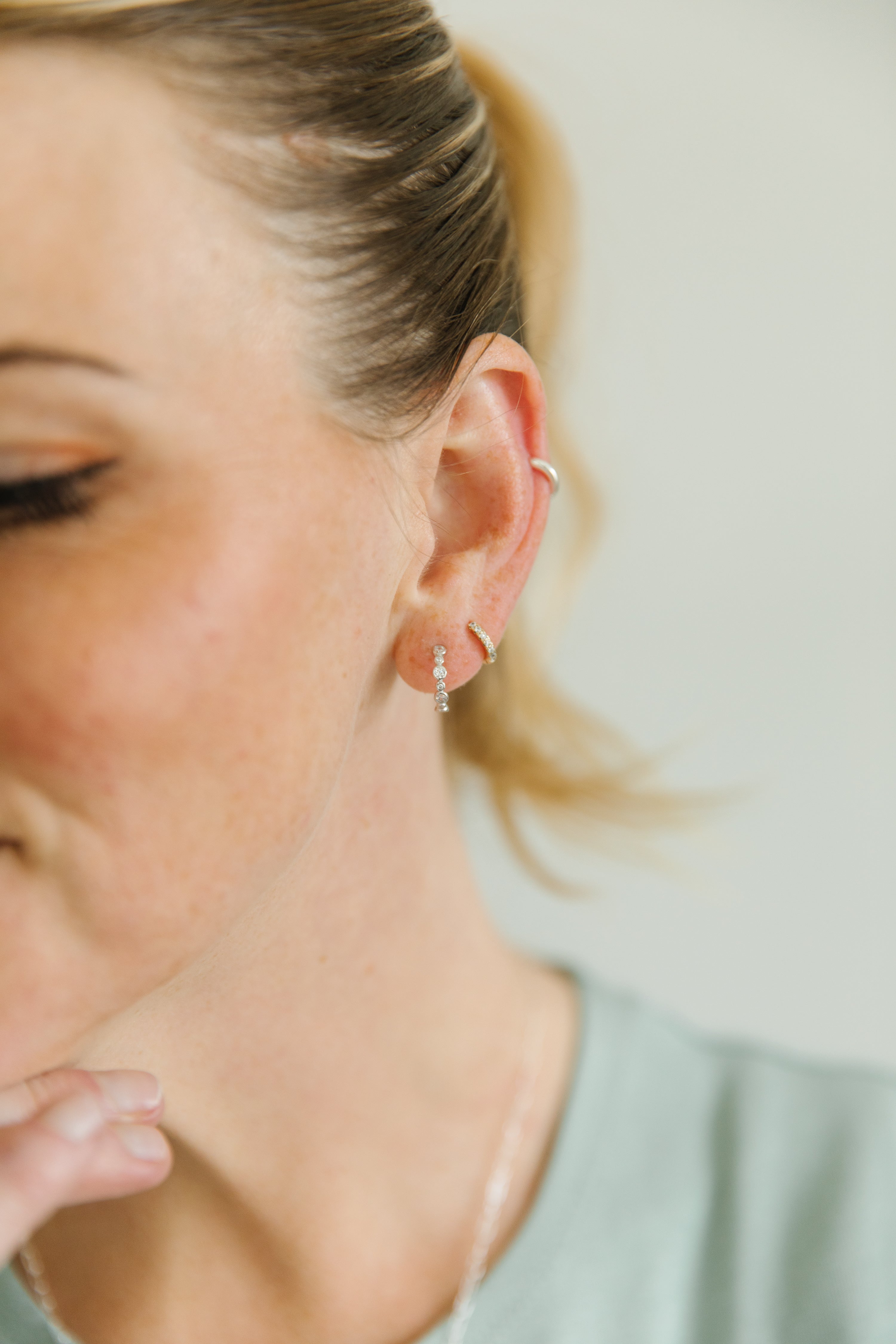 THE HOOP OF THE MONTH FOR JANUARY 2026 IS THE CZ DOT HUGGIE. IF YOU ORDER FROM NOW UNTIL JANUARY 31, YOU WILL RECEIVE THE CZ DOT HUGGIE FOR YOUR FIRST HOOP.