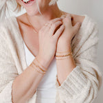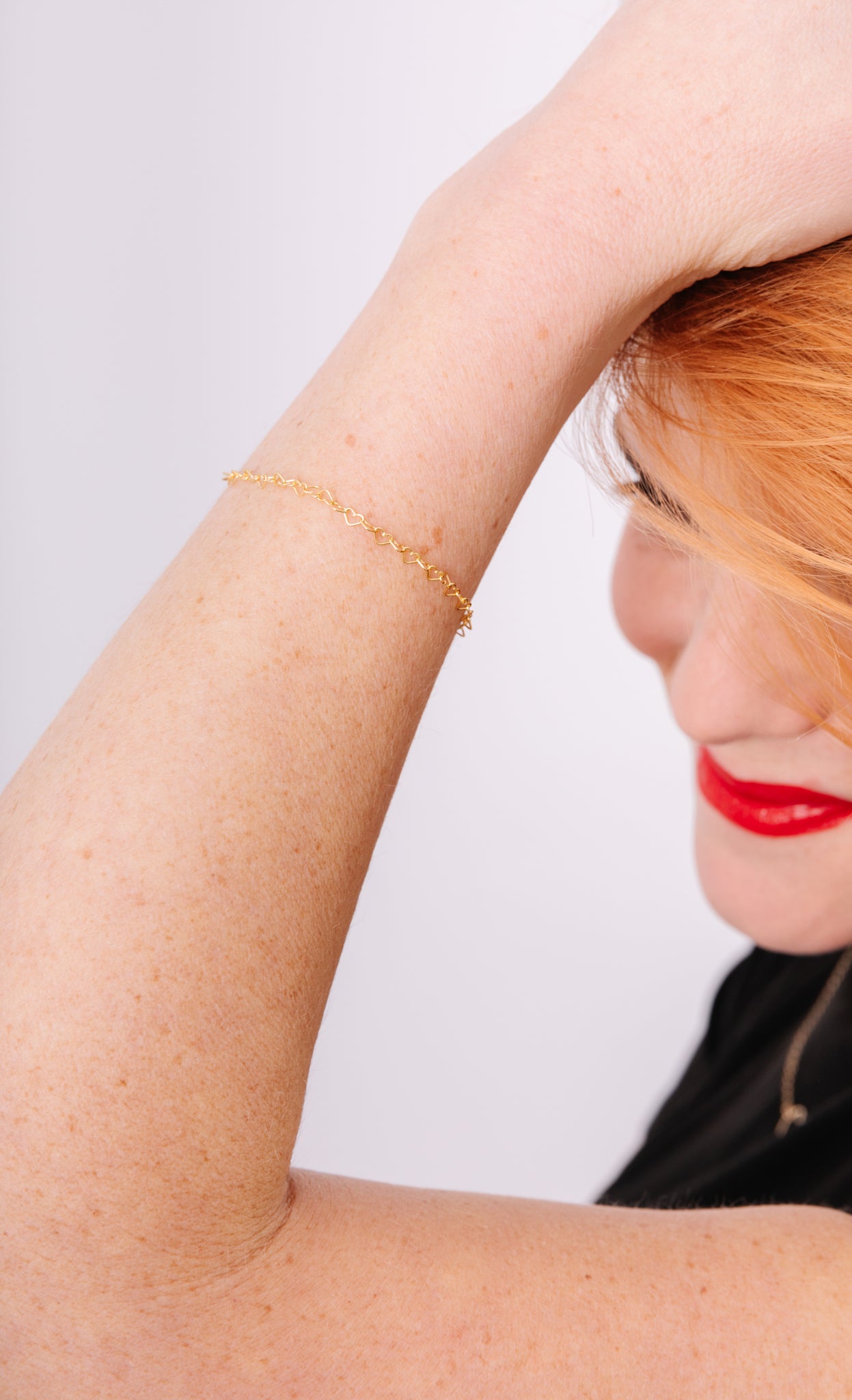 This Hey June bracelet is the perfect wrist accessory- light, fun, flirty and, like all Hey June products, freaking reliable! 14k Gold filled, you don't have to worry about these- wear them all day long without tarnishing or turning. We want you to enjoy the heck out of this stunning little bracelet.
