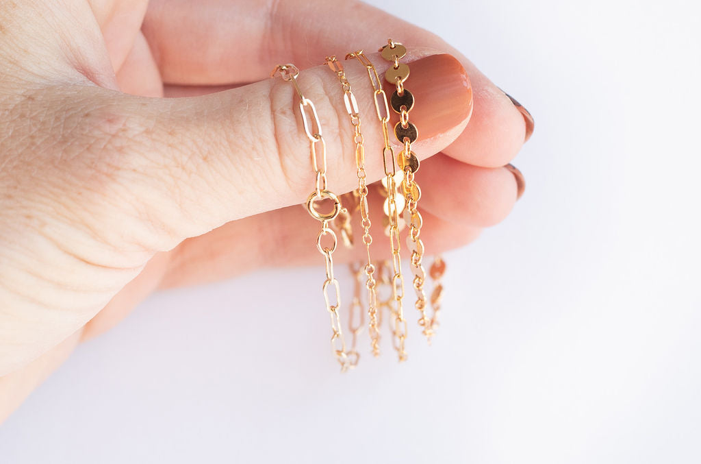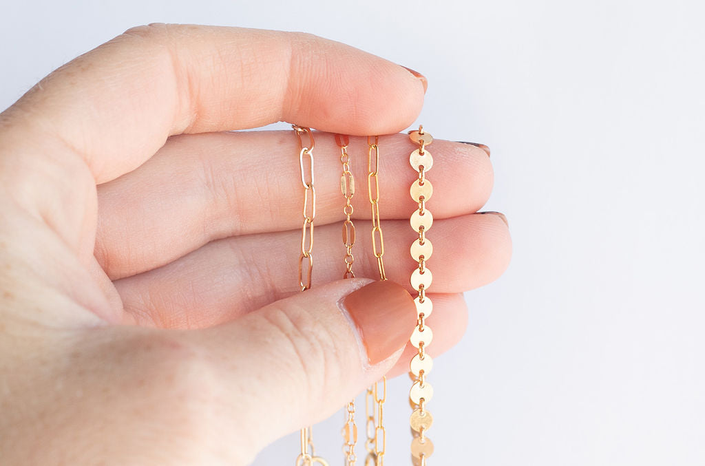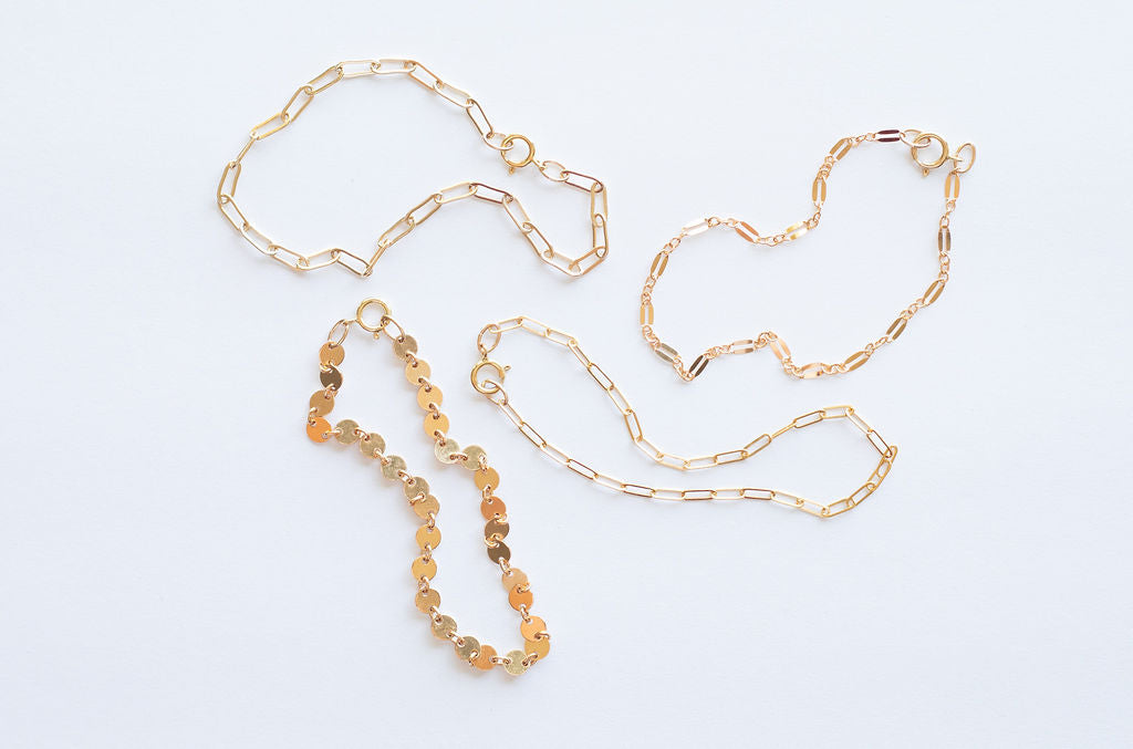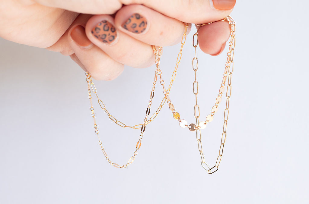 For durability, longevity, and affordability, we sell jewelry that is 14k gold-filled, vermeil, or sterling silver. Different than gold-plated, gold-filled jewelry is a layer of gold bonded through heat to a brass core. Vermeil is the same, but bonded to a a sterling silver core. These metals are durable, hypoallergenic, and tarnish resistant. Your pieces have the power to last a long time! When it comes to quality and durability, only solid gold can beat what we sell. Learn more.