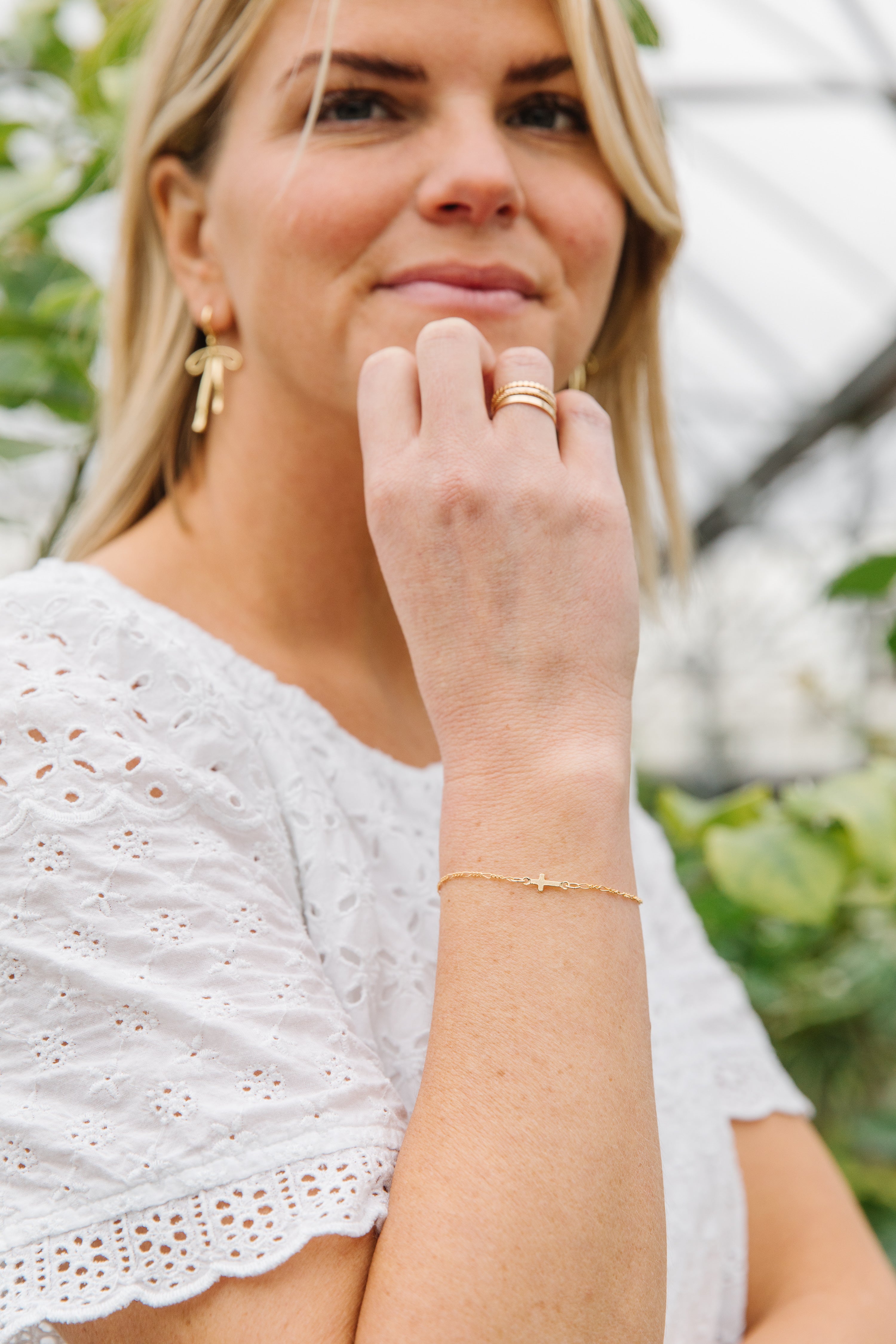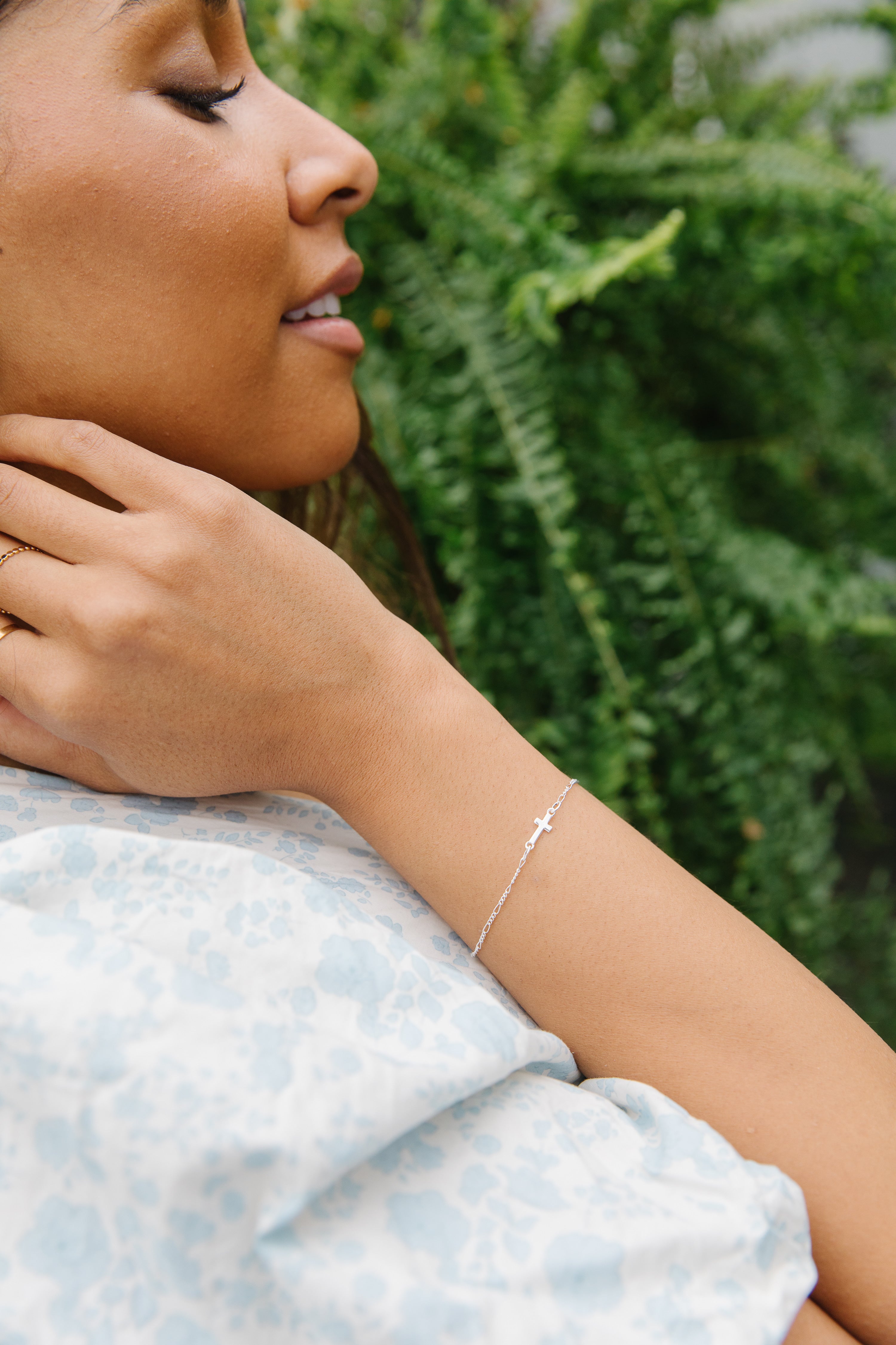 This cross bracelet is a special collaboration with Sara from @ourbestbites.   The cross symbol has had many meanings throughout history. The ancient Egyptians used a cross symbol to represent life. The Celtic cross represents the connection between mind, body, soul, and heart. Today the cross acts for many as a sign of faith, sacrifice, and love. At Hey June we are honored to work together with @ourbestbites to put our own design and meaning on such a timeless and important symbol.
