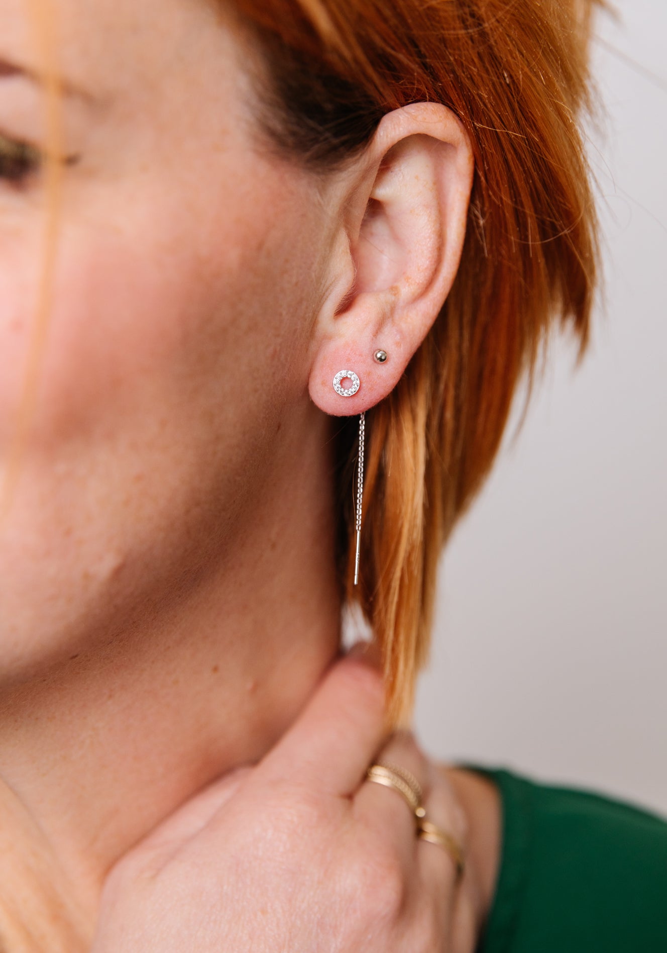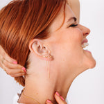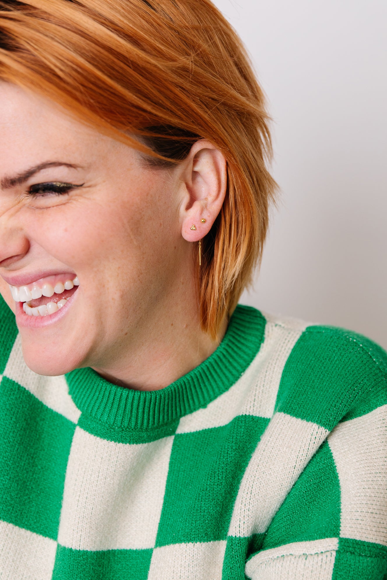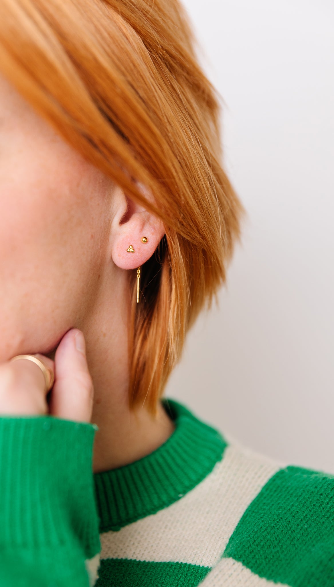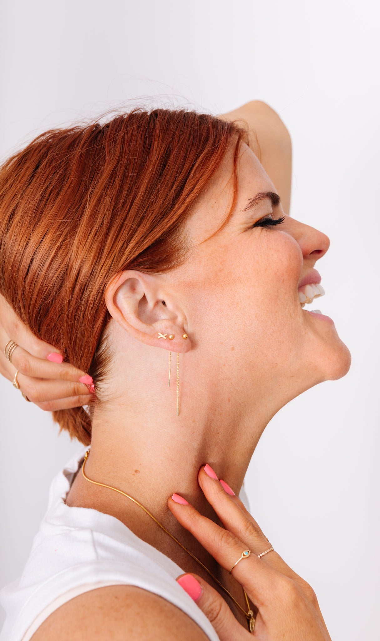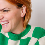 Every time I think I have found my favorite Hey June earring, a new beaut comes storming in and surprises me. Obsessed is an understatement when it comes to this rad, unique backdrop earring! The tiny bead stays in front, the dangly post hangs from behind. Business in the front, party in the back?  Let's do this!!!