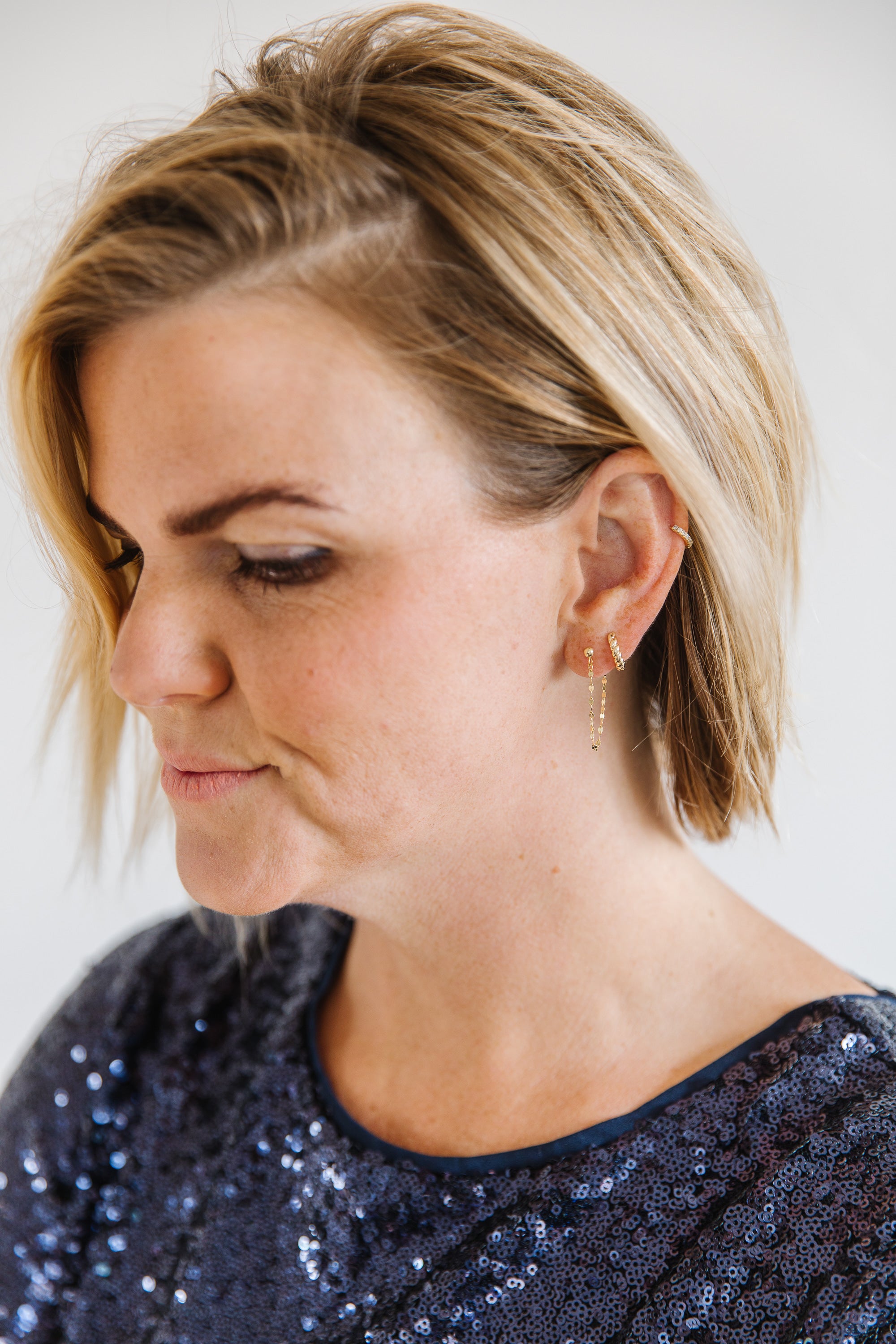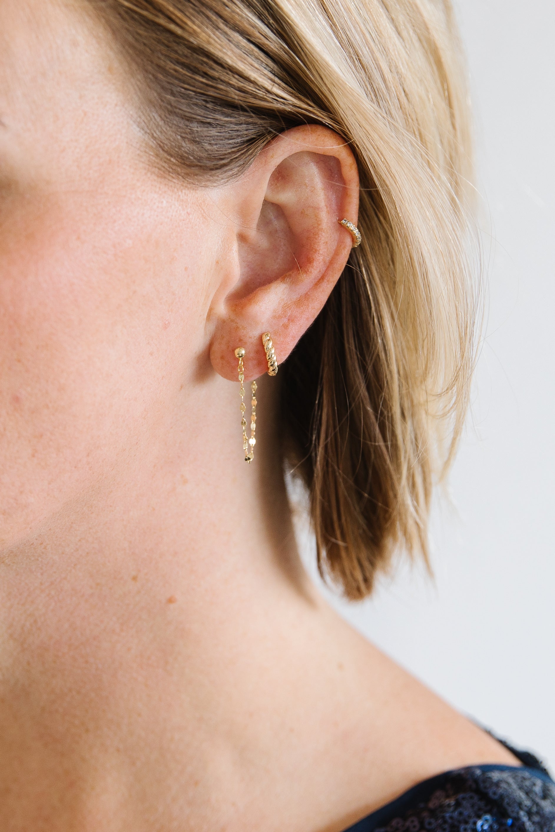 • Dainty 3 mm bead stud with 2 inch threader chain.