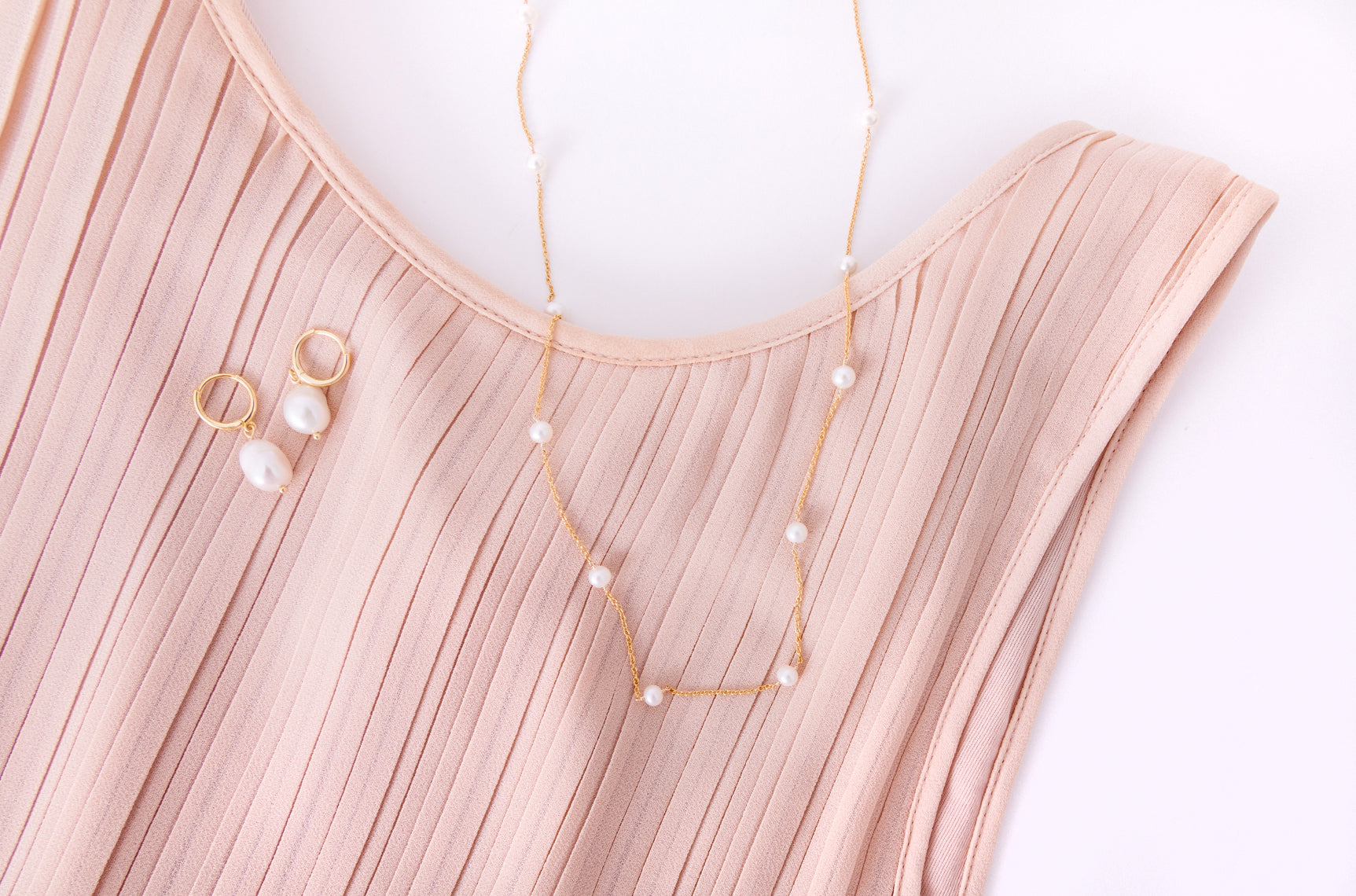 • Models are also wearing stand of pearls necklace and single pearl necklace.