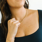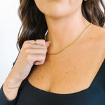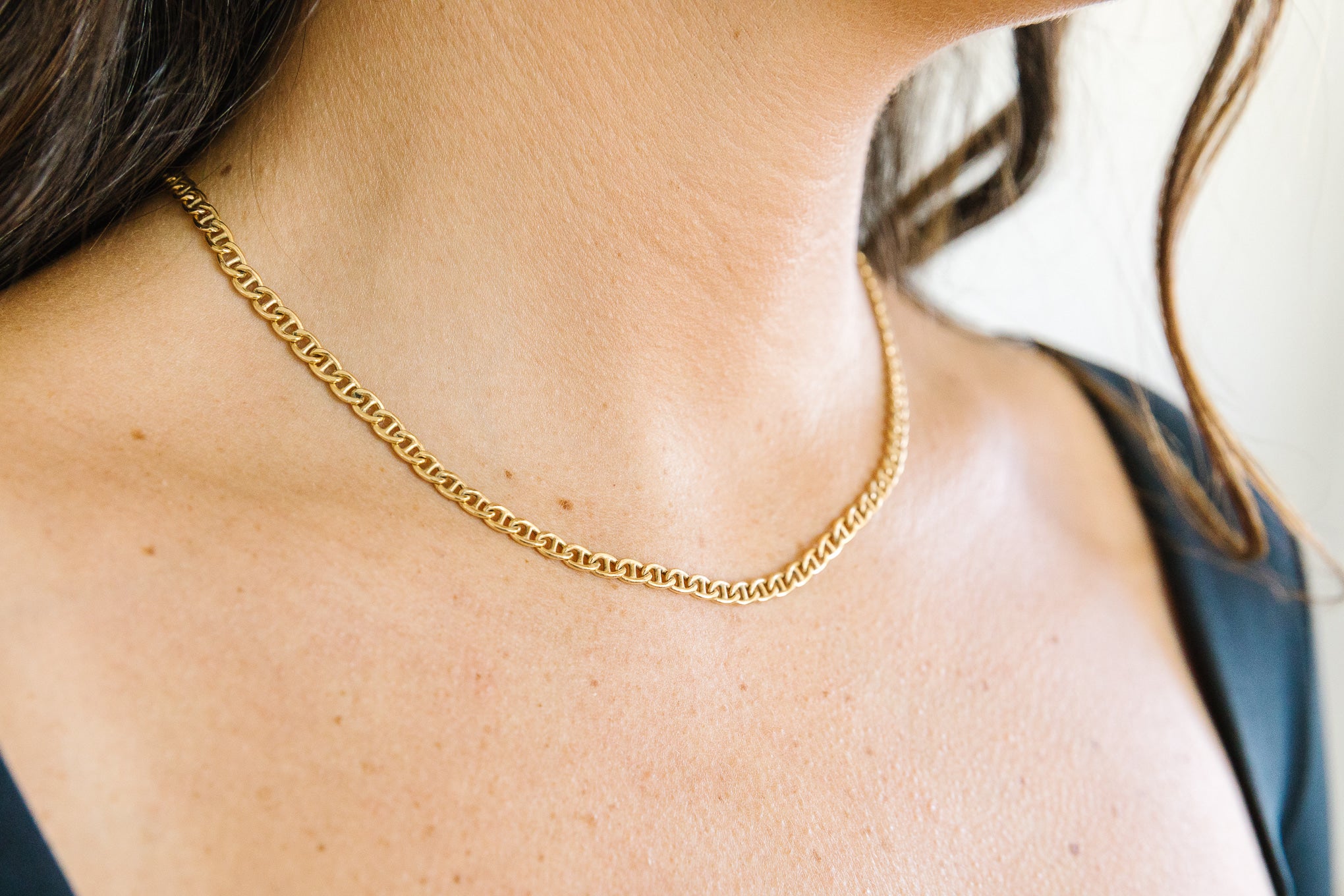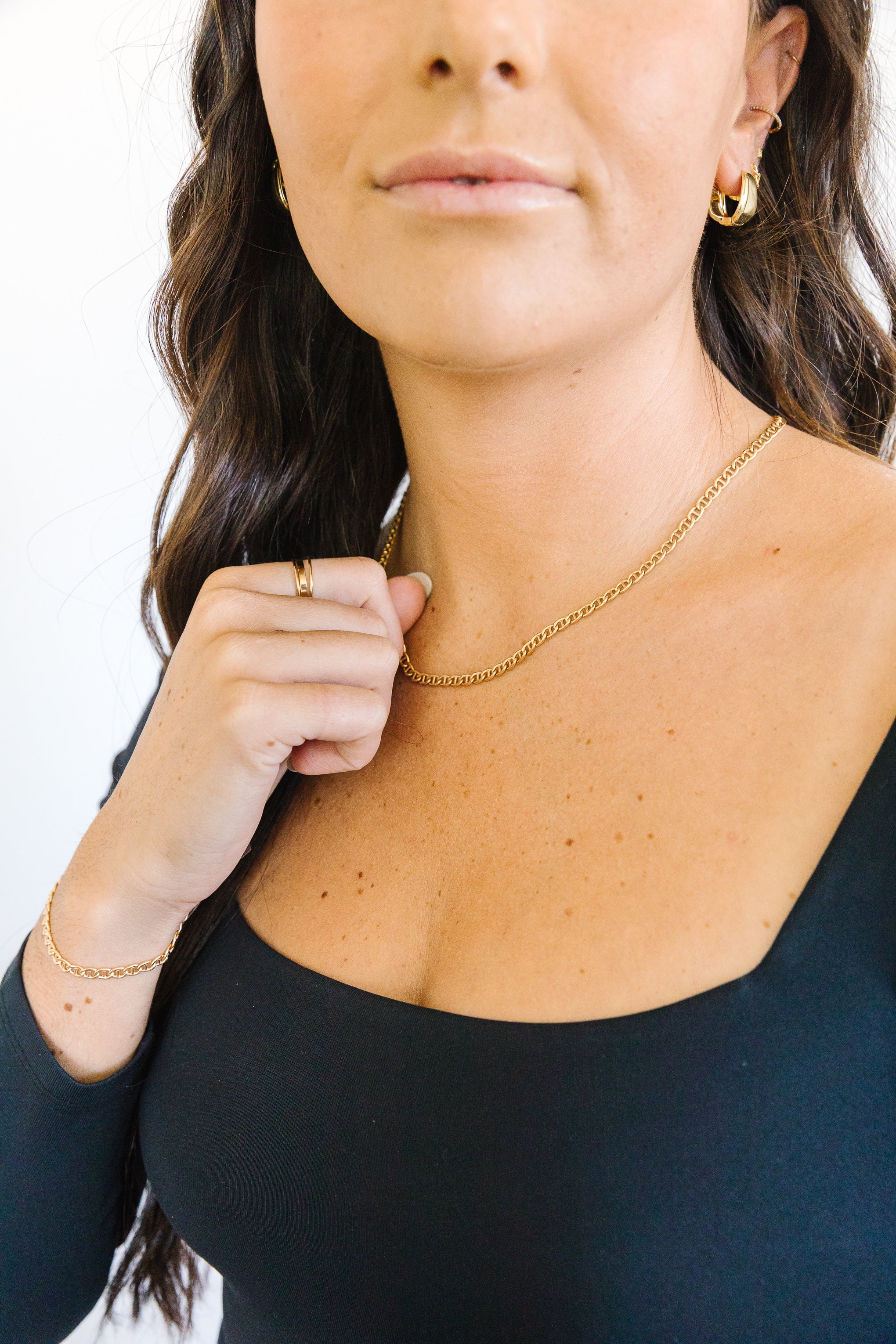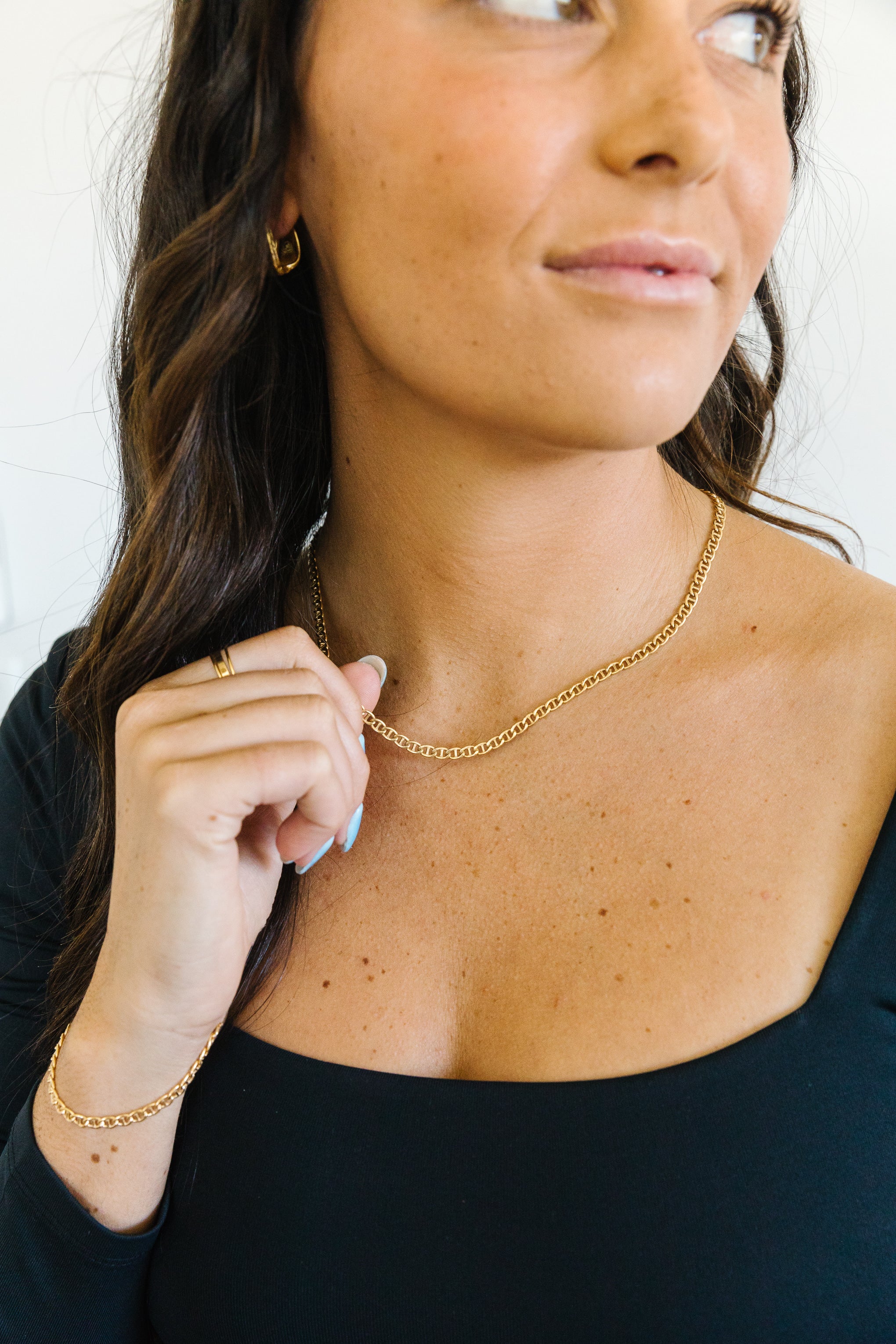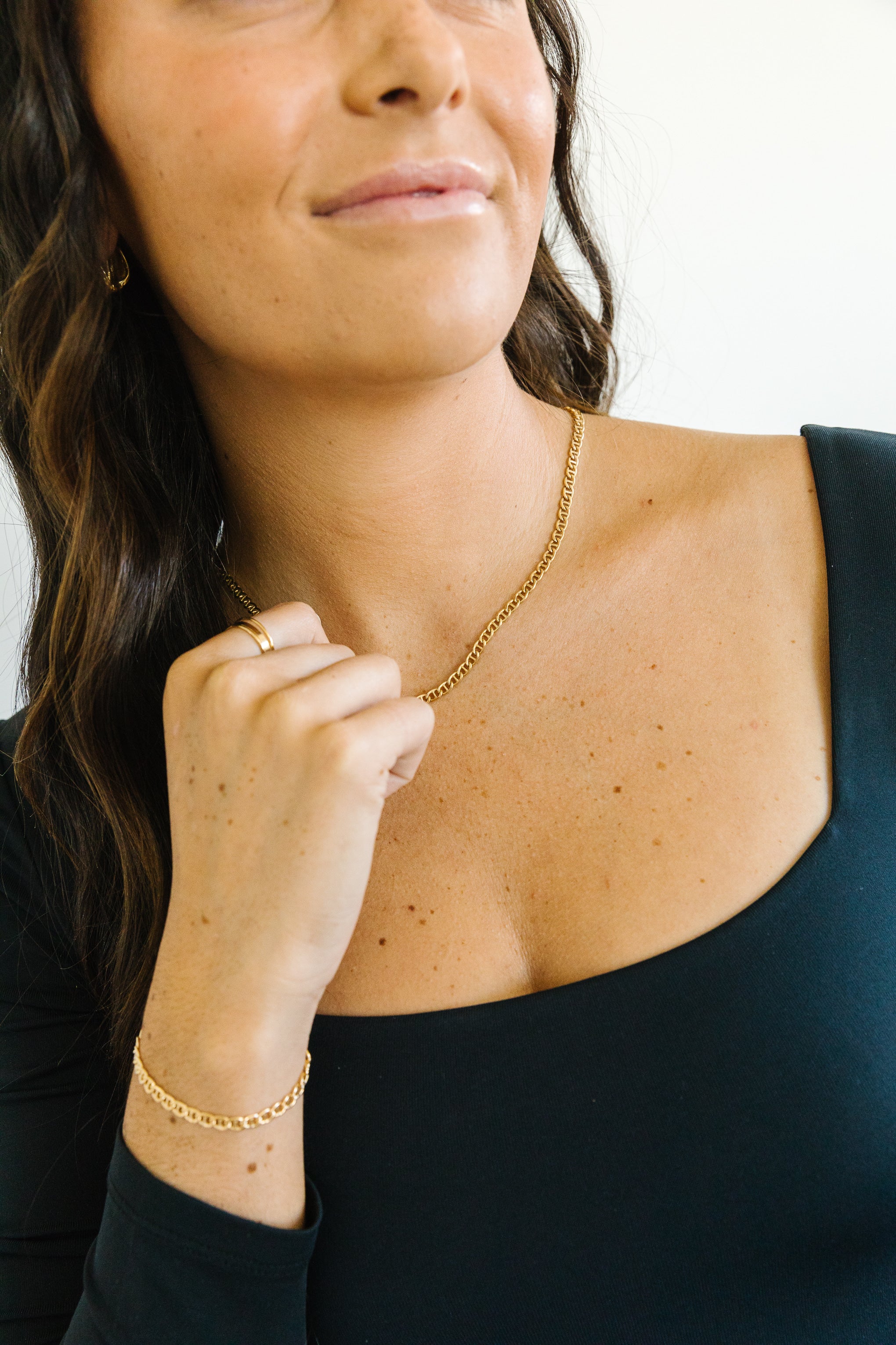 Not to brag, but we've somehow partnered minimalist and chunk in the most perfect way. This gold chain with just the right amount edge pops against summer's sun kissed skin and gives just the edge we're looking for. Whether your summer is looking like sunshine and the beach, or you're feeling a little more reckless and moody, we've got you covered.