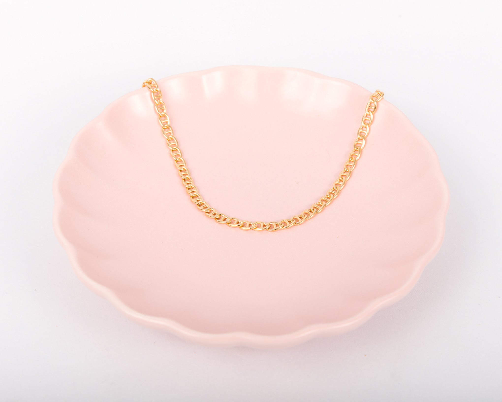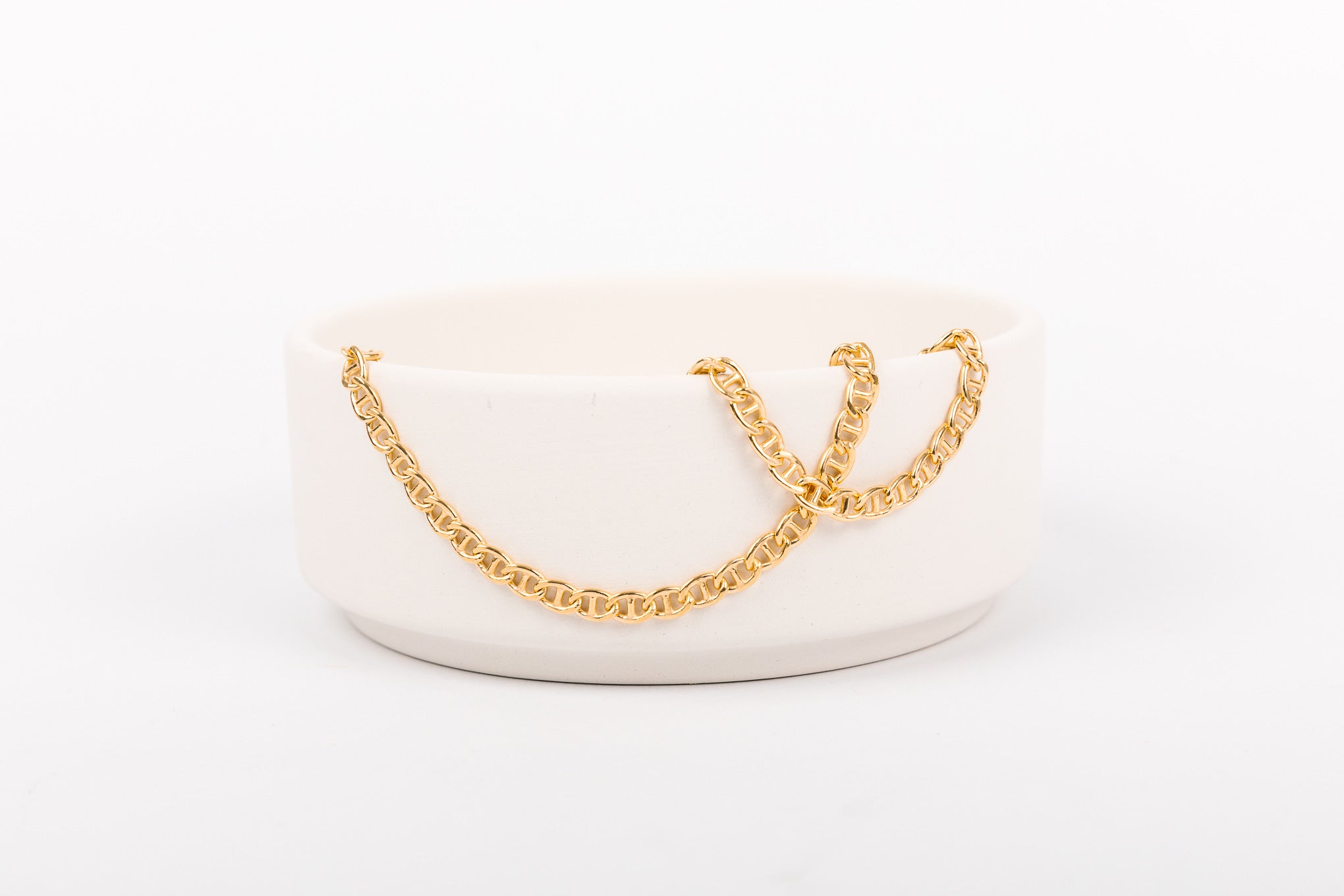 From Brooke: I wanted a staple gold chain jewelry piece. Necklace, bracelet & anklet so they can be worn together. These pieces are chunky, unique, but still perfect for an every day piece you never take off. I have been wearing these pieces since we got the samples, in the ocean, pool, shower, to workout classes & they are the BEST!