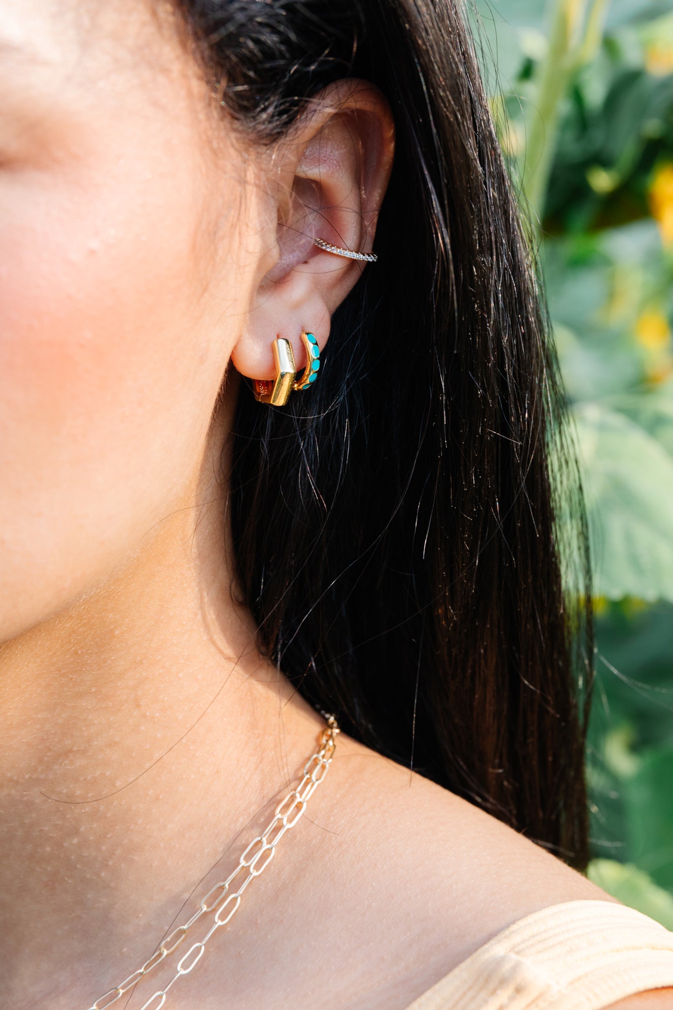 For durability, longevity, and affordability, we sell jewelry that is 14k gold-filled, vermeil, or sterling silver. Different than gold-plated, gold-filled jewelry is a layer of gold bonded through heat to a brass core. Vermeil is the same, but bonded to a a sterling silver core. These metals are durable, hypoallergenic, and tarnish resistant. Your pieces have the power to last a long time! When it comes to quality and durability, only solid gold can beat what we sell. Learn more.