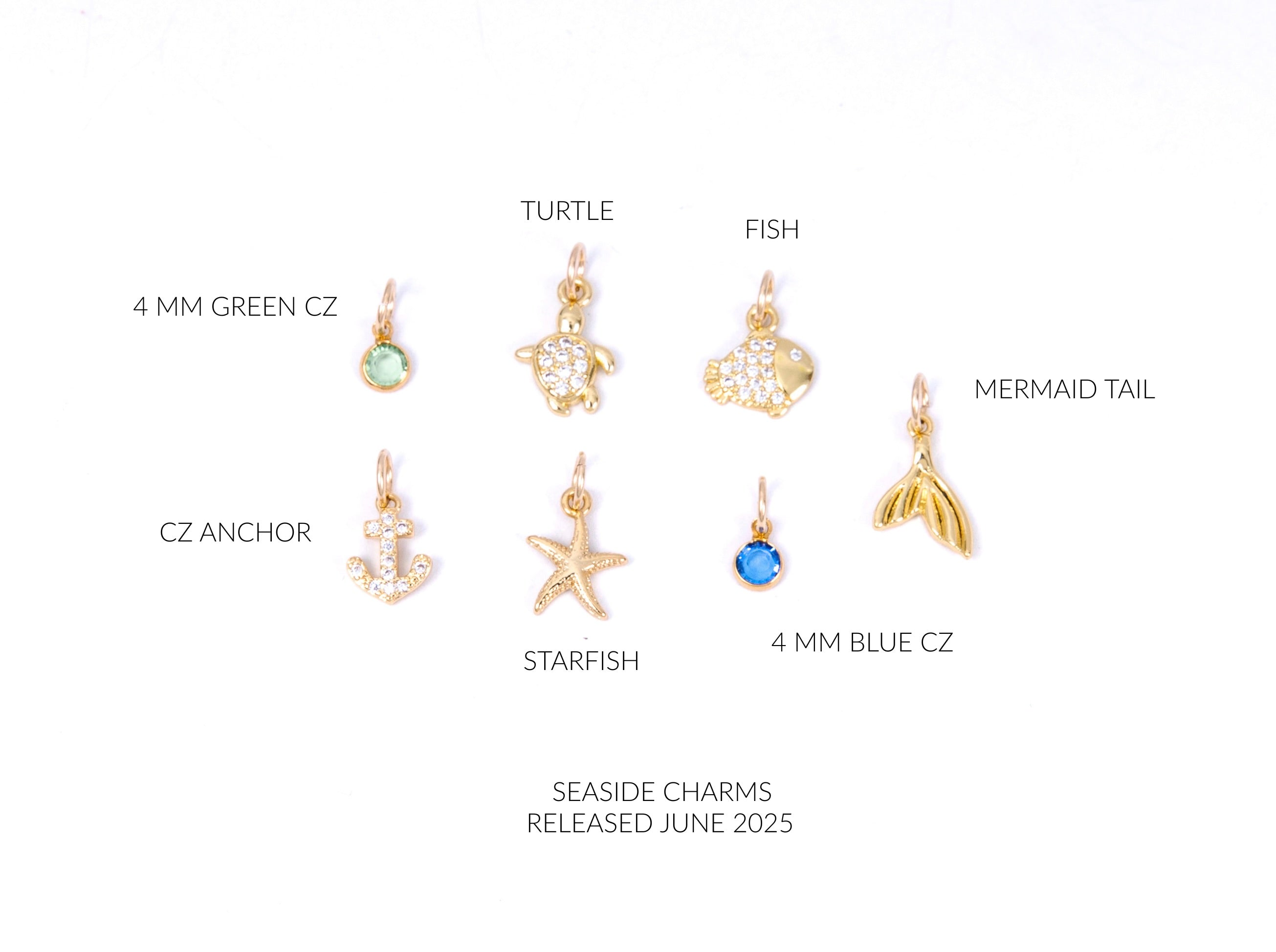 • Necklace charms can easily be added or removed to your Hey June necklace chain.  Our favorites to add the charm to are Baby Antonia, Thread Chain, Standard Chain, Mama Antonia, and Daphne.  But the sky is truly the limit!