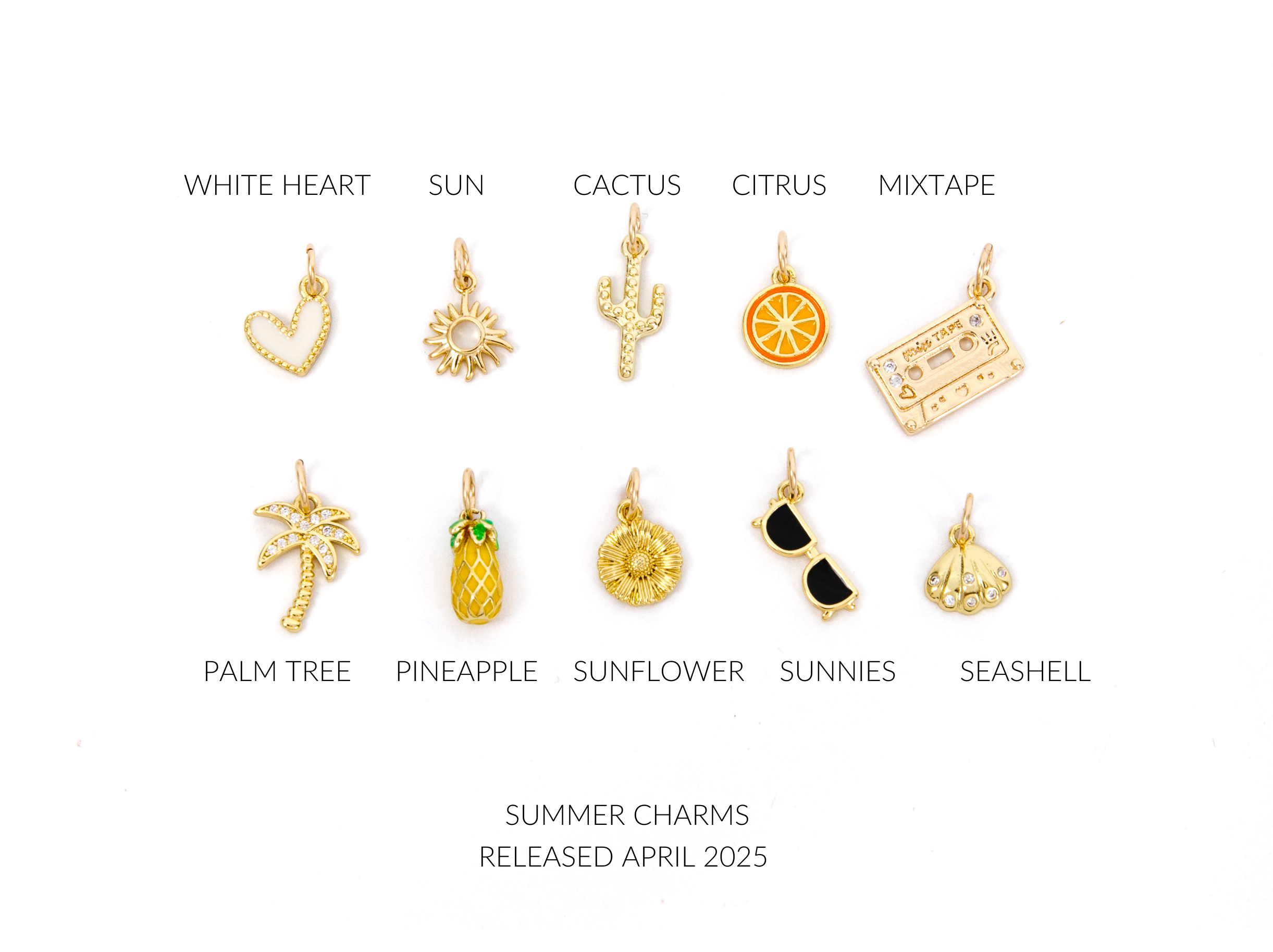 • Necklace charms can fit over any Hey June chain with the exception of Penelope and Lynn.