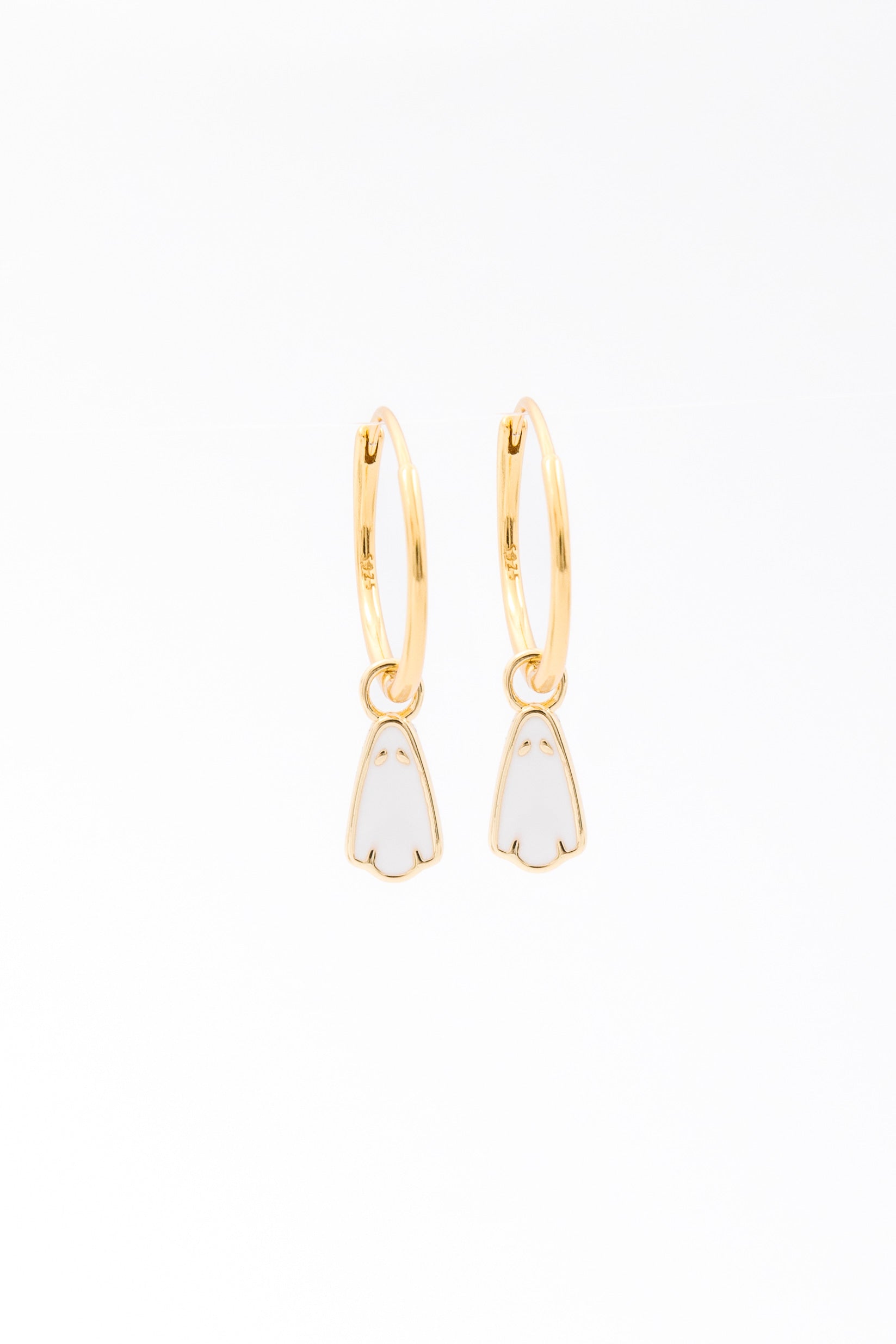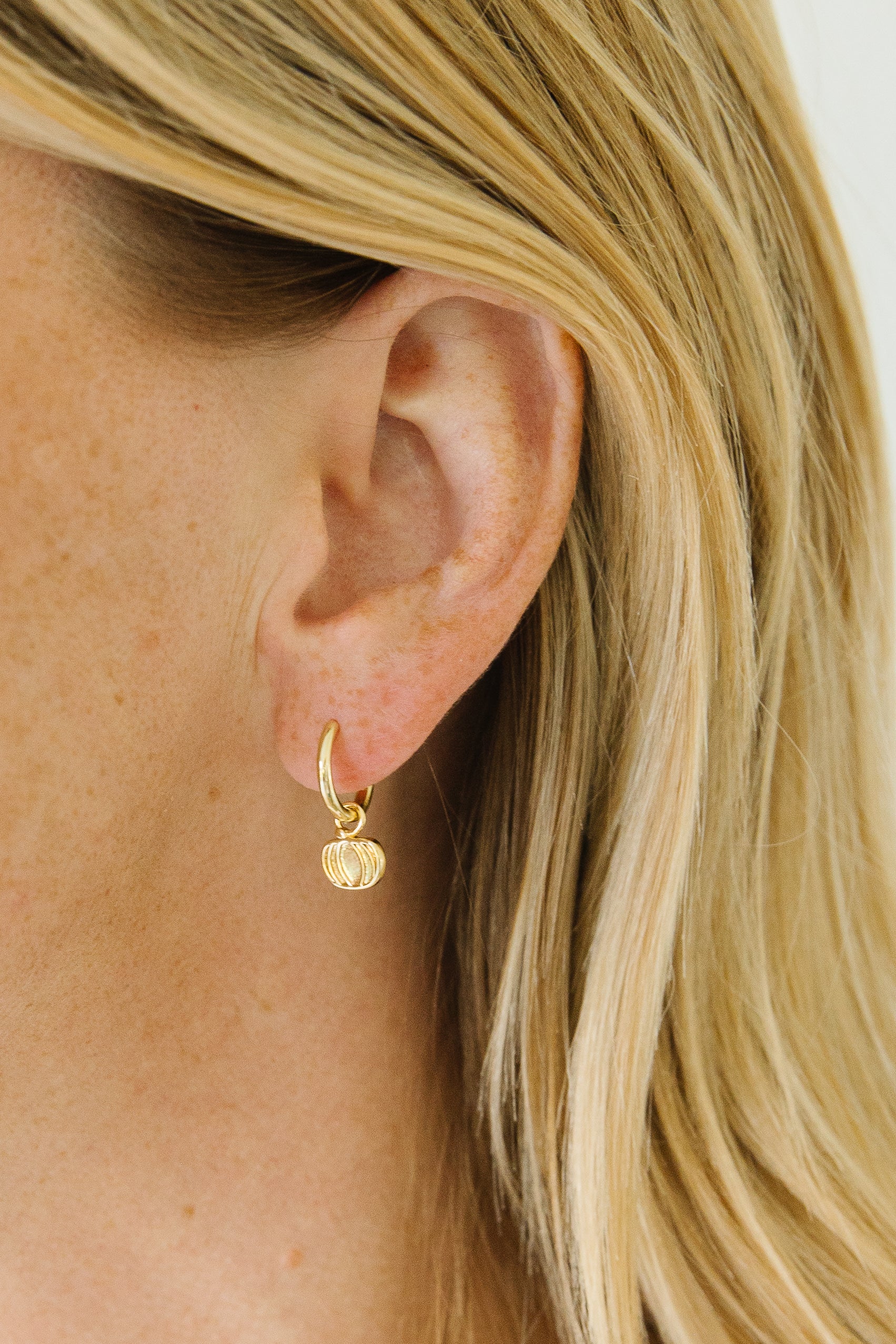 This listing includes one pair of huggies + three sets of Halloween earring charms: pumpkins, candy corn, and ghosts.