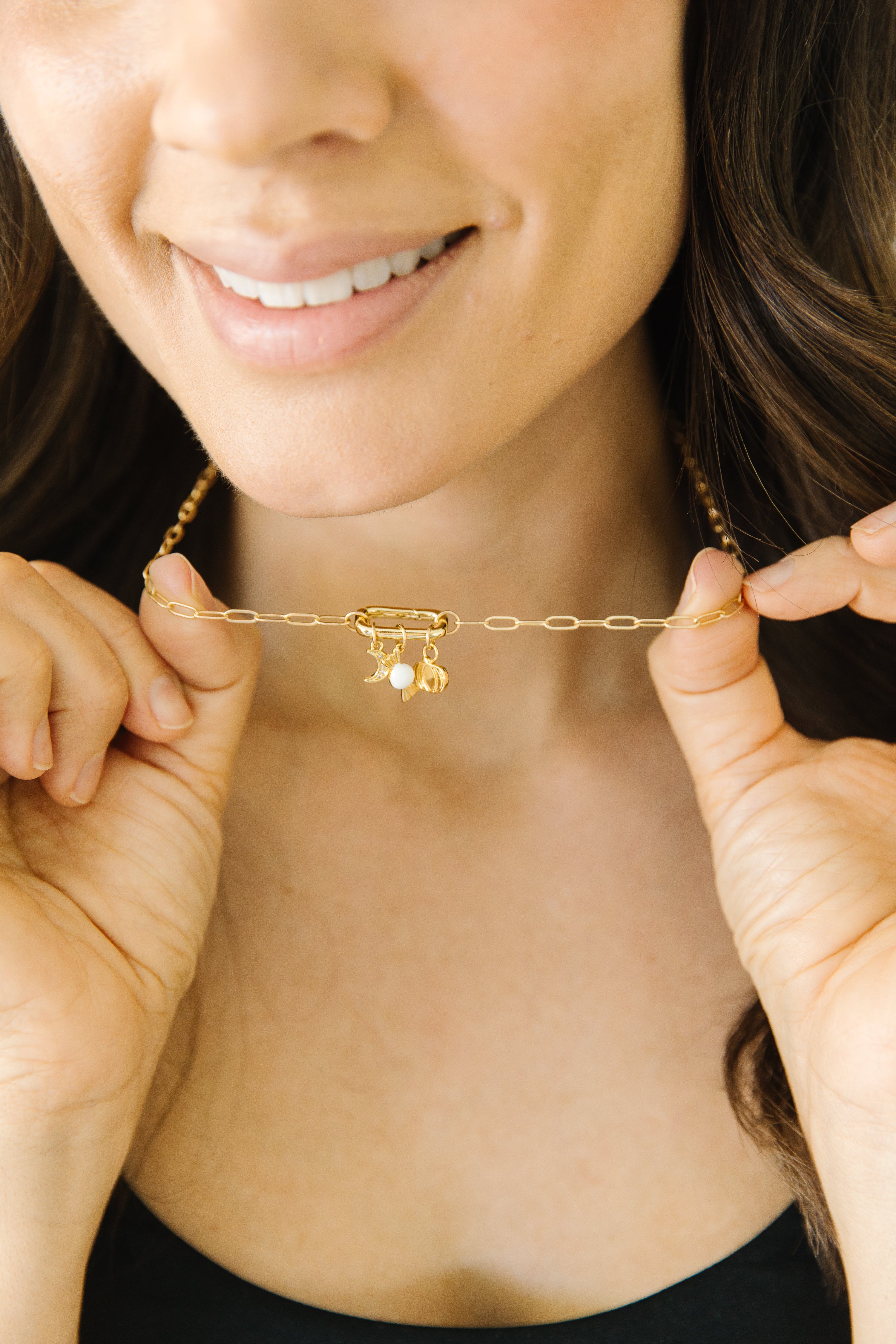• The first of its kind at Hey June, this necklace is fully customizable! Add as many or as few charms as you want, pick one chain or both! With this necklace we say why choose?!