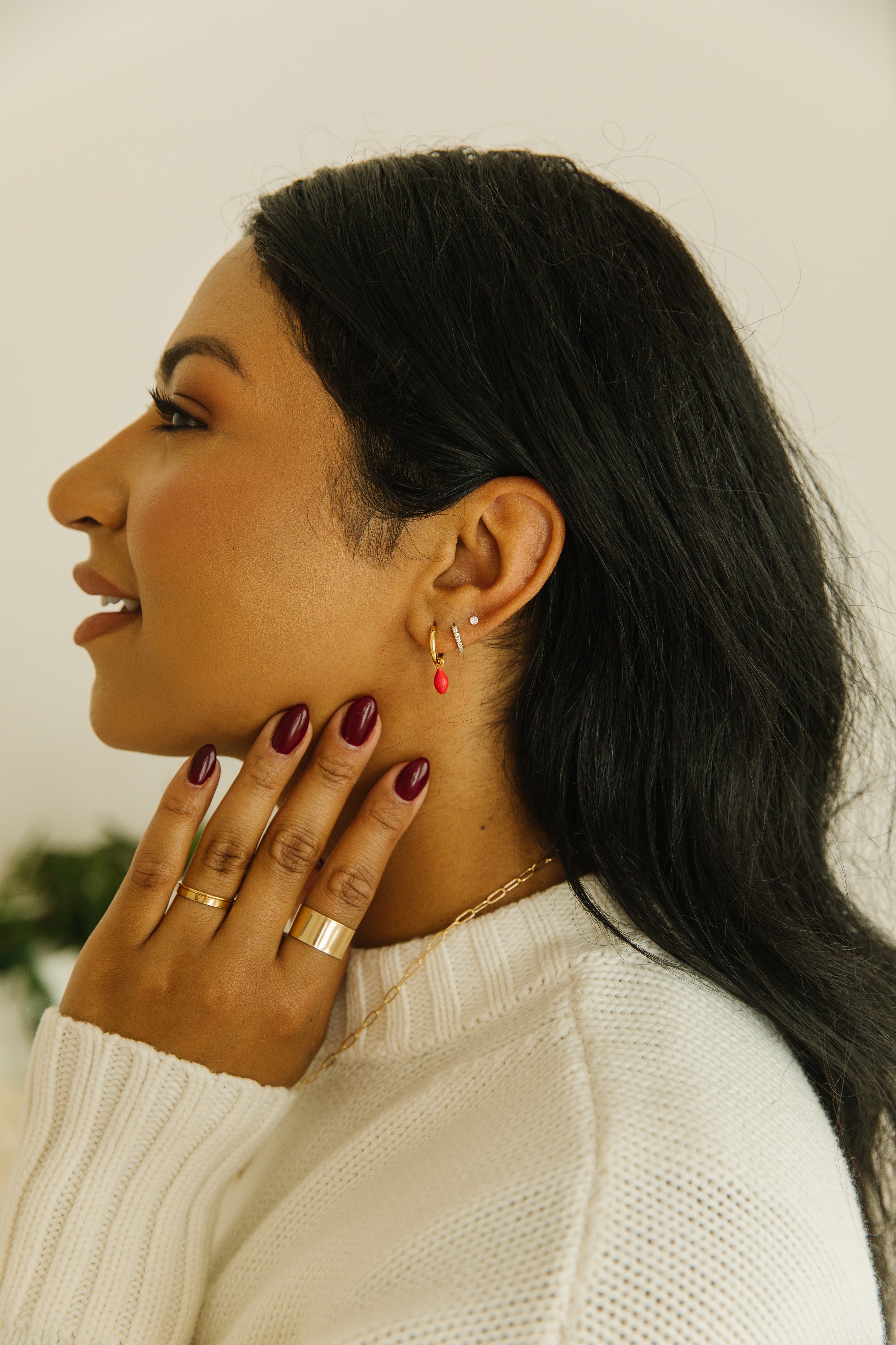 For durability, longevity, and affordability, we sell jewelry that is 14k gold-filled, vermeil, or sterling silver. Different than gold-plated, gold-filled jewelry is a layer of gold bonded through heat to a brass core. Vermeil is the same, but bonded to a a sterling silver core. These metals are durable, hypoallergenic, and tarnish resistant. Your pieces have the power to last a long time! When it comes to quality and durability, only solid gold can beat what we sell. Learn more.