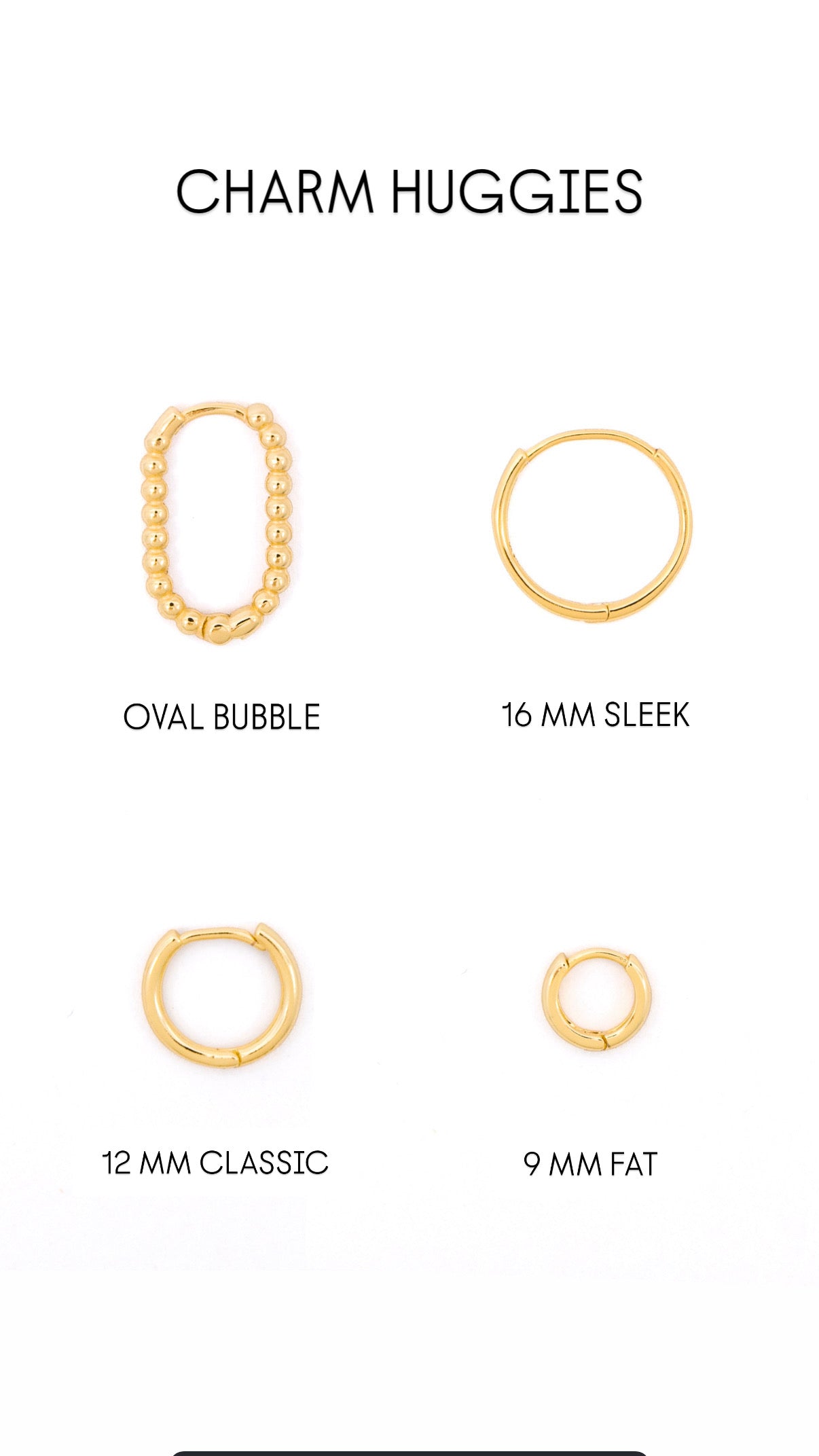 • The jump ring will fit over the following Hey June huggies: 9 mm fat huggies, 12 mm huggies, oval bubble huggies, and 16 mm sleek huggies.