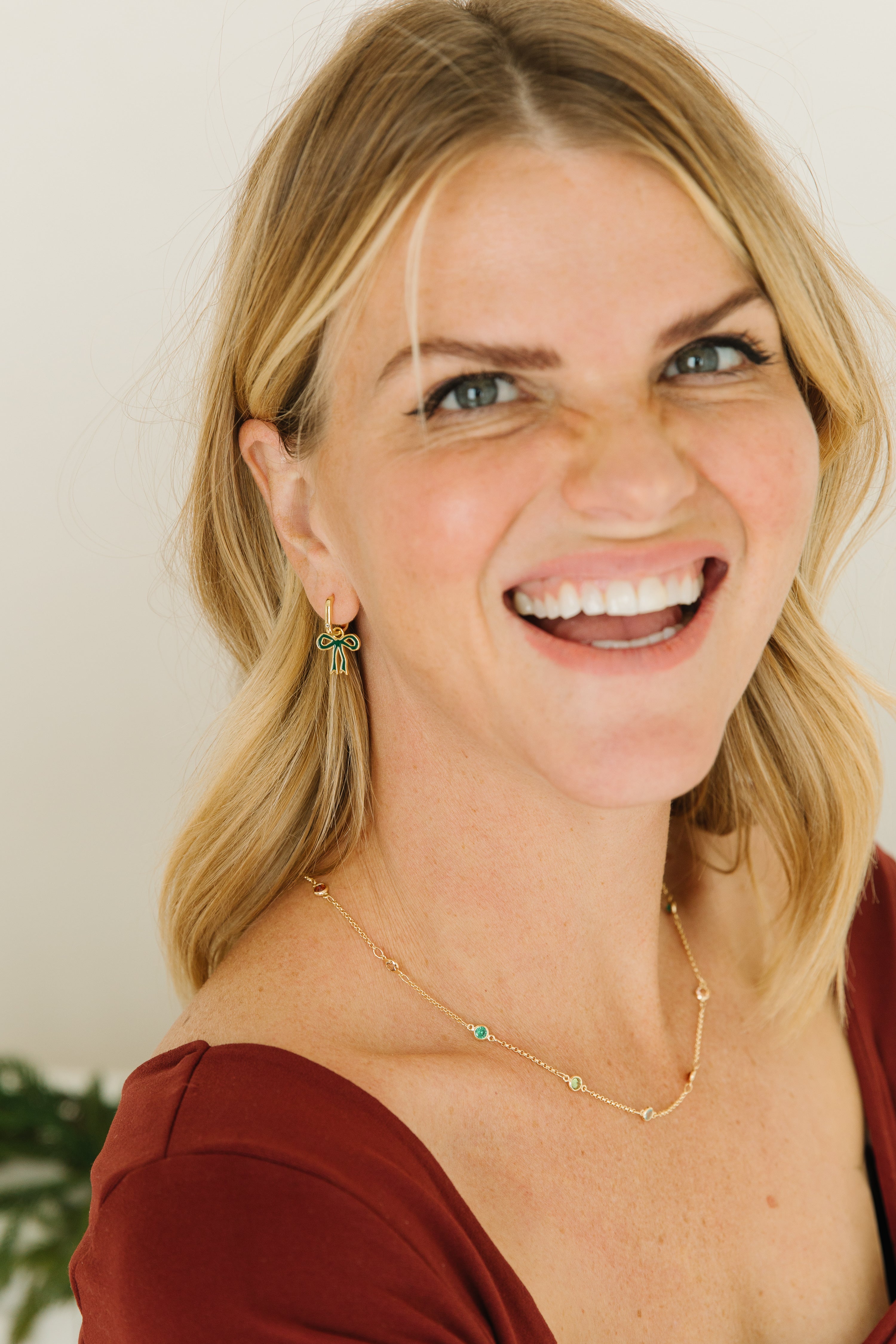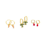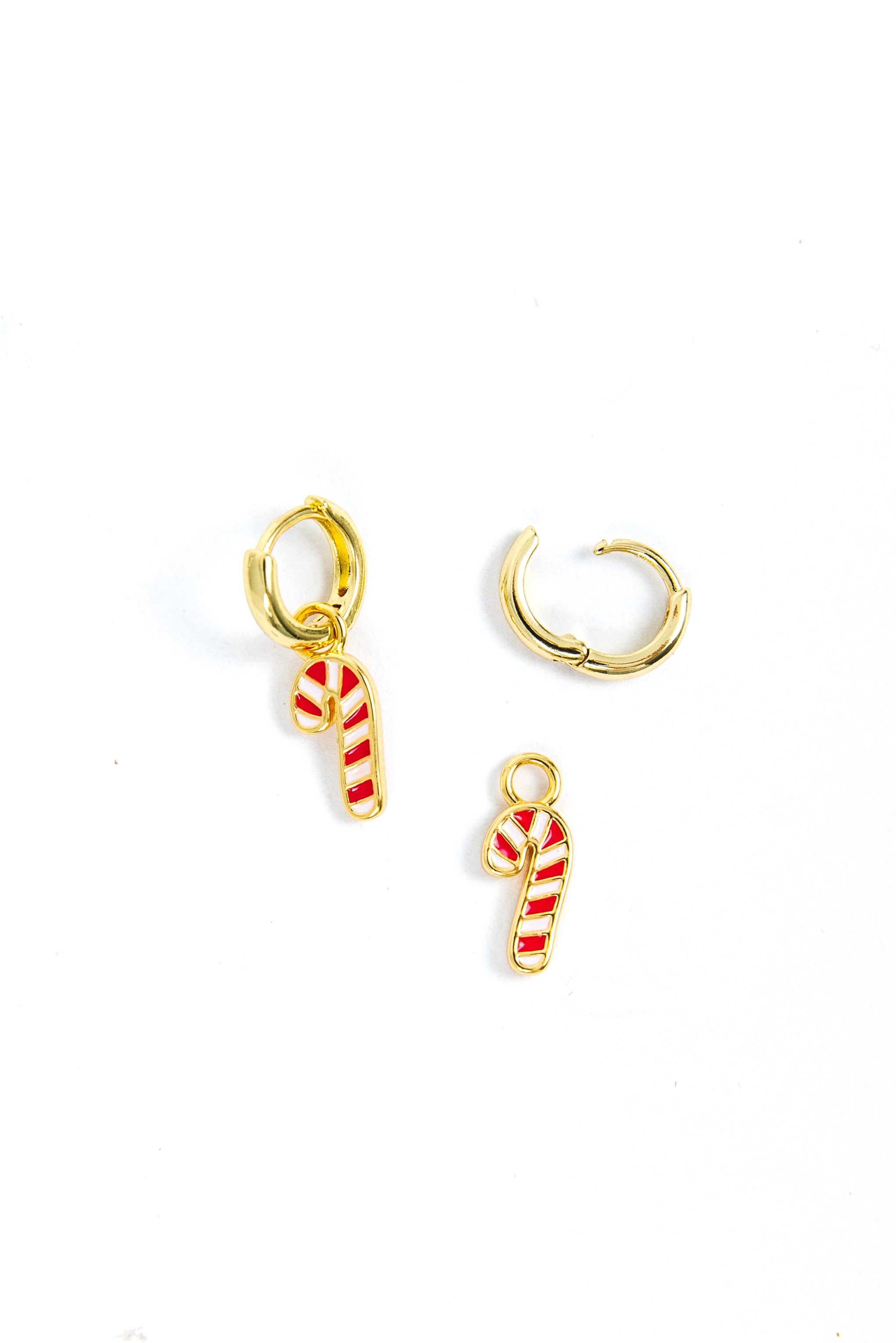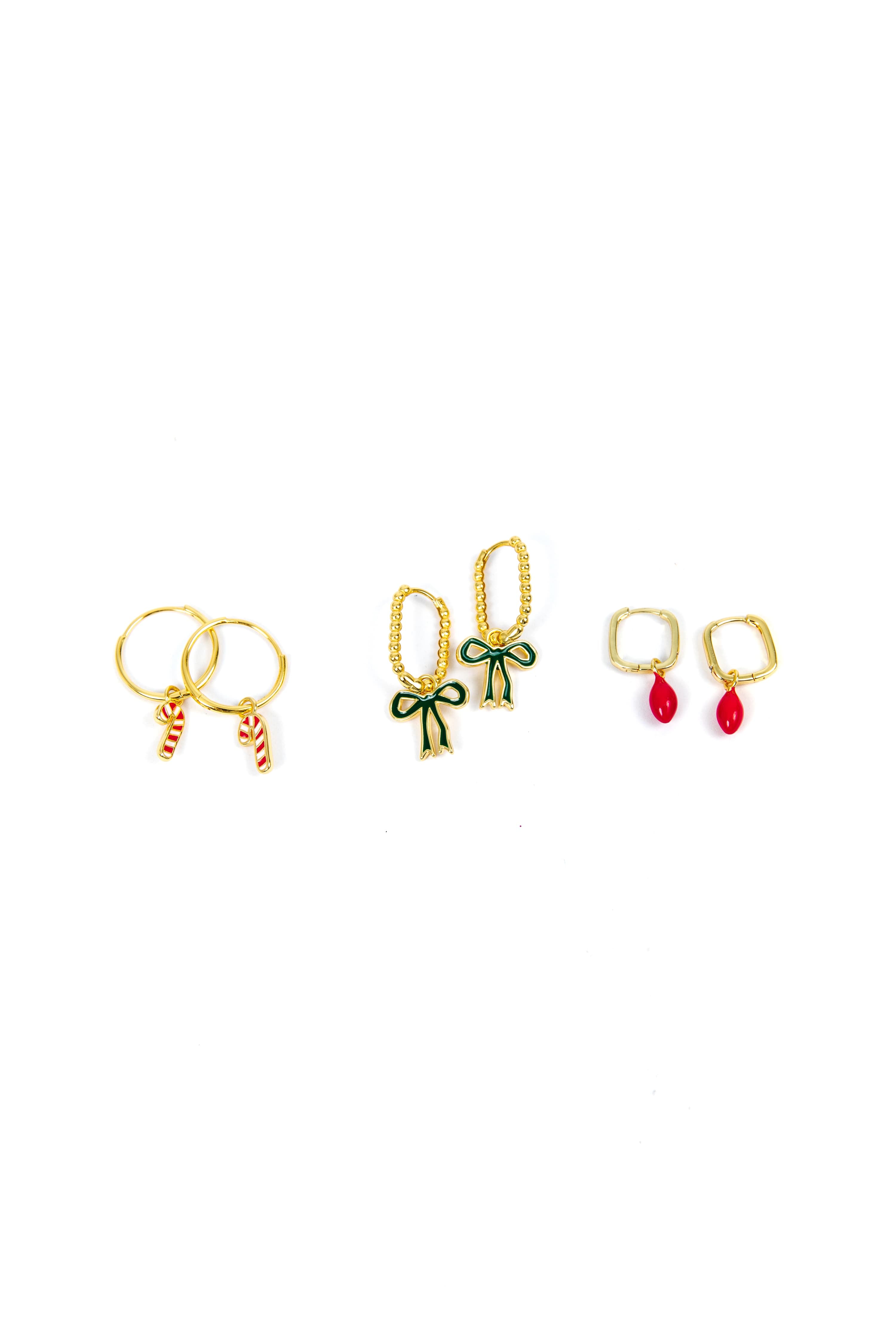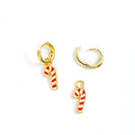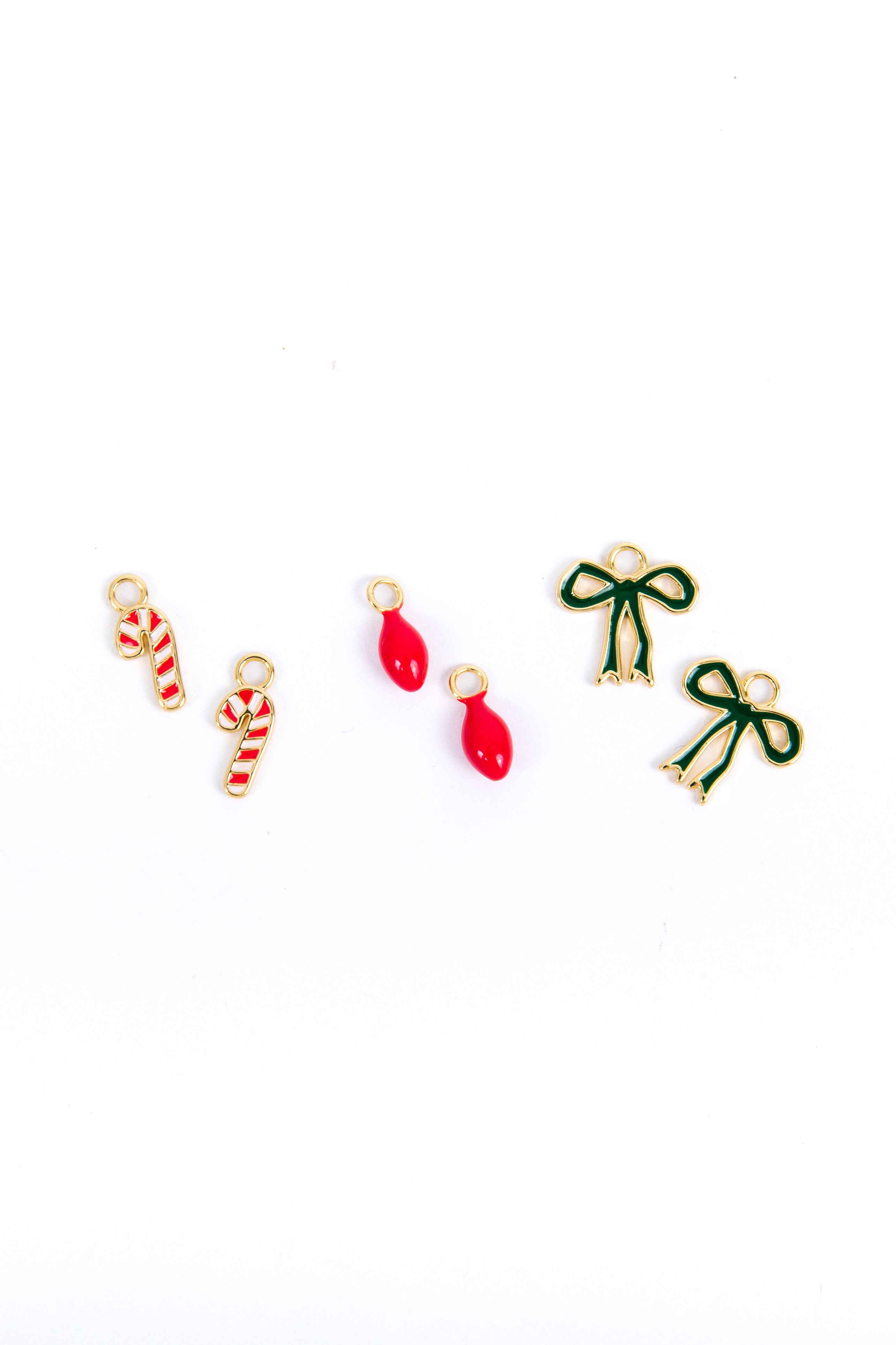 This listing includes one pair of huggies + three sets of Holiday earring charms: Christmas bulbs, candy canes, and green floppy bows.