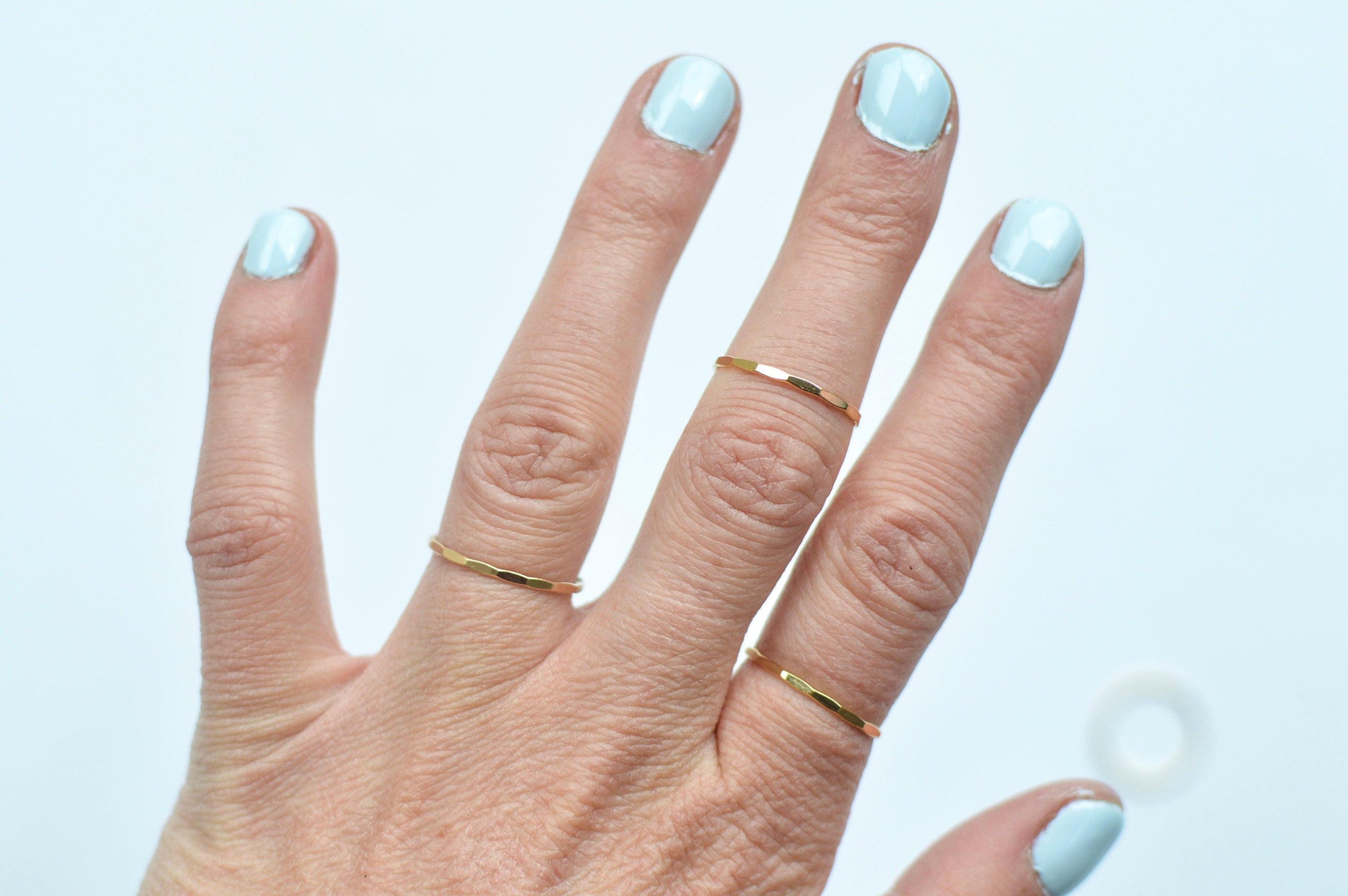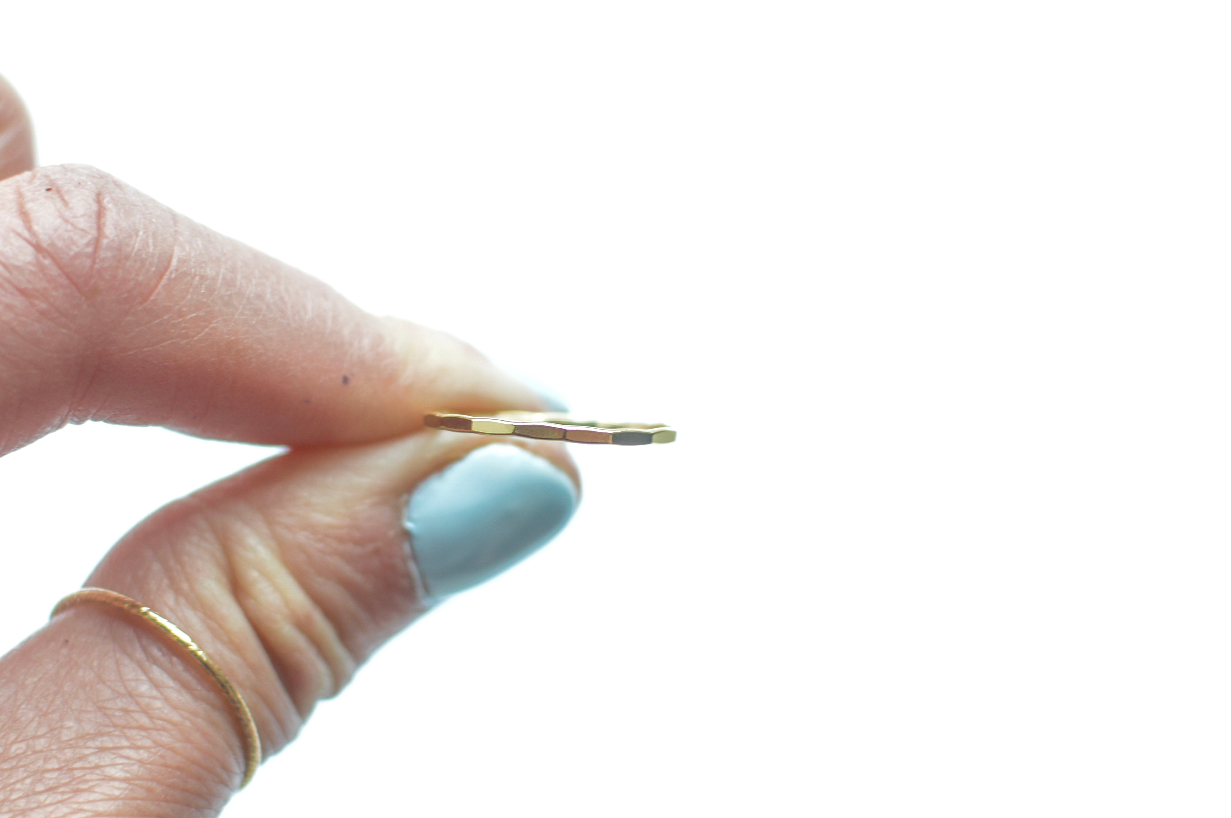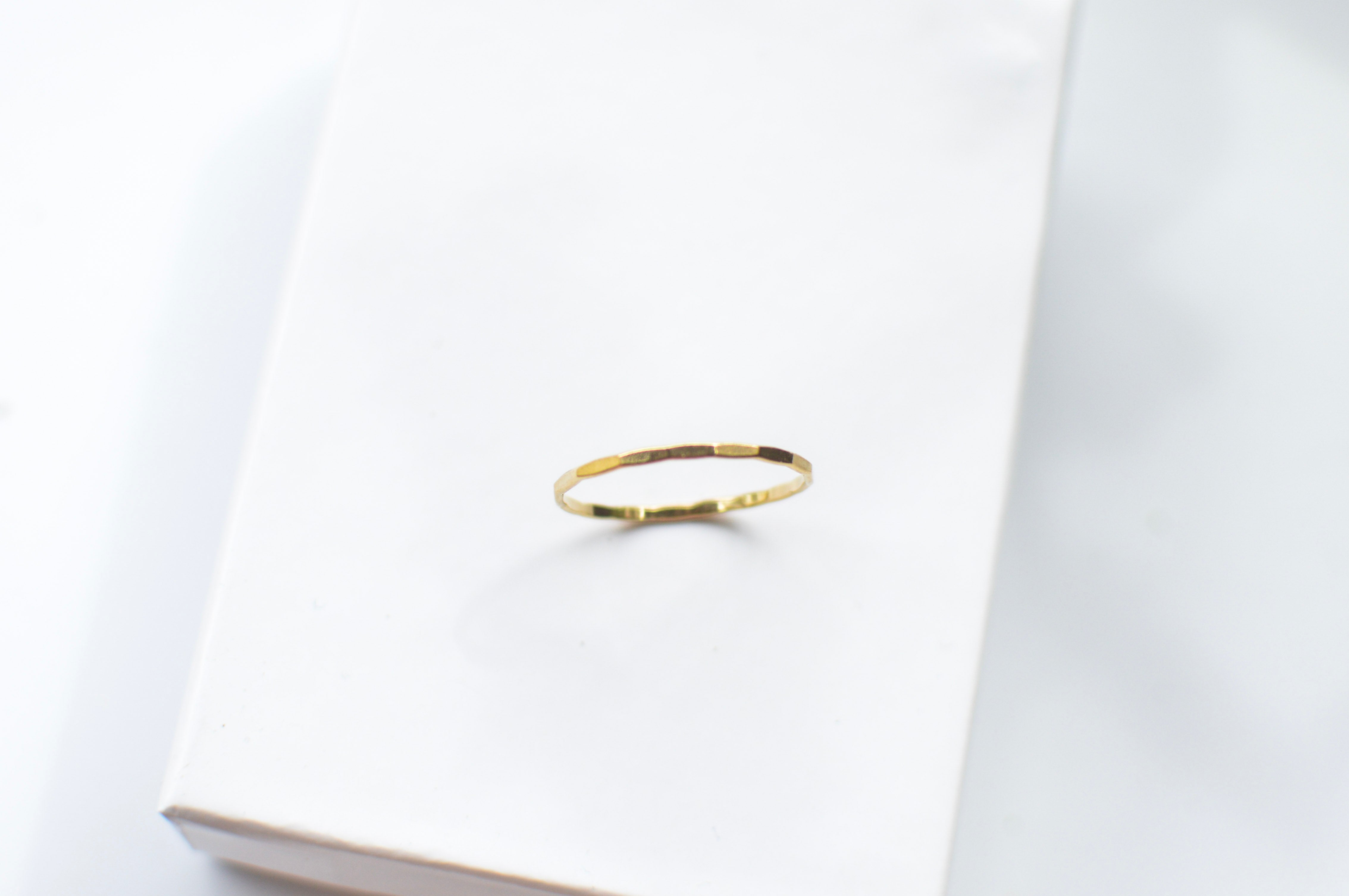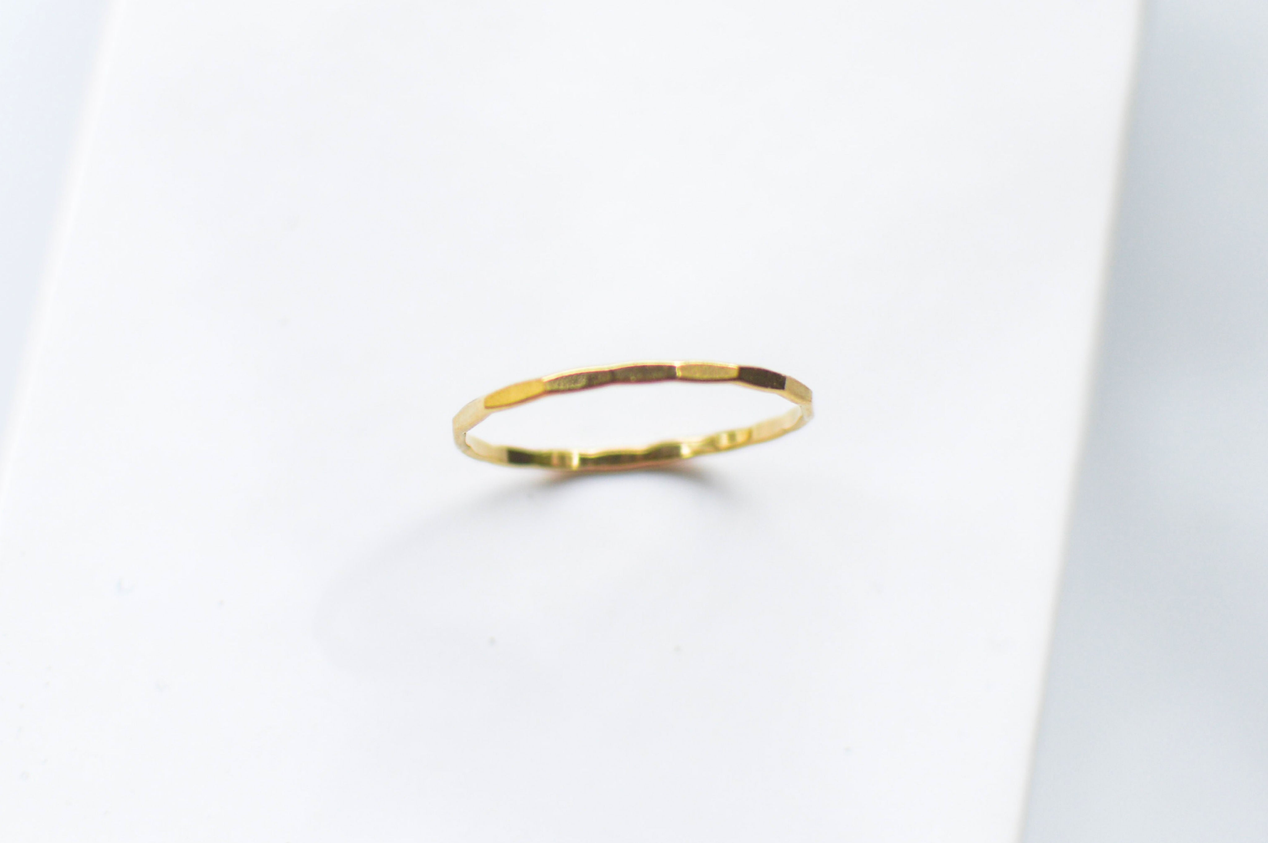 Tiny gold ring. Minimal and dainty with many sides, creating a "hammered" look. Perfect for stacking.