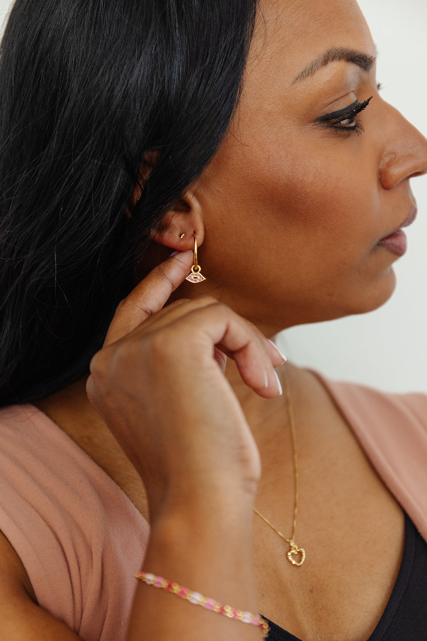 Stop talking dirty to me!  We went all out for Valentine’s Day 2026- flirty hoops, custom charms + studs, girlfriend necklace, bows, pinks, polka dots. Ultra feminine and a little bit spicy. Girl, we know exactly the kind of dirty talk you like. 😉