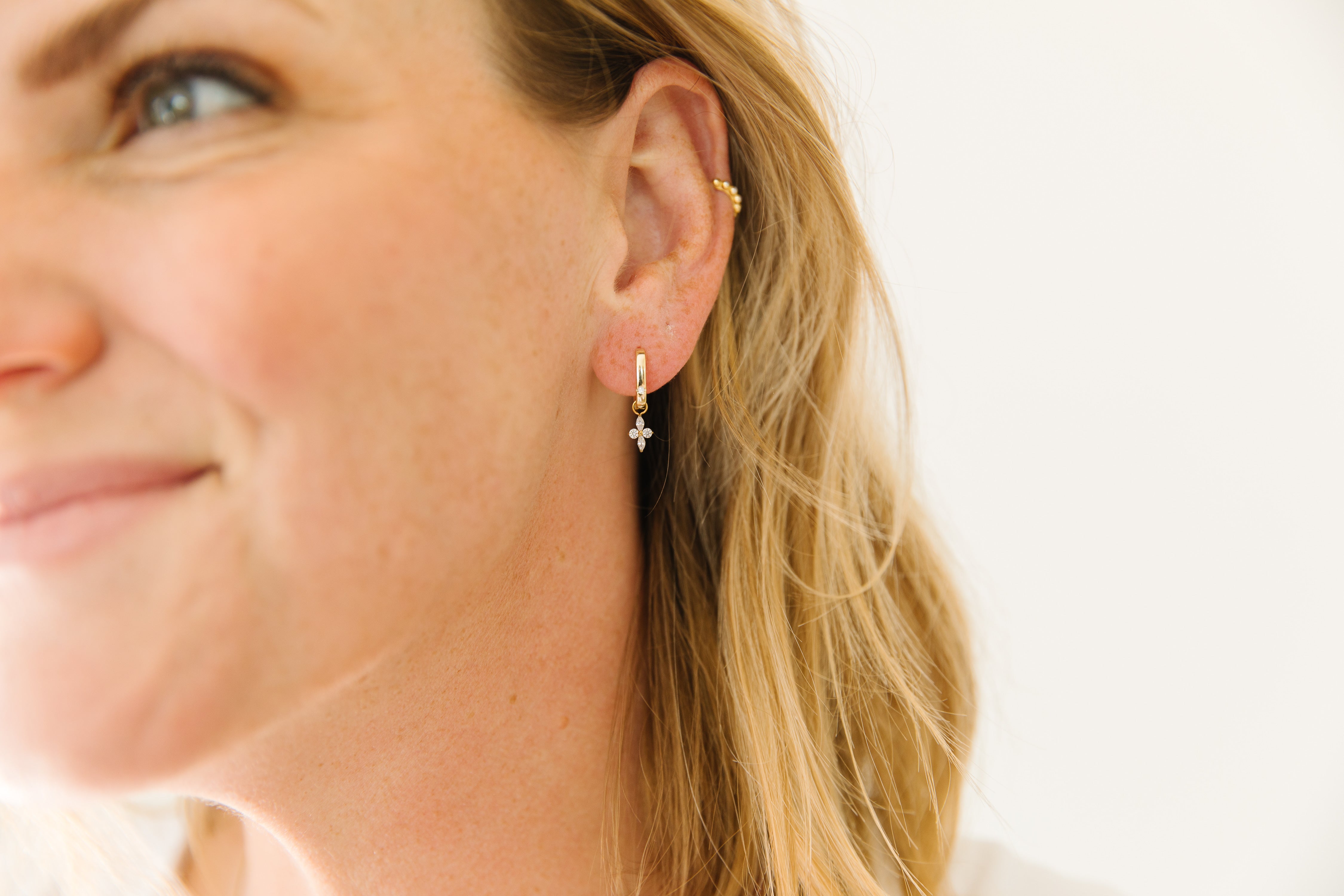 • The jump ring will fit over the following Hey June huggies: square cz huggies,  oval bubble huggies, 12 mm huggies, and 16 mm sleek huggies.