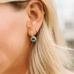 • Model is also wearing 9 mm fat huggie, mini bubble huggies, Regency Stack.