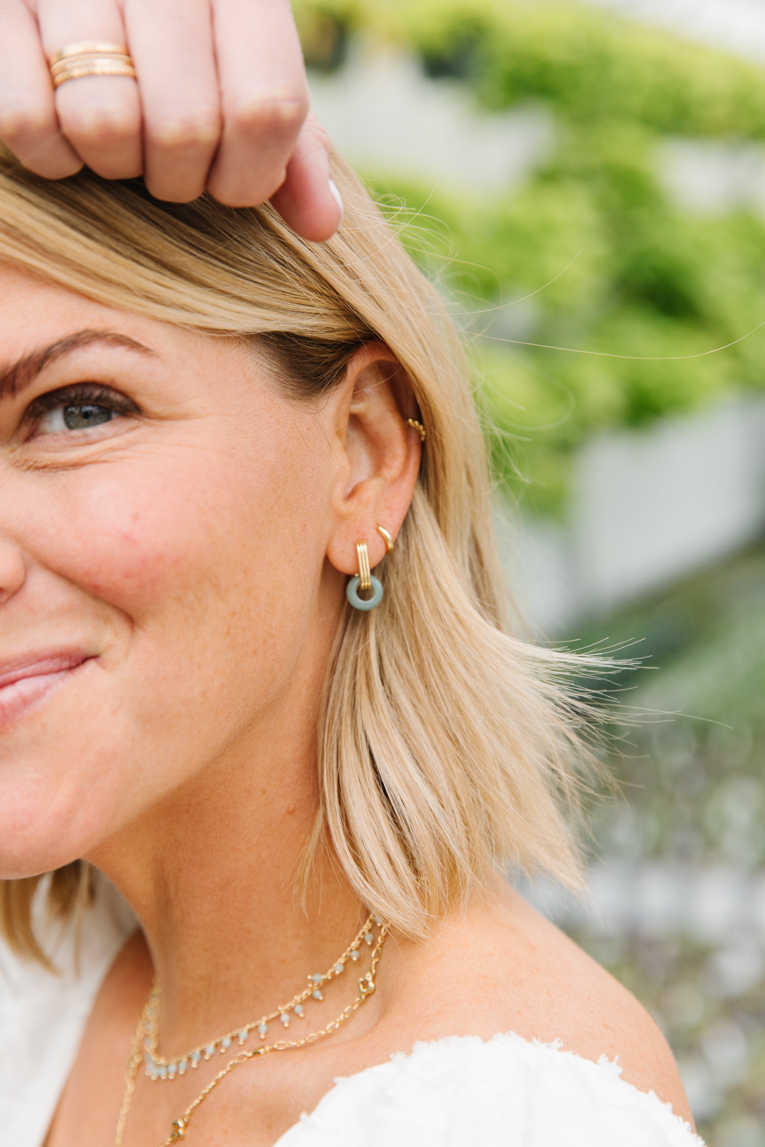For durability, longevity, and affordability, we sell jewelry that is 14k gold-filled, vermeil, or sterling silver. Different than gold-plated, gold-filled jewelry is a layer of gold bonded through heat to a brass core. Vermeil is the same, but bonded to a a sterling silver core. These metals are durable, hypoallergenic, and tarnish resistant. Your pieces have the power to last a long time! When it comes to quality and durability, only solid gold can beat what we sell. Learn more.