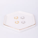 For durability, longevity, and affordability, we sell jewelry that is 14k gold-filled, vermeil, or sterling silver. Different than gold-plated, gold-filled jewelry is a layer of gold bonded through heat to a brass core. Vermeil is the same, but bonded to a a sterling silver core. These metals are durable, hypoallergenic, and tarnish resistant. Your pieces have the power to last a long time! When it comes to quality and durability, only solid gold can beat what we sell. Learn more.