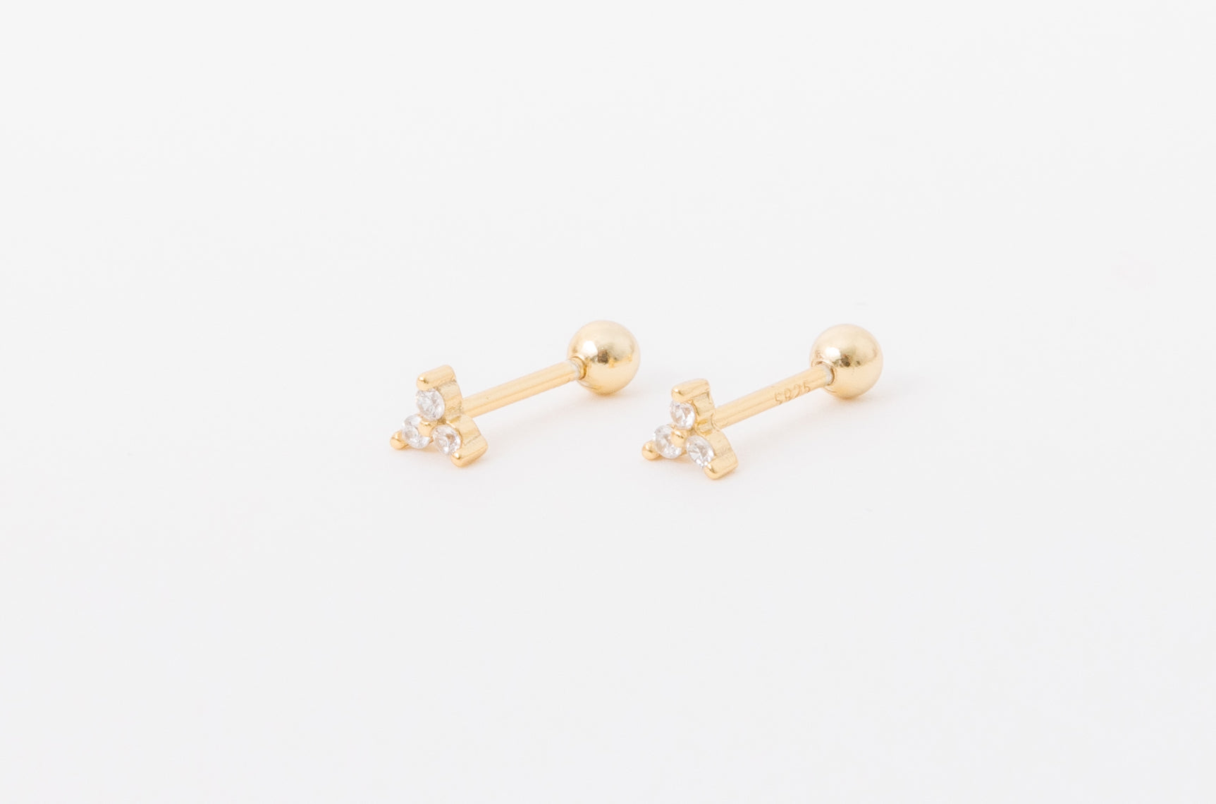 • 3 diamond cluster screwback is 14k gold over 925 sterling silver