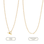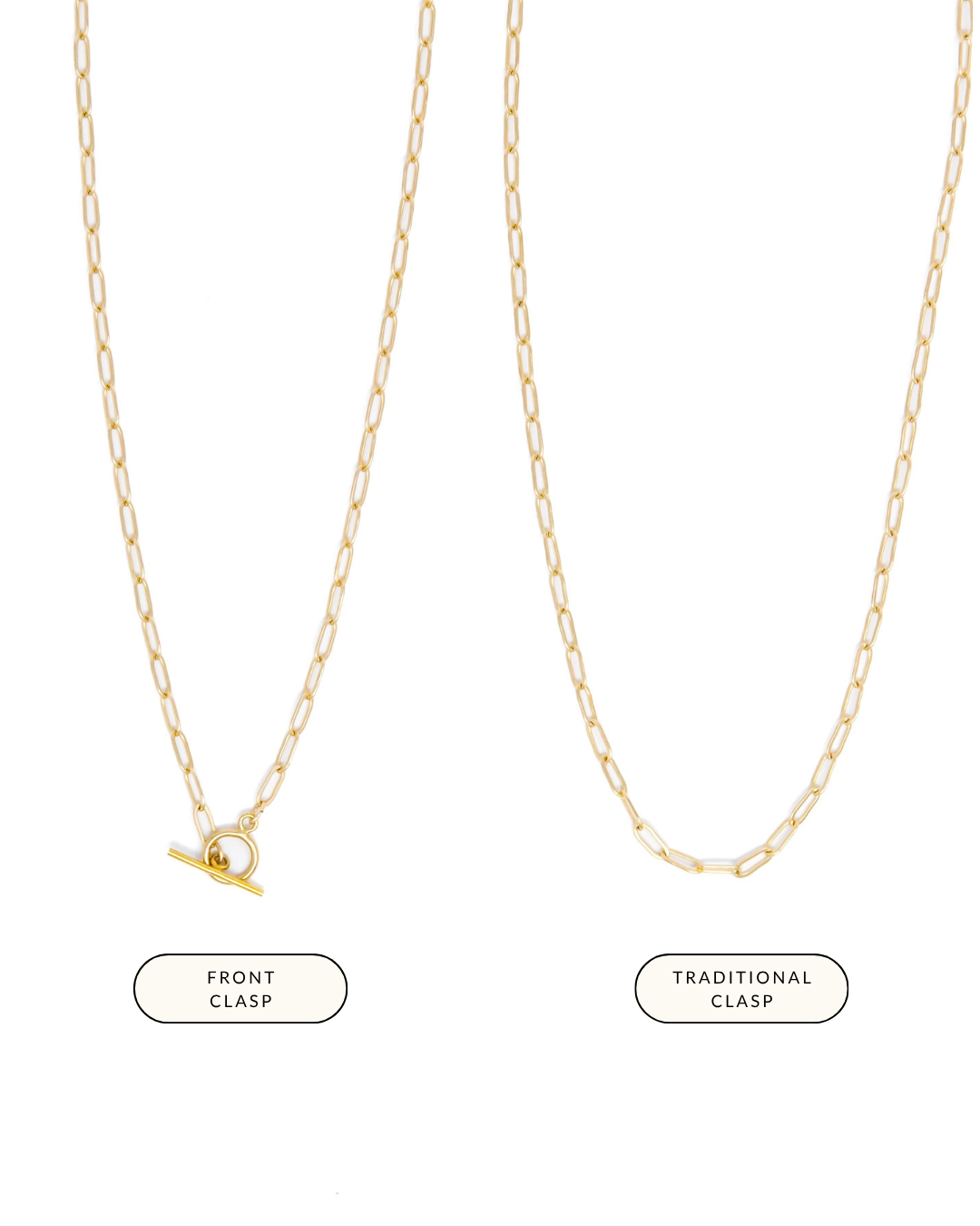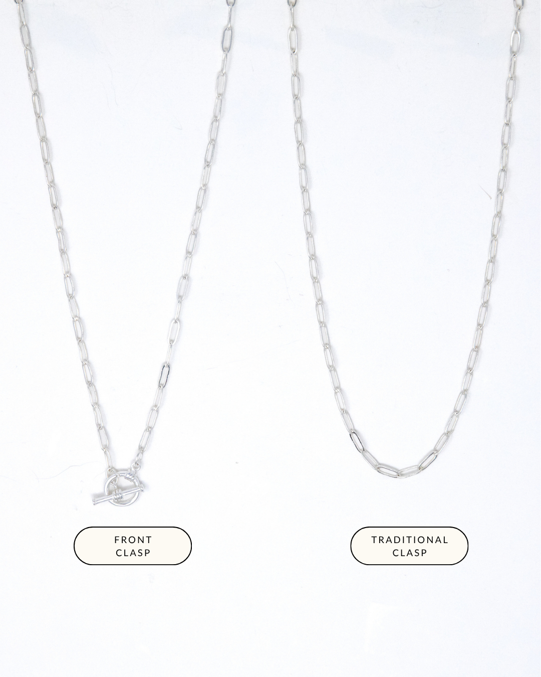 • Available with a traditional spring clasp that goes in the back, or a large front clasp.