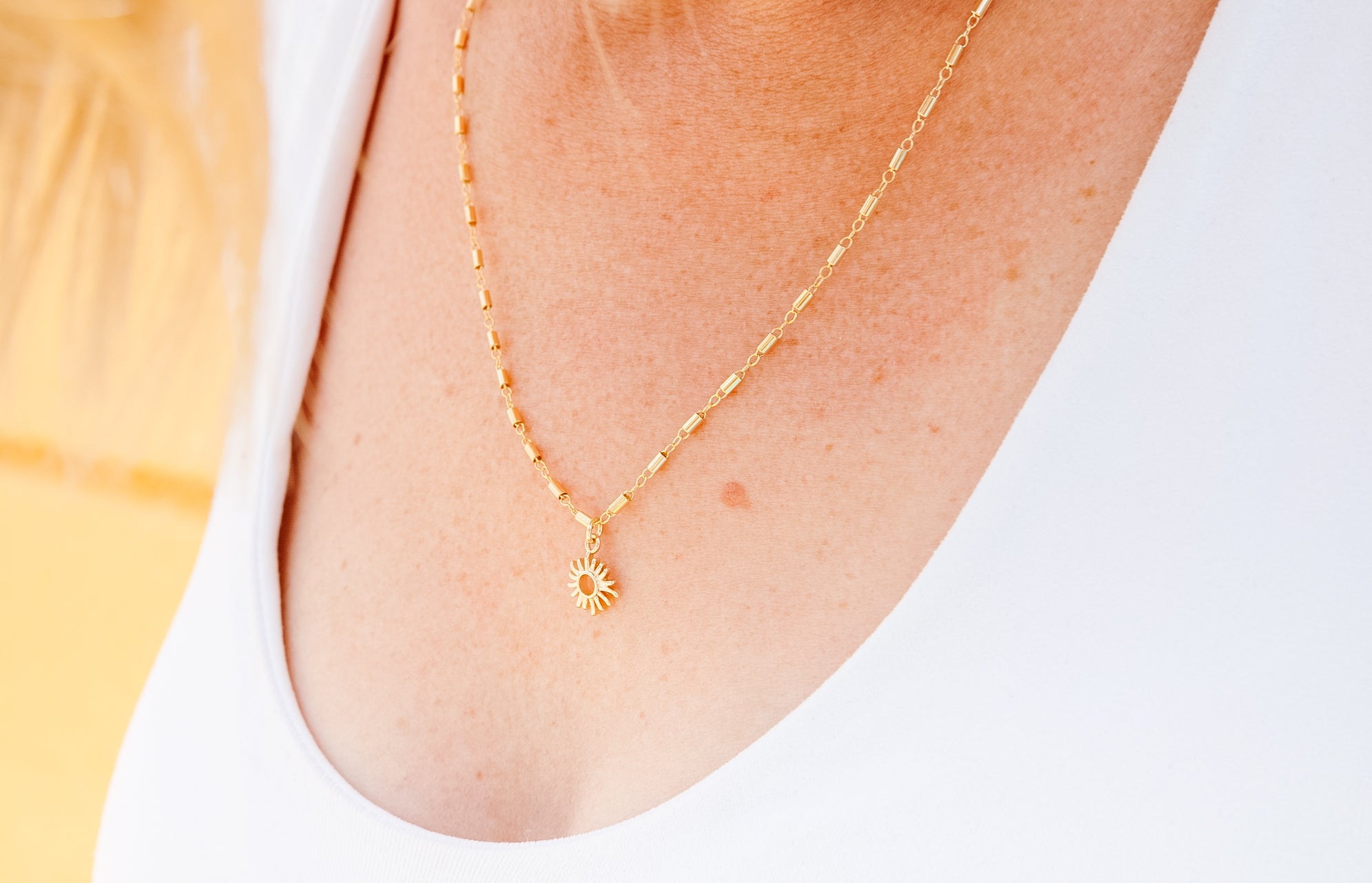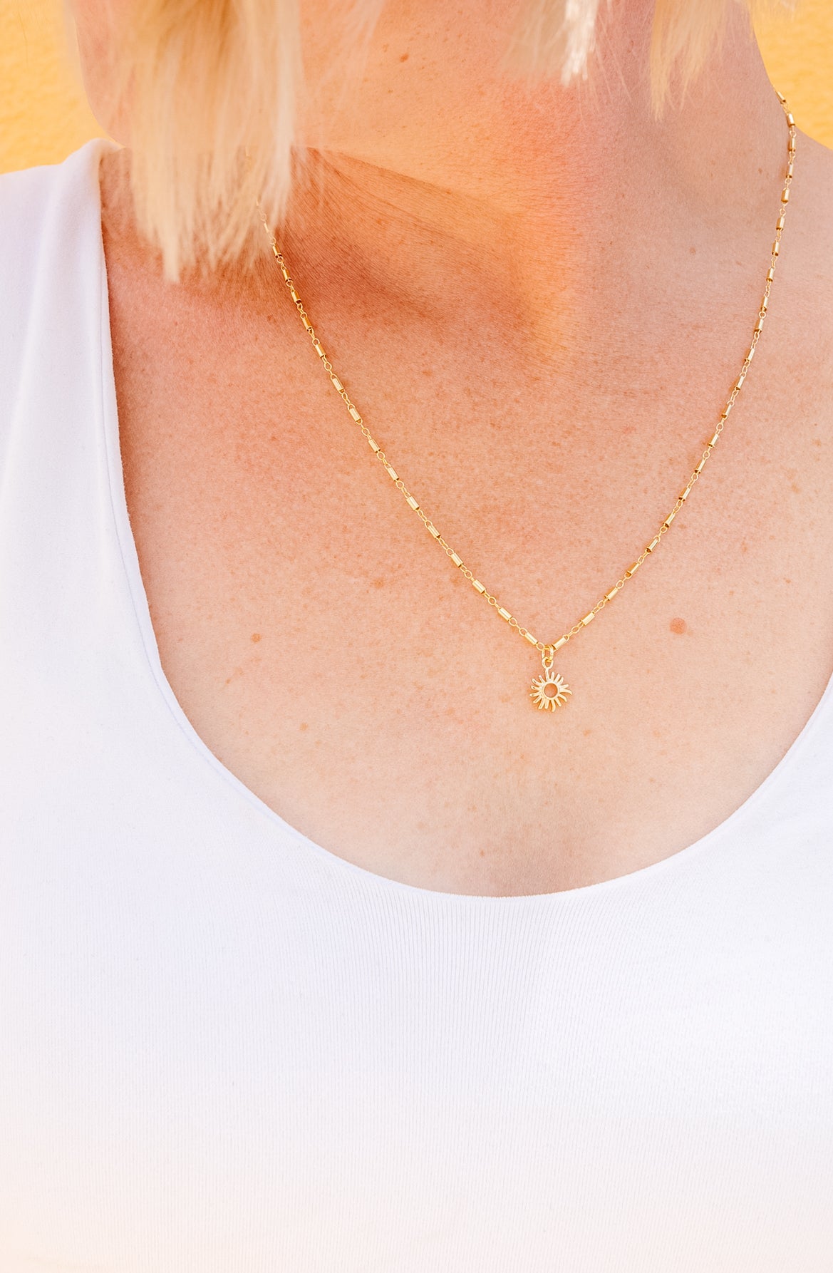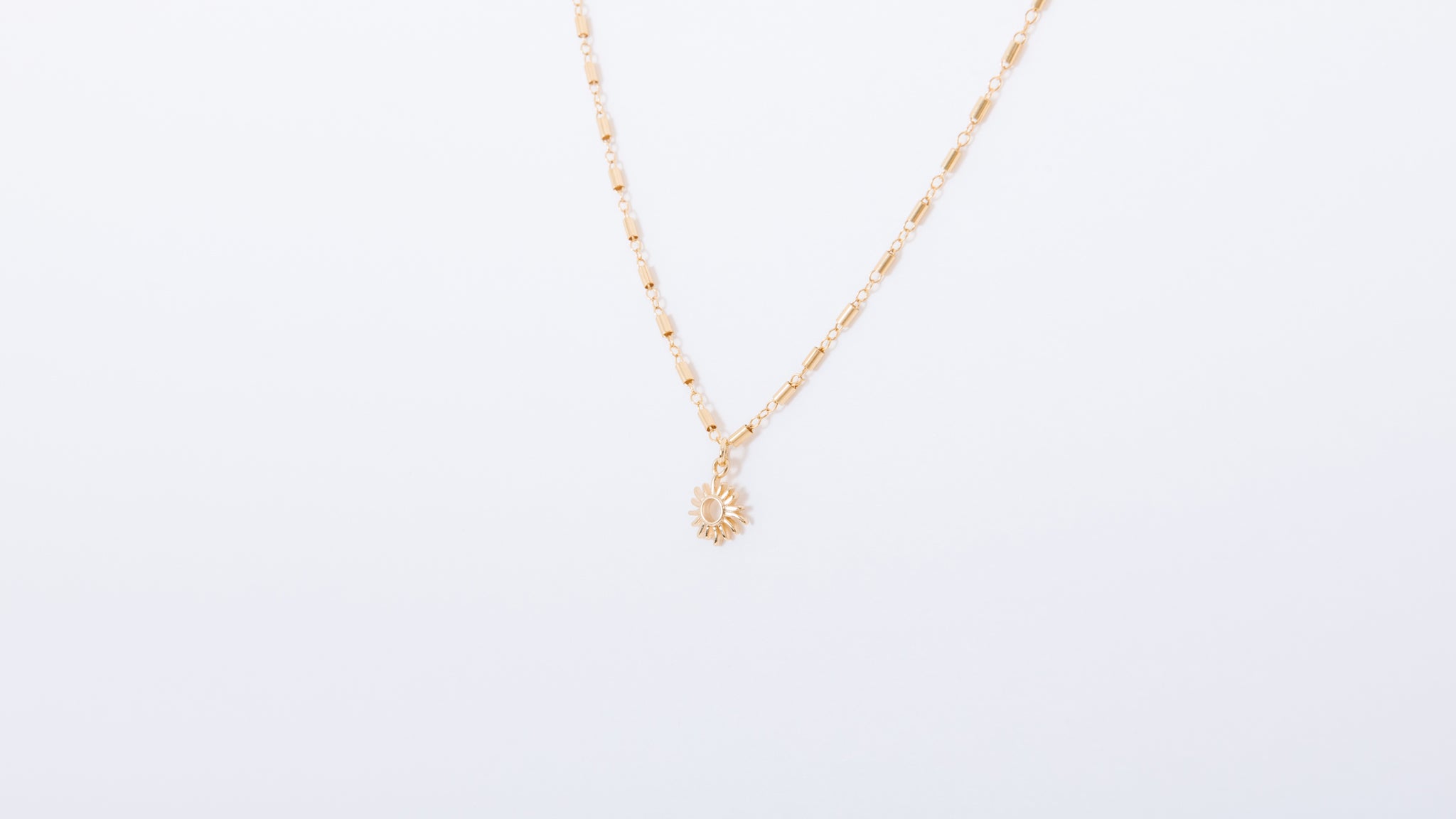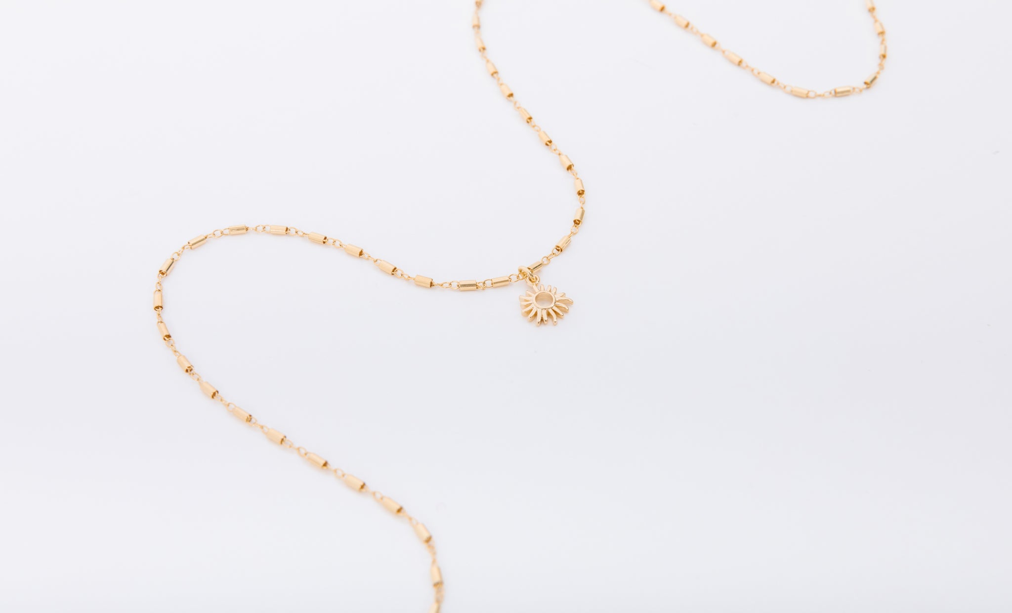 This sun necklace comes on our brand new Anne Frank chain.  The Frank chain celebrates the sass, spit fire-ness, strength and eternal optimism of Anne Frank.