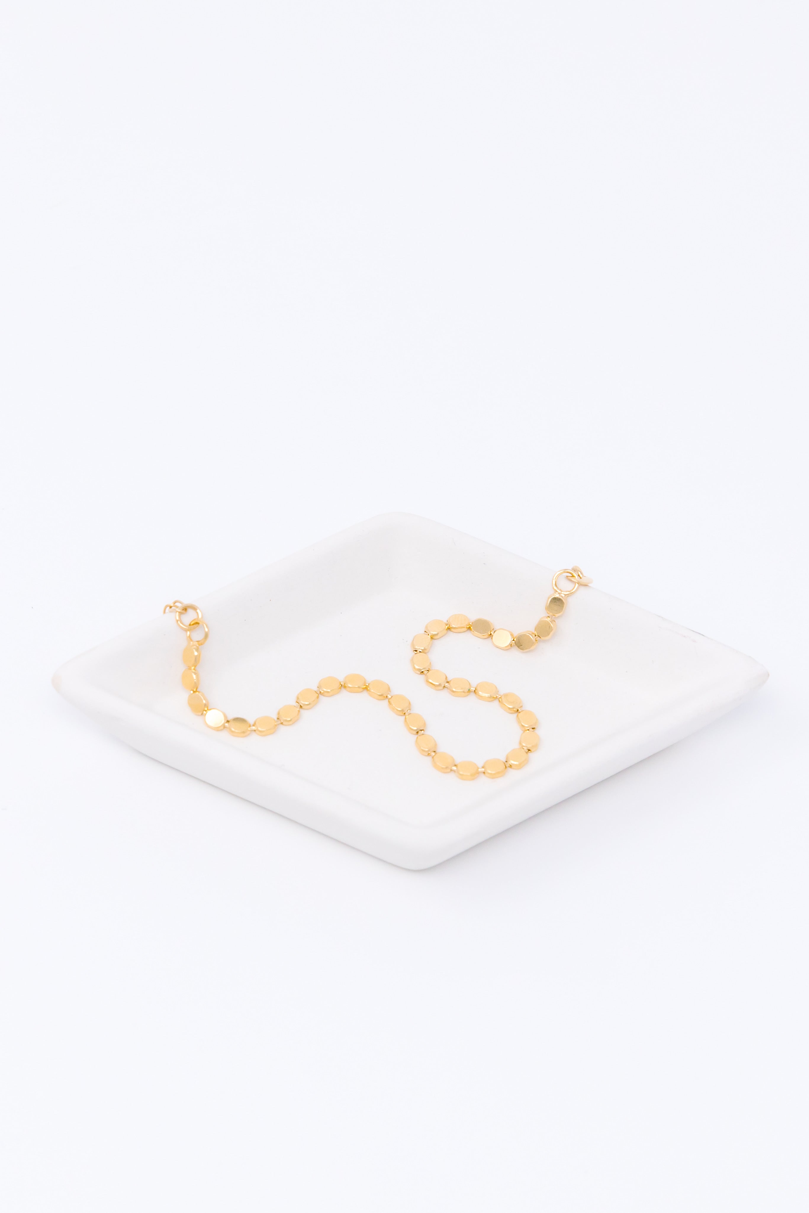 For durability, longevity, and affordability, we sell jewelry that is 14k gold-filled, vermeil, or sterling silver. Different than gold-plated, gold-filled jewelry is a layer of gold bonded through heat to a brass core. Vermeil is the same, but bonded to a a sterling silver core. These metals are durable, hypoallergenic, and tarnish resistant. Your pieces have the power to last a long time! When it comes to quality and durability, only solid gold can beat what we sell. Learn more.