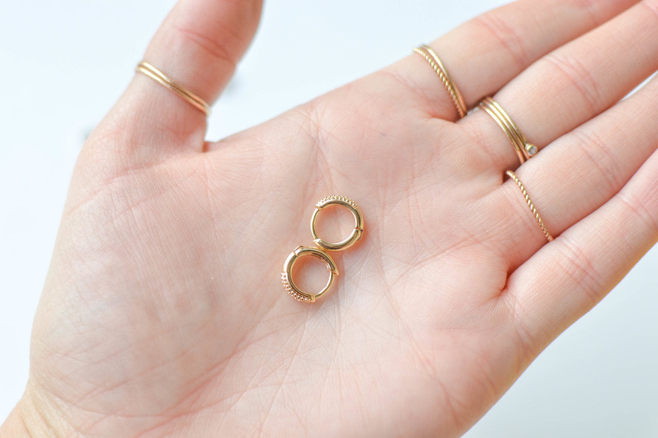 • While gold filled is a strong, sturdy metal for max wear we don't recommend subjecting the earrings to lots of chemicals, waters, perfumes, etc.  Taking the earrings off while swimming or showering will ensure they last longer.