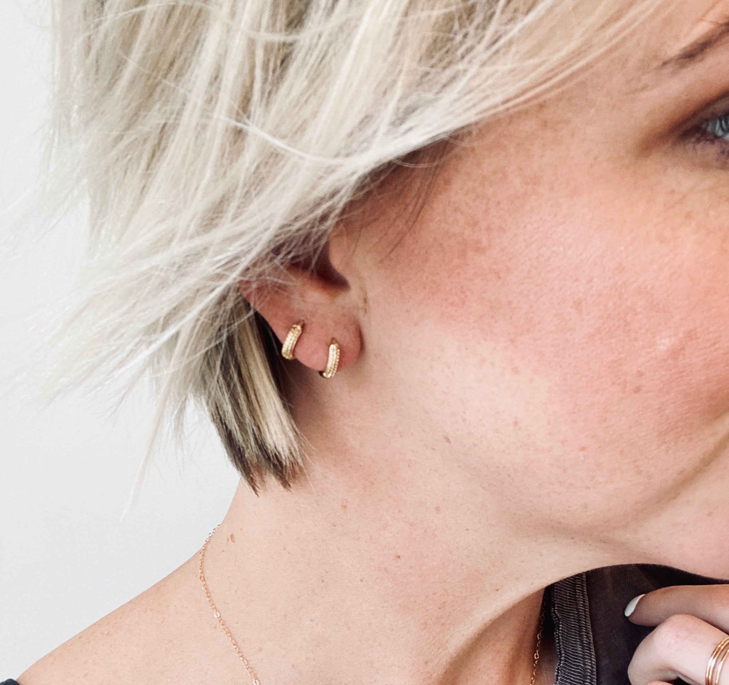 • Post is slightly thicker than our stud earrings.  The majority of customers have no problem with them but if your piercing is very small it may take some wiggling to get the post in.