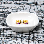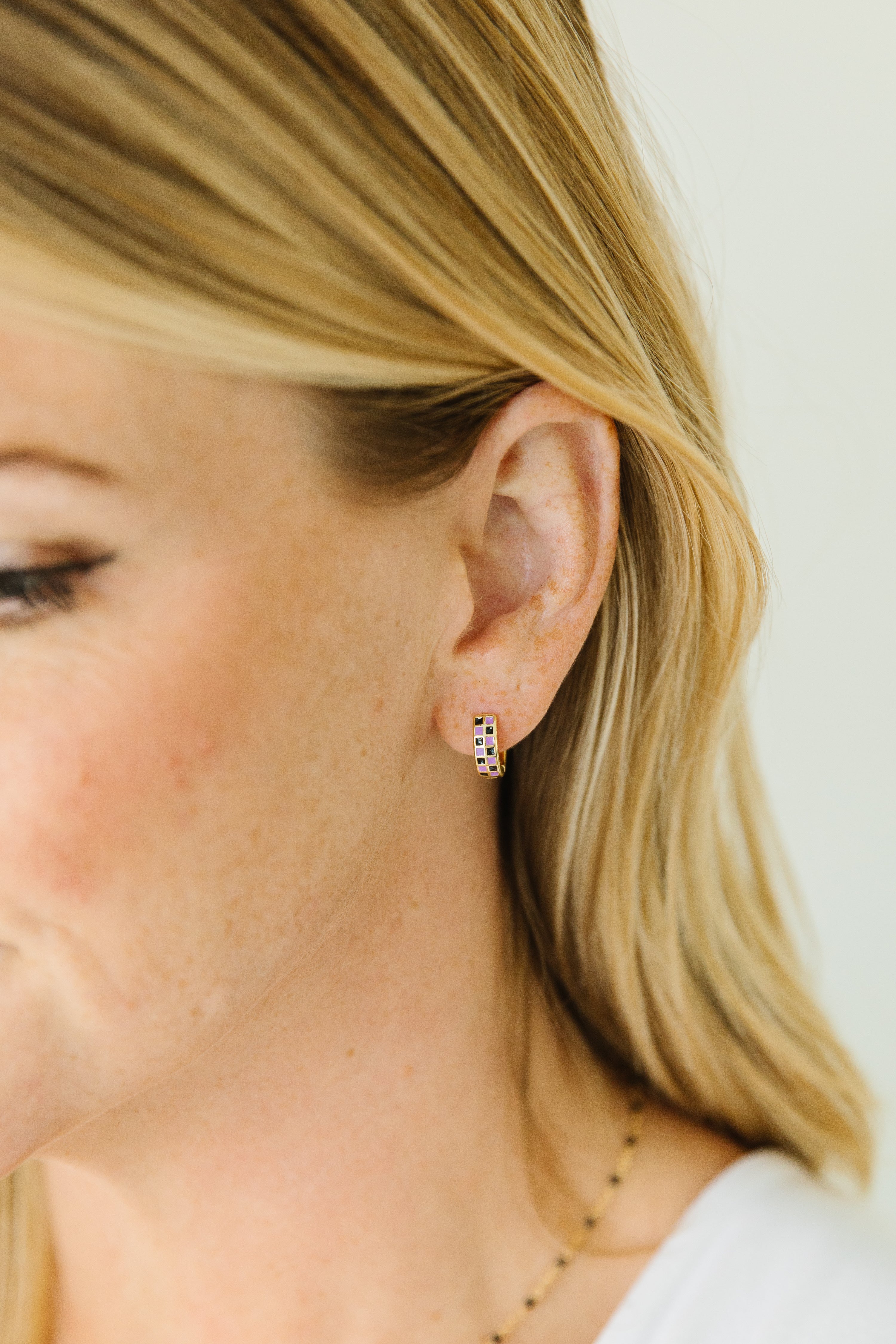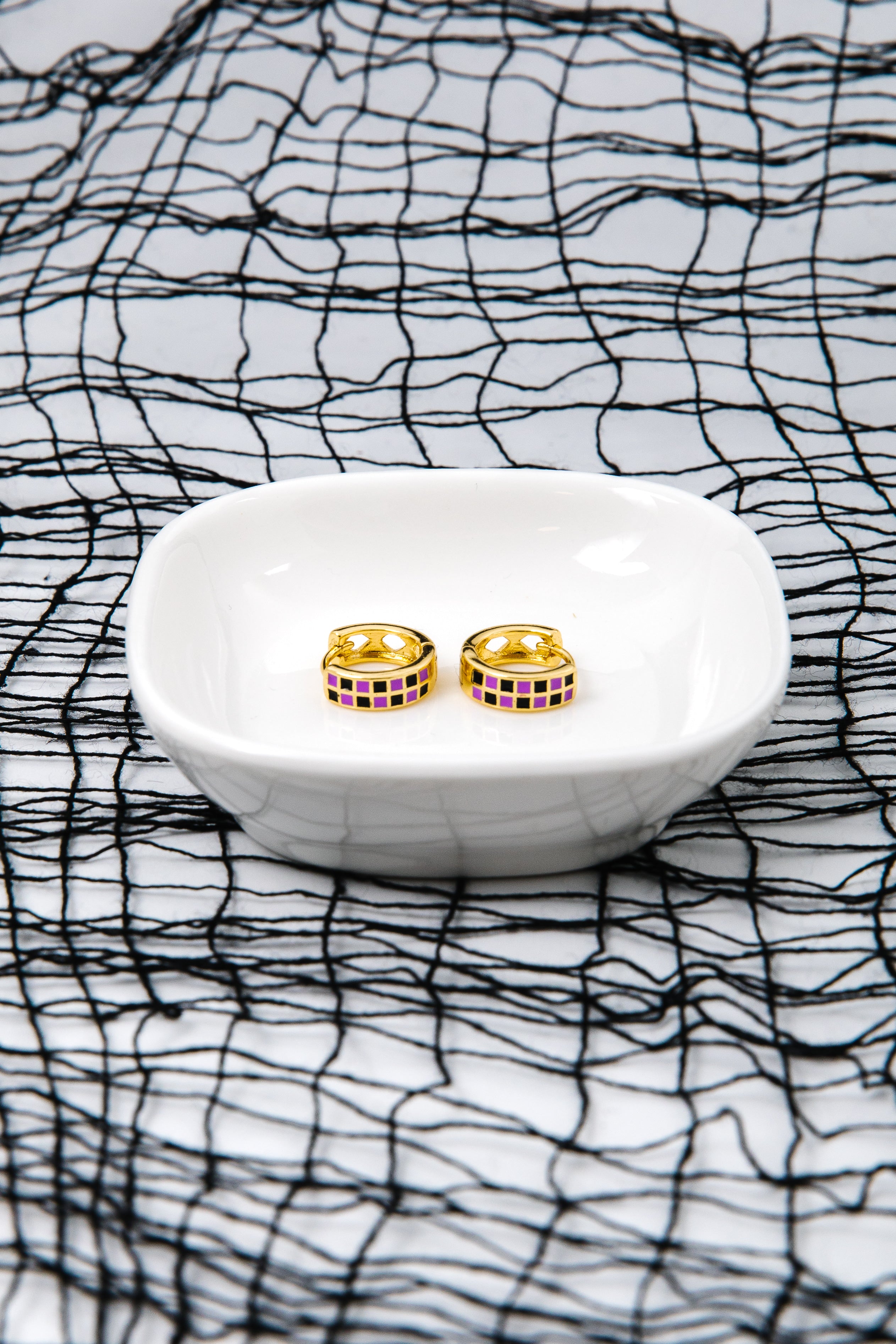 Witches!  We custom designed these earrings on these perfectly witchy huggies just for you!  We needed colors that leaned heavily into fall but the classic orange and black just wasn't doing it for us.  Introducing... purple and black?  Yes, yes, that did the TRICK! (Or treat?!)
