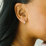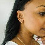 • Post is slightly thicker than our stud earrings.  The majority of customers have no problem with them but if your piercing is very small it may take some wiggling to get the post in.