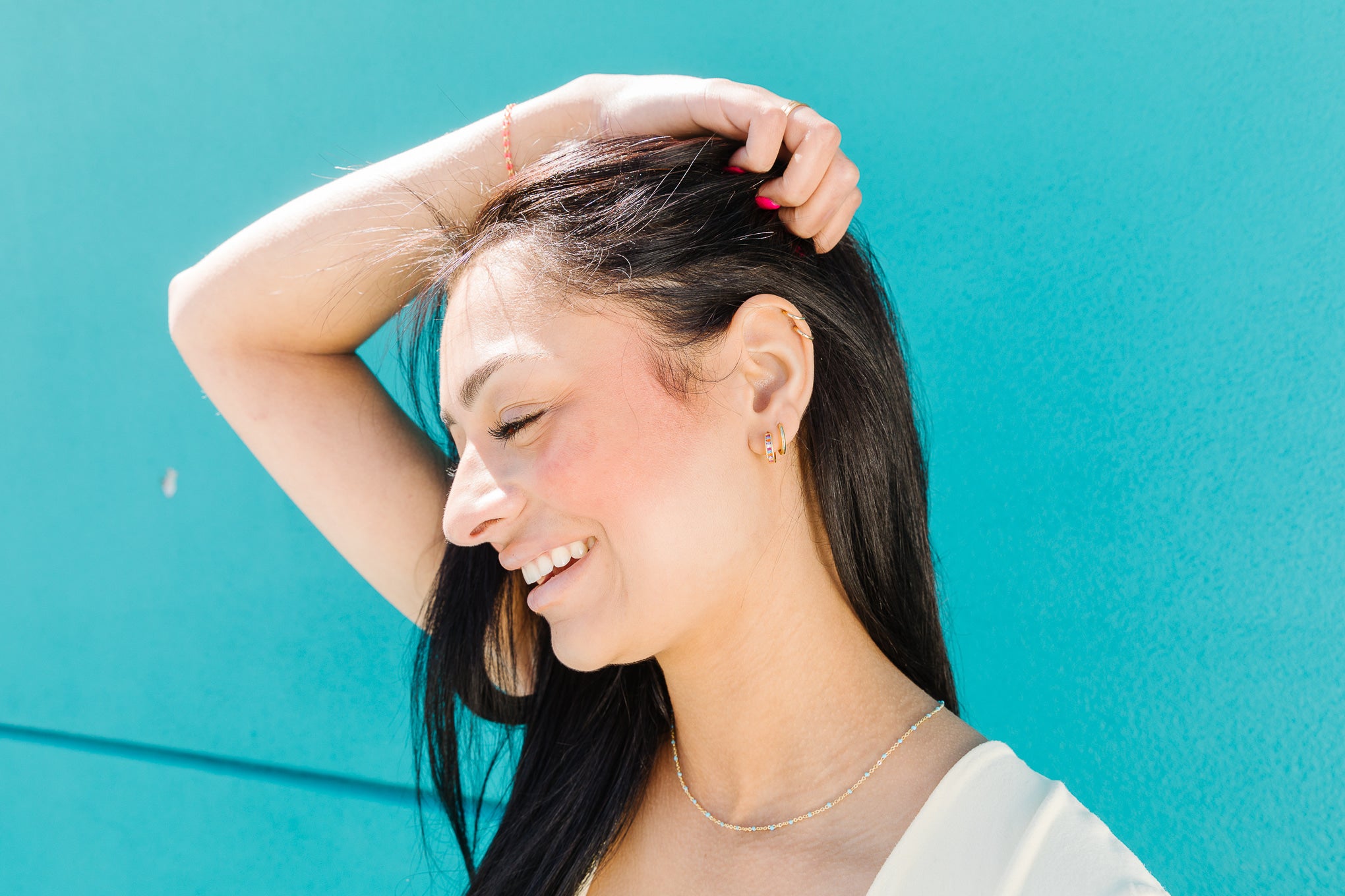 For durability, longevity, and affordability, we sell jewelry that is 14k gold-filled, vermeil, or sterling silver. Different than gold-plated, gold-filled jewelry is a layer of gold bonded through heat to a brass core. Vermeil is the same, but bonded to a a sterling silver core. These metals are durable, hypoallergenic, and tarnish resistant. Your pieces have the power to last a long time! When it comes to quality and durability, only solid gold can beat what we sell. Learn more.