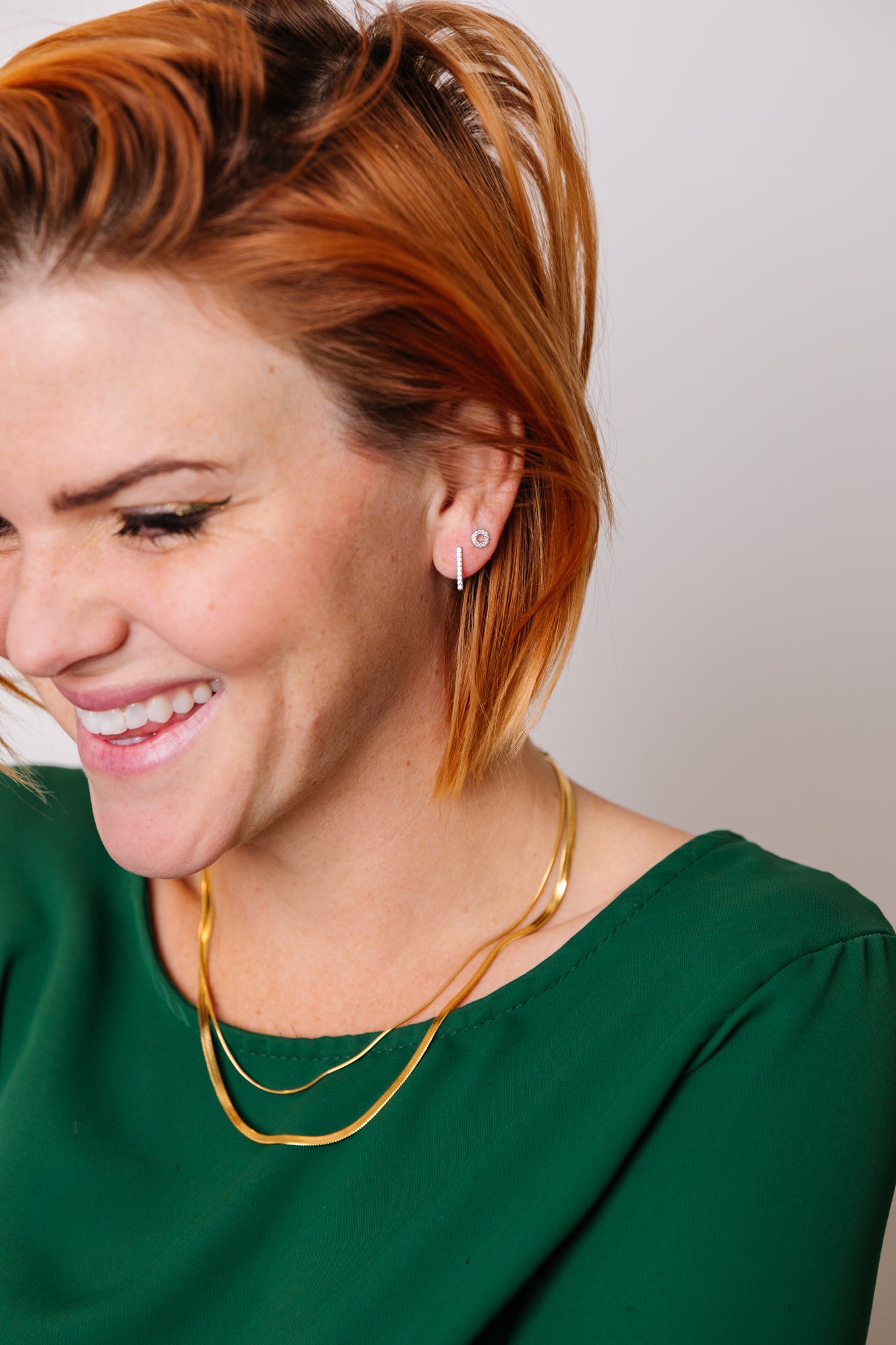 For durability, longevity, and affordability, we sell jewelry that is 14k gold-filled, vermeil, or sterling silver. Different than gold-plated, gold-filled jewelry is a layer of gold bonded through heat to a brass core. Vermeil is the same, but bonded to a a sterling silver core. These metals are durable, hypoallergenic, and tarnish resistant. Your pieces have the power to last a long time! When it comes to quality and durability, only solid gold can beat what we sell. Learn more.