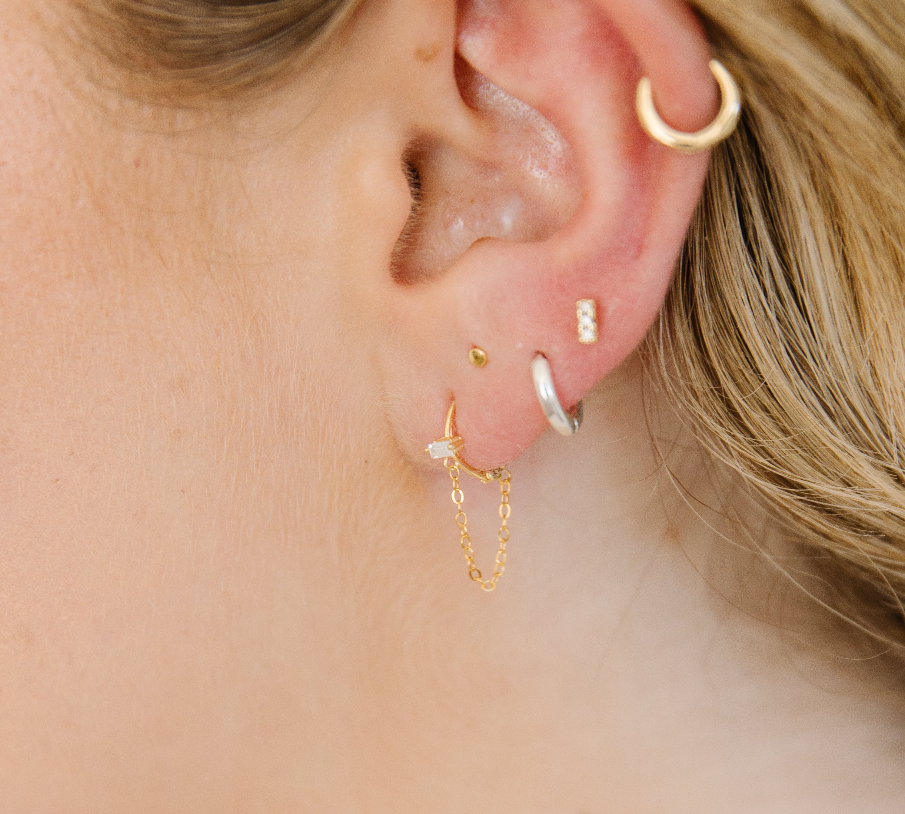 For durability, longevity, and affordability, we sell jewelry that is 14k gold-filled, vermeil, or sterling silver. Different than gold-plated, gold-filled jewelry is a layer of gold bonded through heat to a brass core. Vermeil is the same, but bonded to a a sterling silver core. These metals are durable, hypoallergenic, and tarnish resistant. Your pieces have the power to last a long time! When it comes to quality and durability, only solid gold can beat what we sell. Learn more.