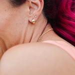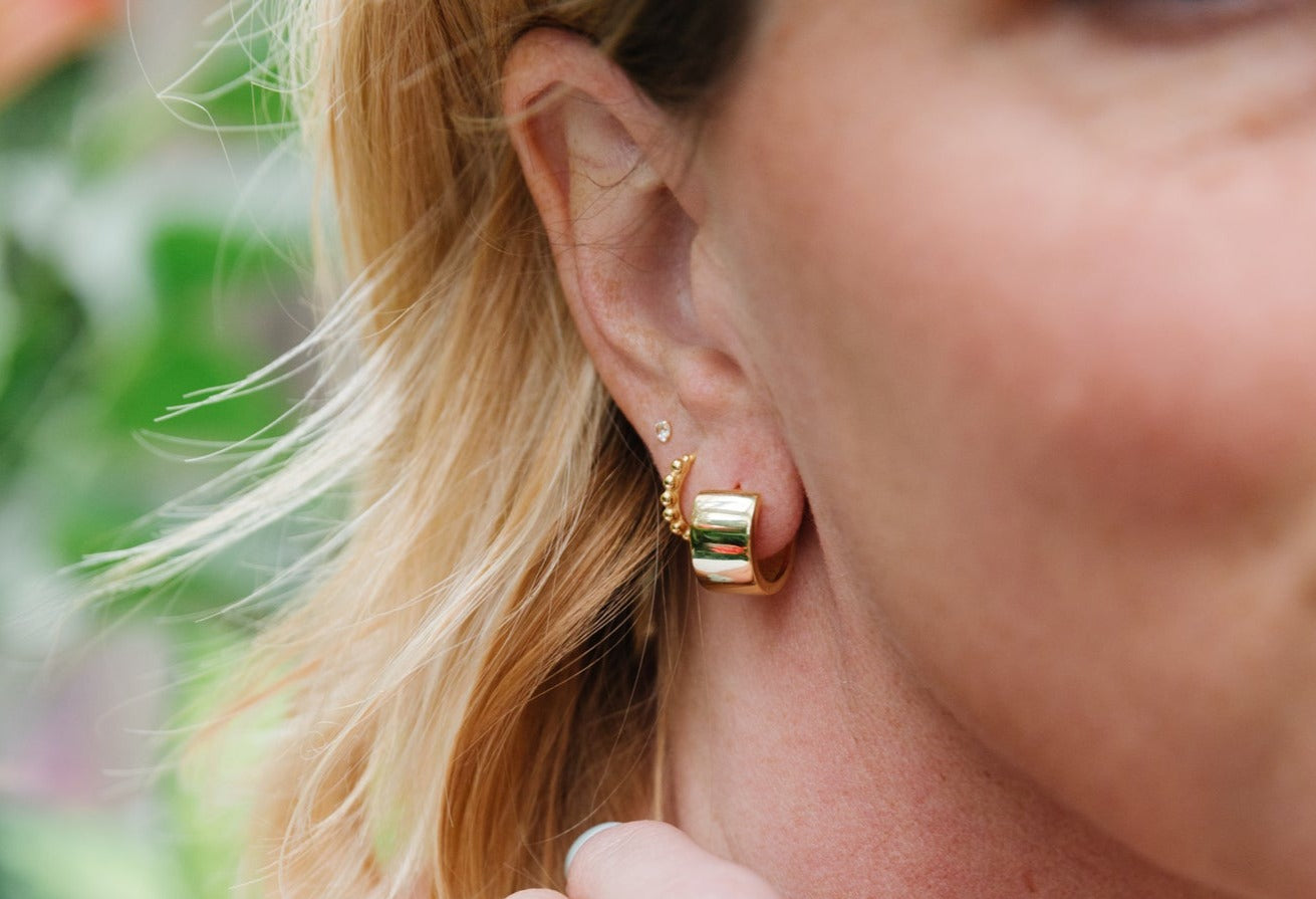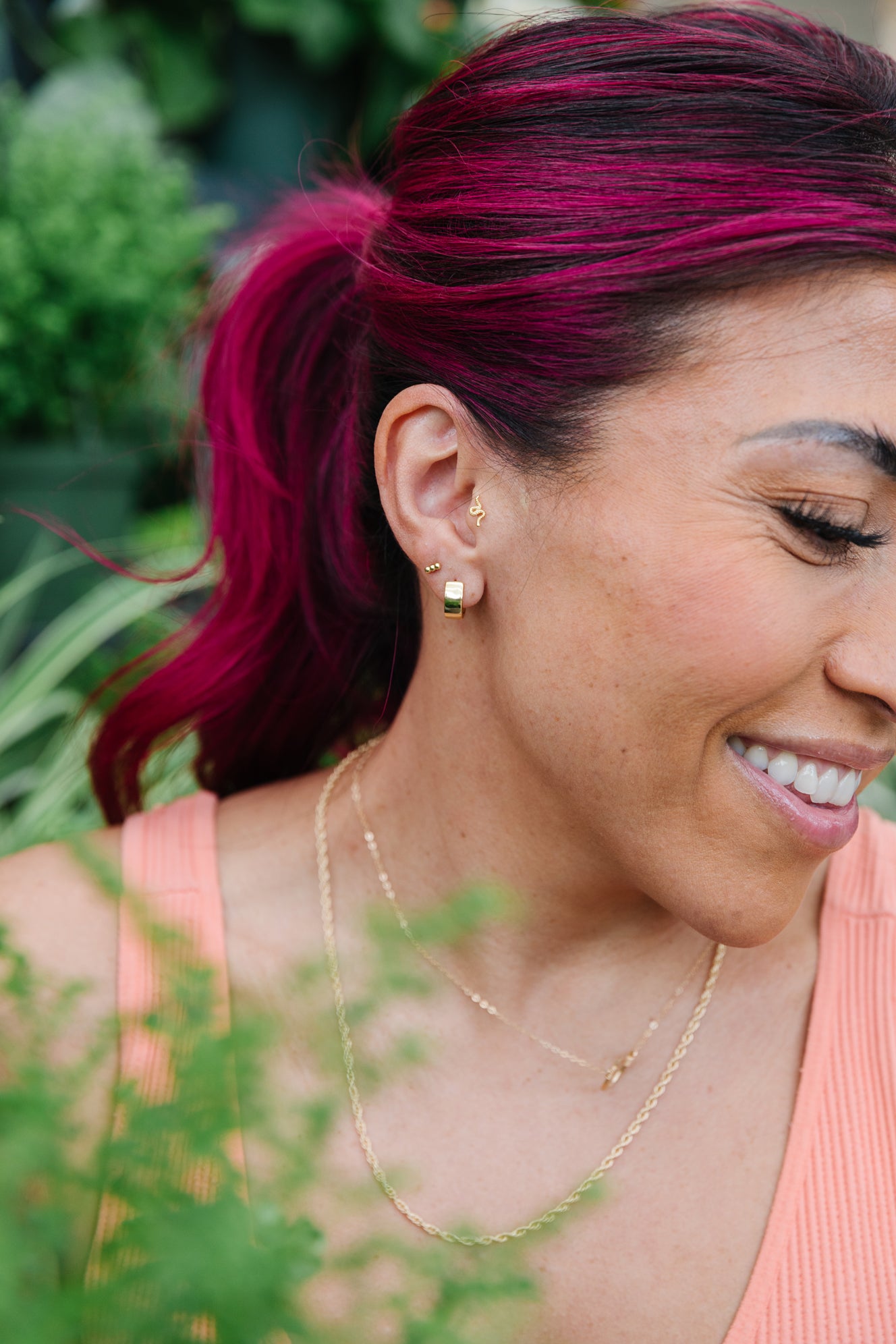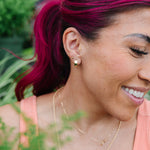 For durability, longevity, and affordability, we sell jewelry that is 14k gold-filled, vermeil, or sterling silver. Different than gold-plated, gold-filled jewelry is a layer of gold bonded through heat to a brass core. Vermeil is the same, but bonded to a a sterling silver core. These metals are durable, hypoallergenic, and tarnish resistant. Your pieces have the power to last a long time! When it comes to quality and durability, only solid gold can beat what we sell. Learn more.