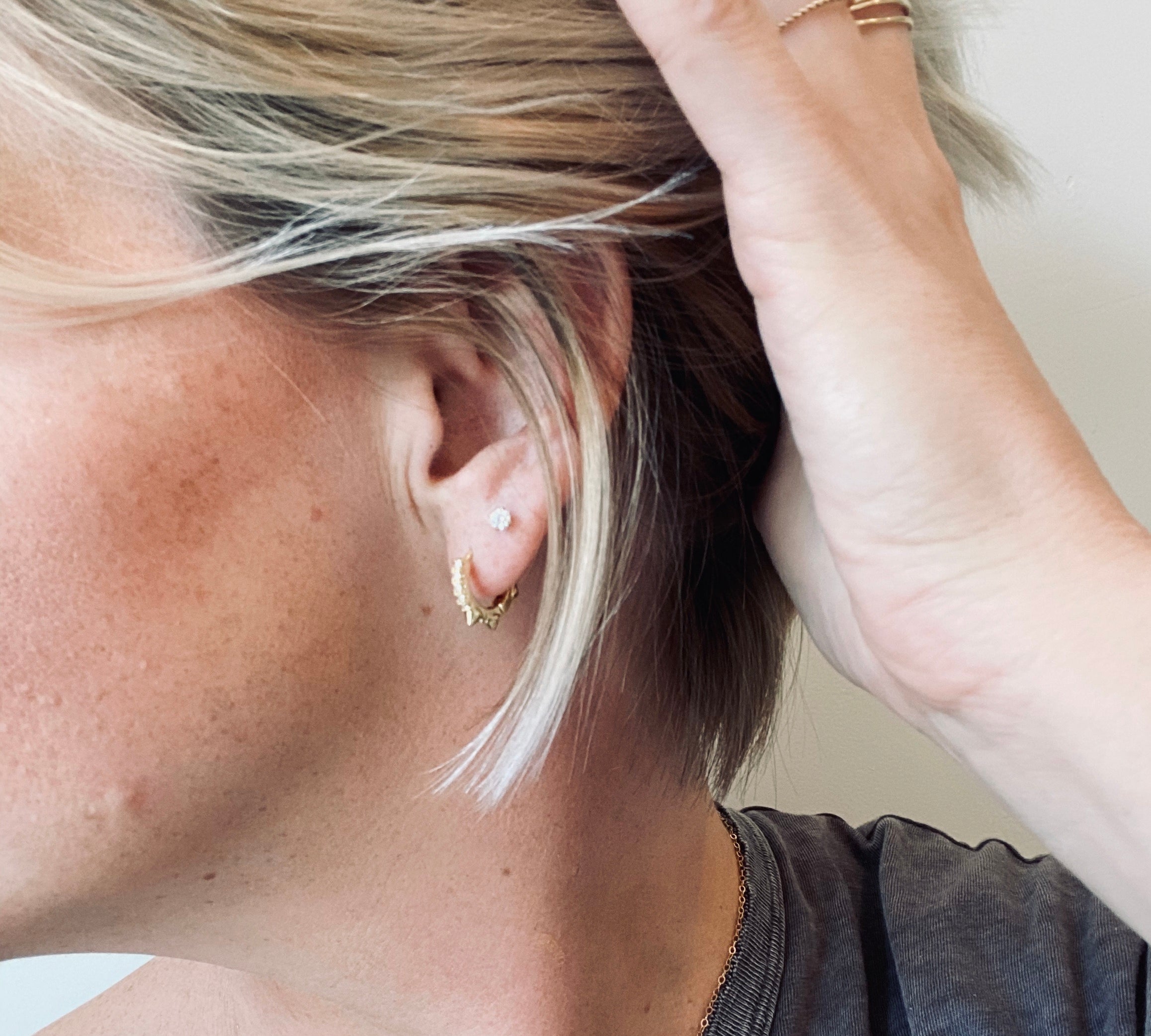 A hit from the beginning, huggies are hoops with a unique clasp that has no post when earrings are closed. Beyond stylish, they're extremely comfortable. So go ahead, sleep, shower, swim, and live life in these. We promise you'll look good and feel good doing it!