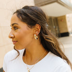 For durability, longevity, and affordability, we sell jewelry that is 14k gold-filled, vermeil, or sterling silver. Different than gold-plated, gold-filled jewelry is a layer of gold bonded through heat to a brass core. Vermeil is the same, but bonded to a a sterling silver core. These metals are durable, hypoallergenic, and tarnish resistant. Your pieces have the power to last a long time! When it comes to quality and durability, only solid gold can beat what we sell. Learn more.