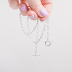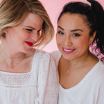 • First model (wearing pink) is wearing 15" Large Front Clasp and 18" Traditional Clasp