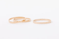 For durability, longevity, and affordability, we sell jewelry that is 14k gold-filled, vermeil, or sterling silver. Different than gold-plated, gold-filled jewelry is a layer of gold bonded through heat to a brass core. Vermeil is the same, but bonded to a a sterling silver core. These metals are durable, hypoallergenic, and tarnish resistant. Your pieces have the power to last a long time! When it comes to quality and durability, only solid gold can beat what we sell. Learn more.