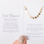 Zelda necklace that is simple yet fierce.  This turns heads wherever it goes. Named after Zelda Fitzgerald, married to F. Scott Fitzgerald.  She was intense and passionate and we believe she would have loved a necklace just like this one!