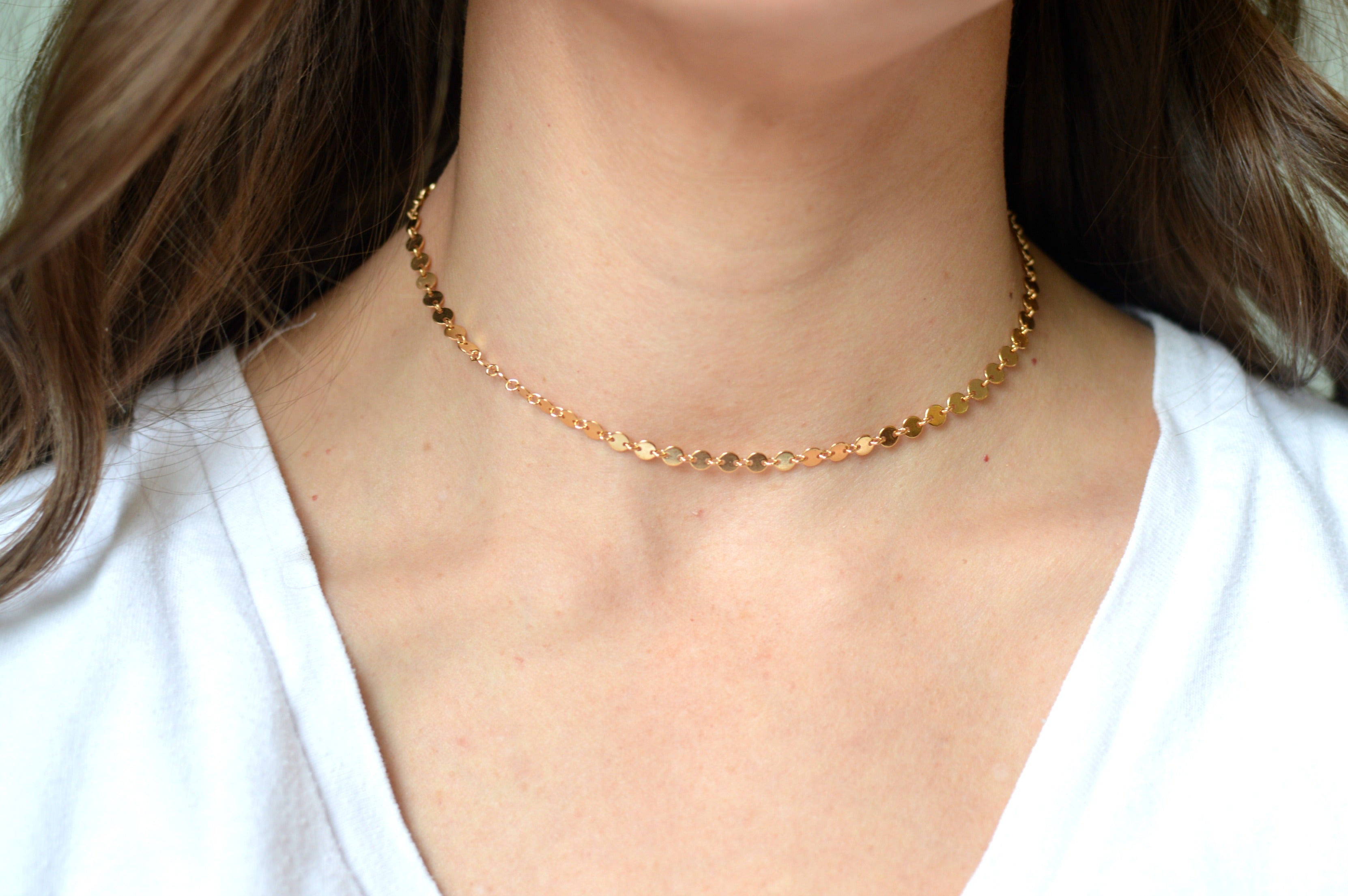 • Available in 14, 15, 16 or 18 inch chain (14 inch is a choker length, 18 inch is standard necklace length). For a comfortable choker look, we recommend 15".