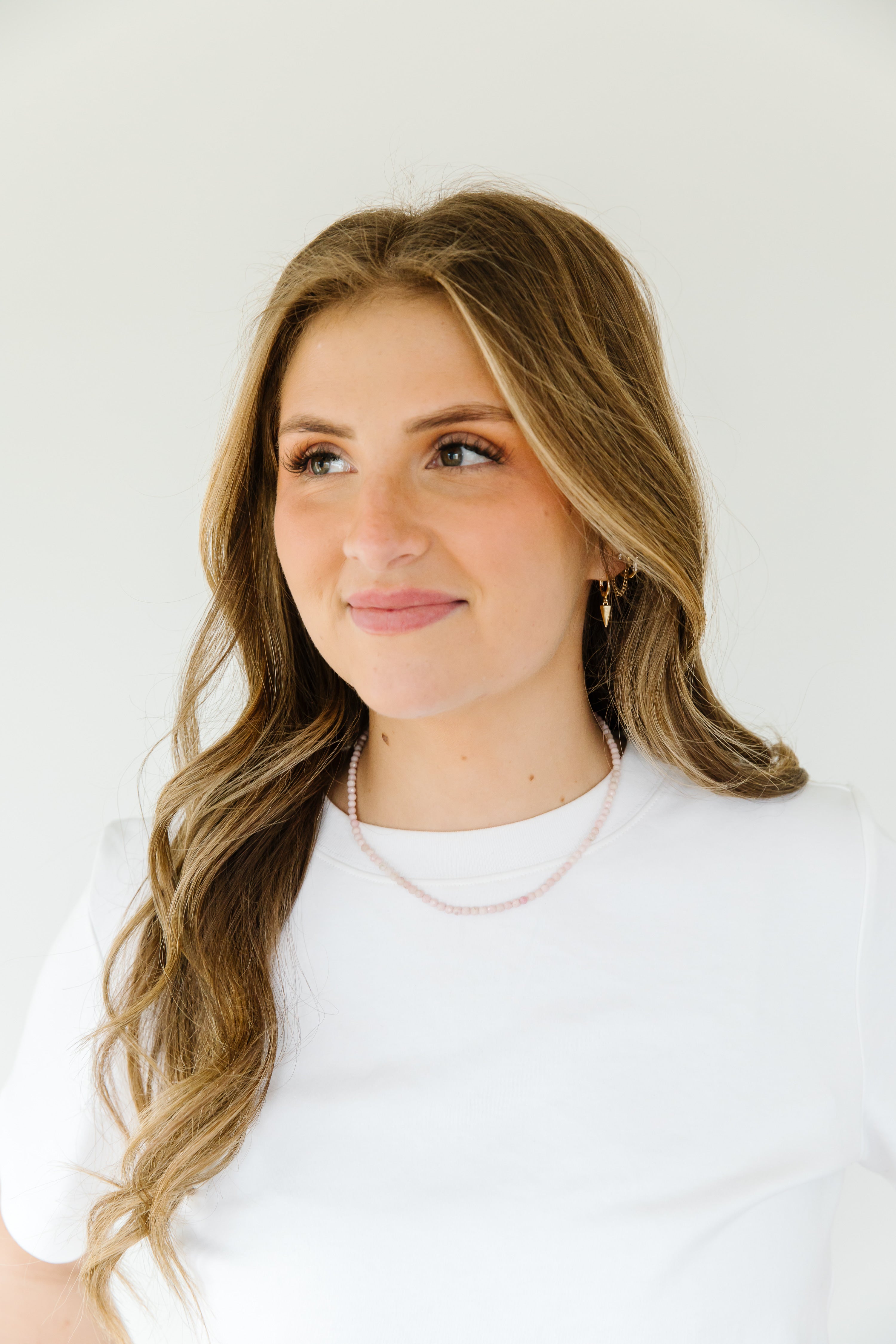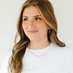 Dang it!  The coloring was a bit off on these necklaces when we got them! The coloring is a more milky pink than our regular Pink Beaded Necklace- our loss, your gain!  It is a subtle hint of color for the spring months that are around the corner.