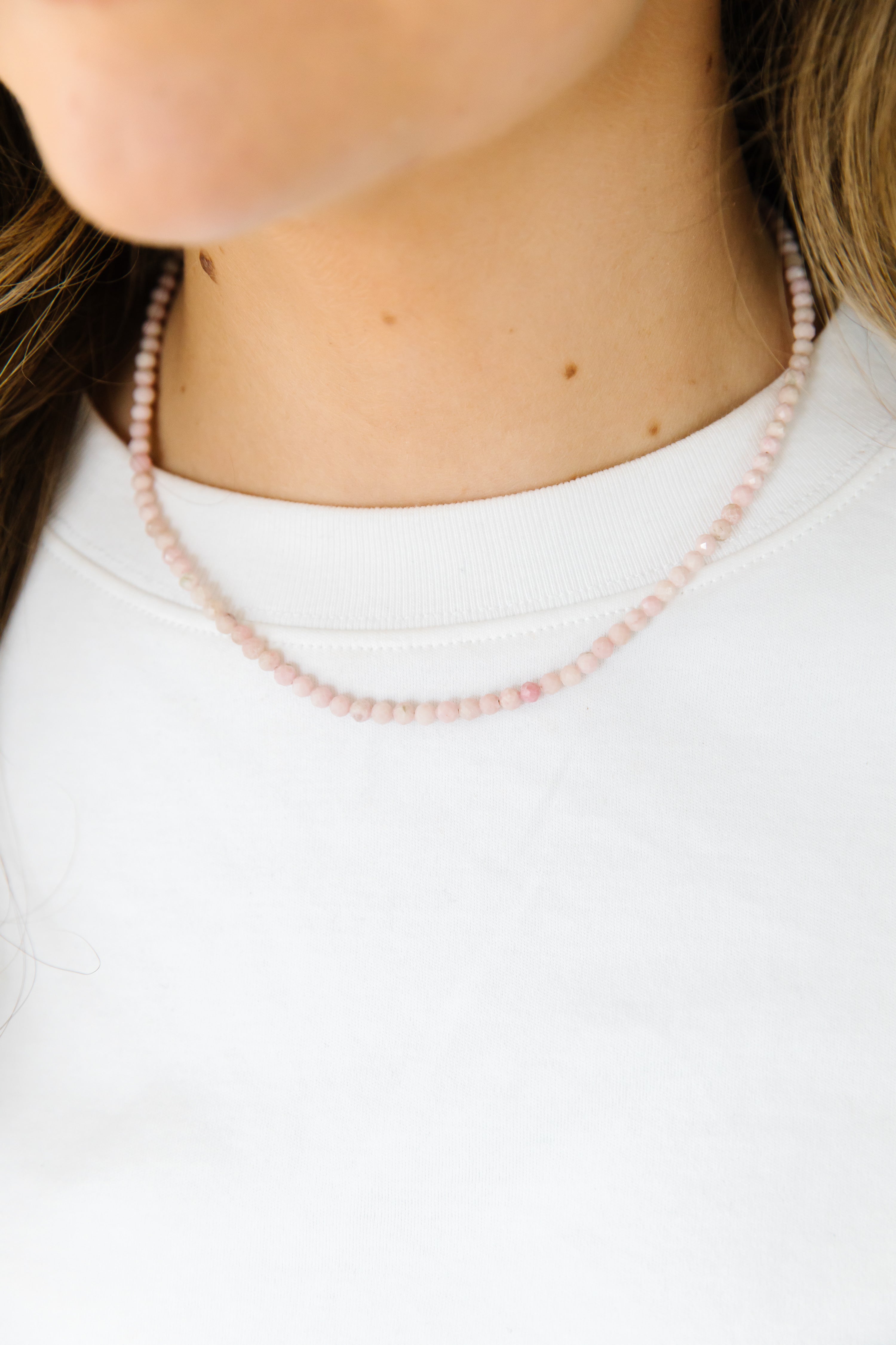 • 4 mm beads in stunning milky pink.